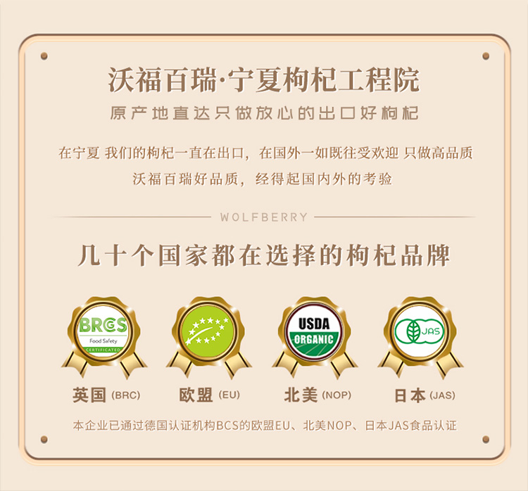 宁夏沃福百瑞是有机枸杞生产专家,枸杞养生专家。国际品牌枸杞产品的缔造者。