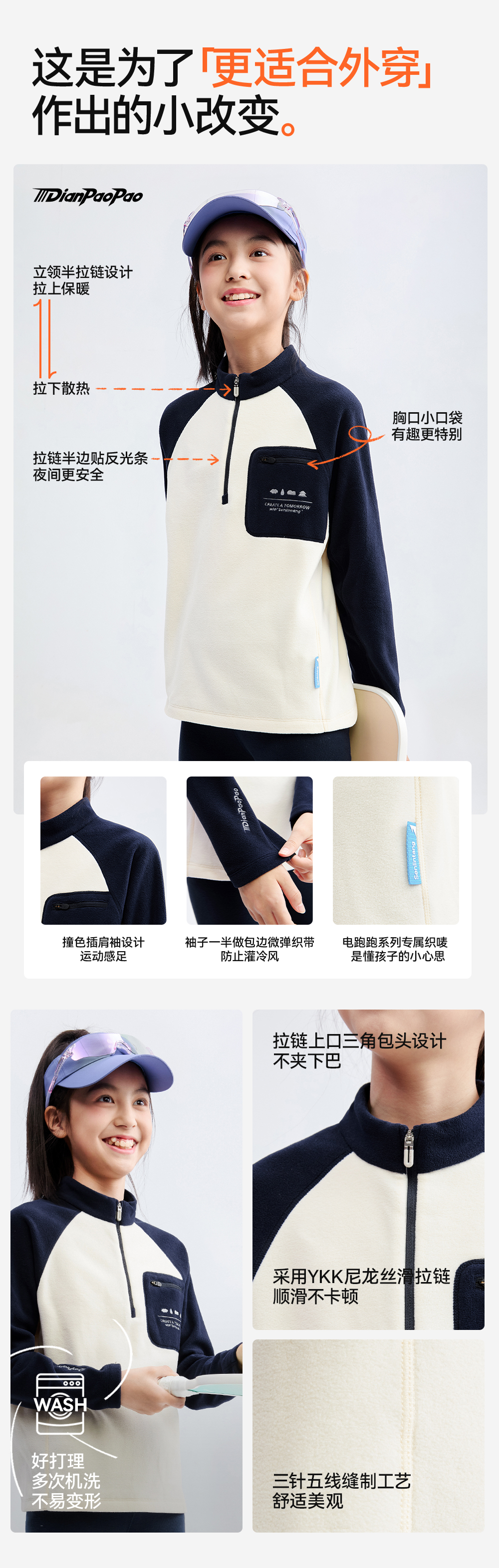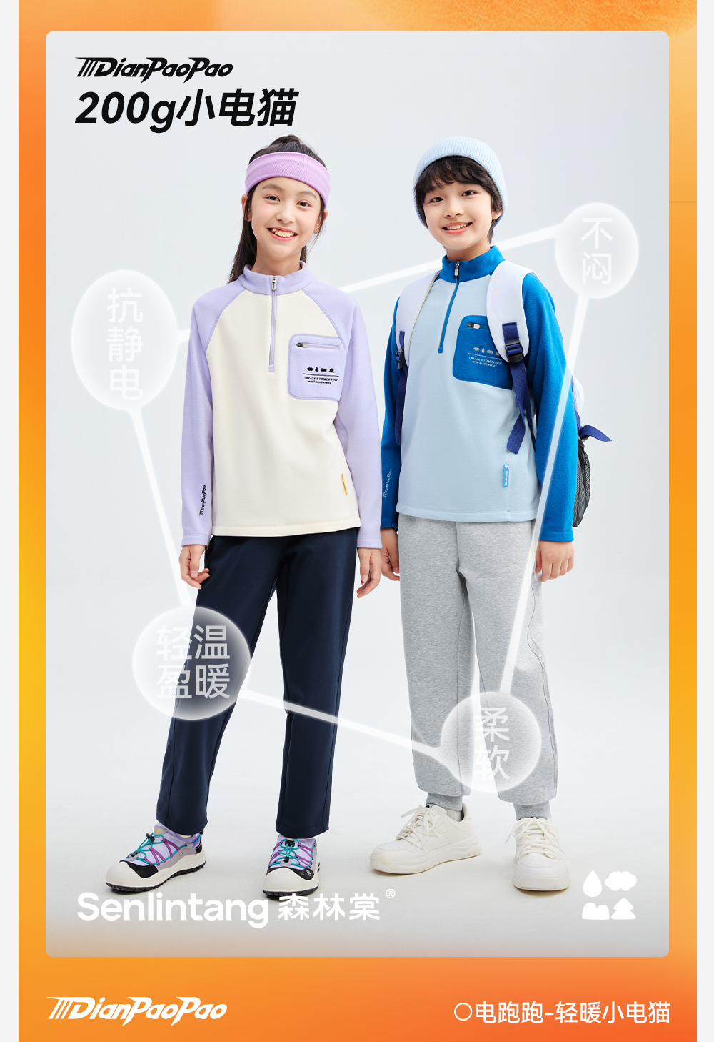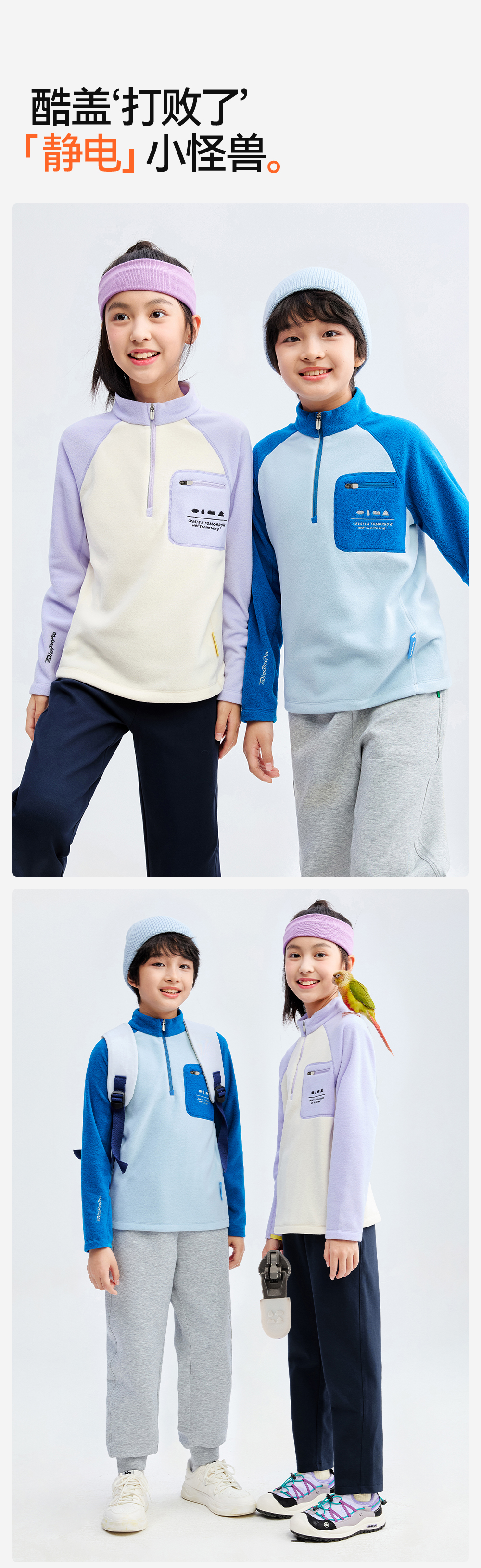 【半拉链立领抓绒卫衣】森林棠25秋冬新款「200g/㎡电跑跑」儿童抗静电撞色插肩袖卫衣60342505