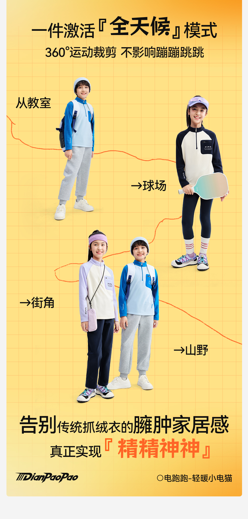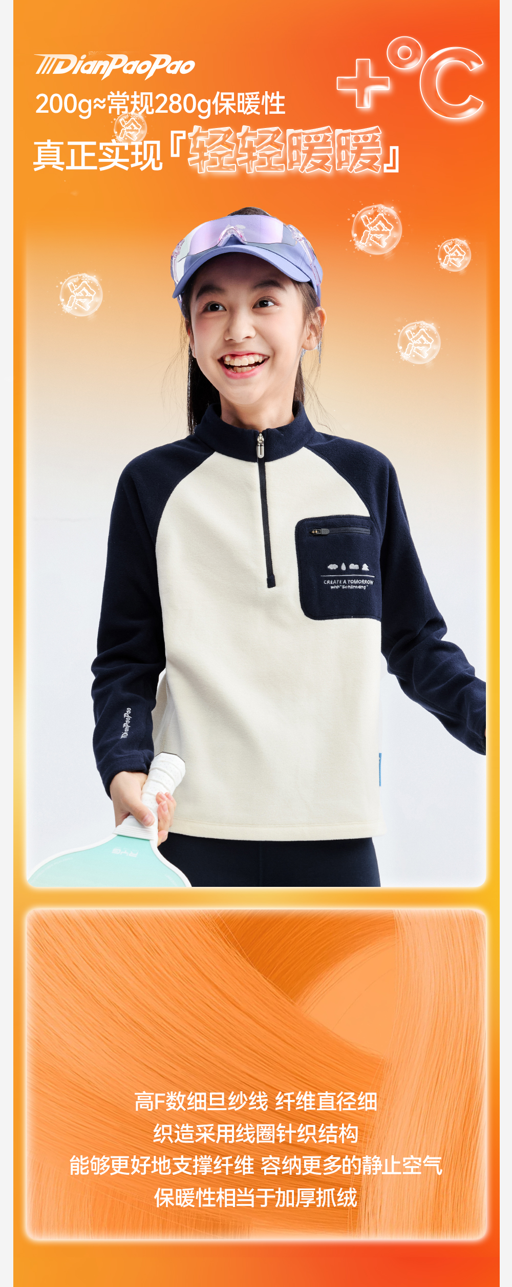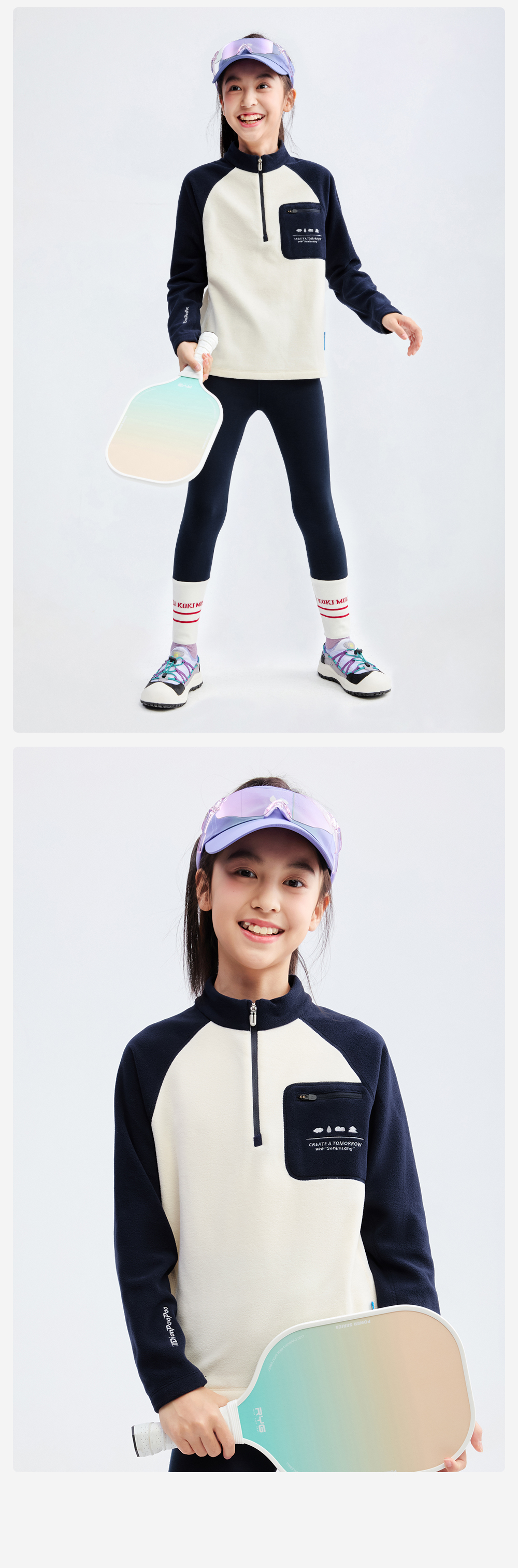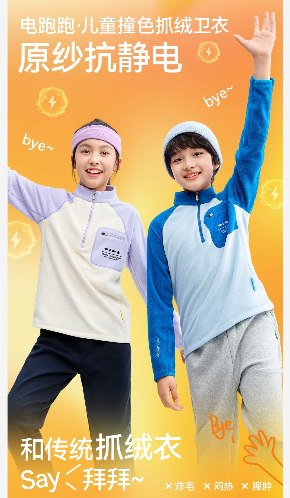 【半拉链立领抓绒卫衣】森林棠25秋冬新款「200g/㎡电跑跑」儿童抗静电撞色插肩袖卫衣60342505