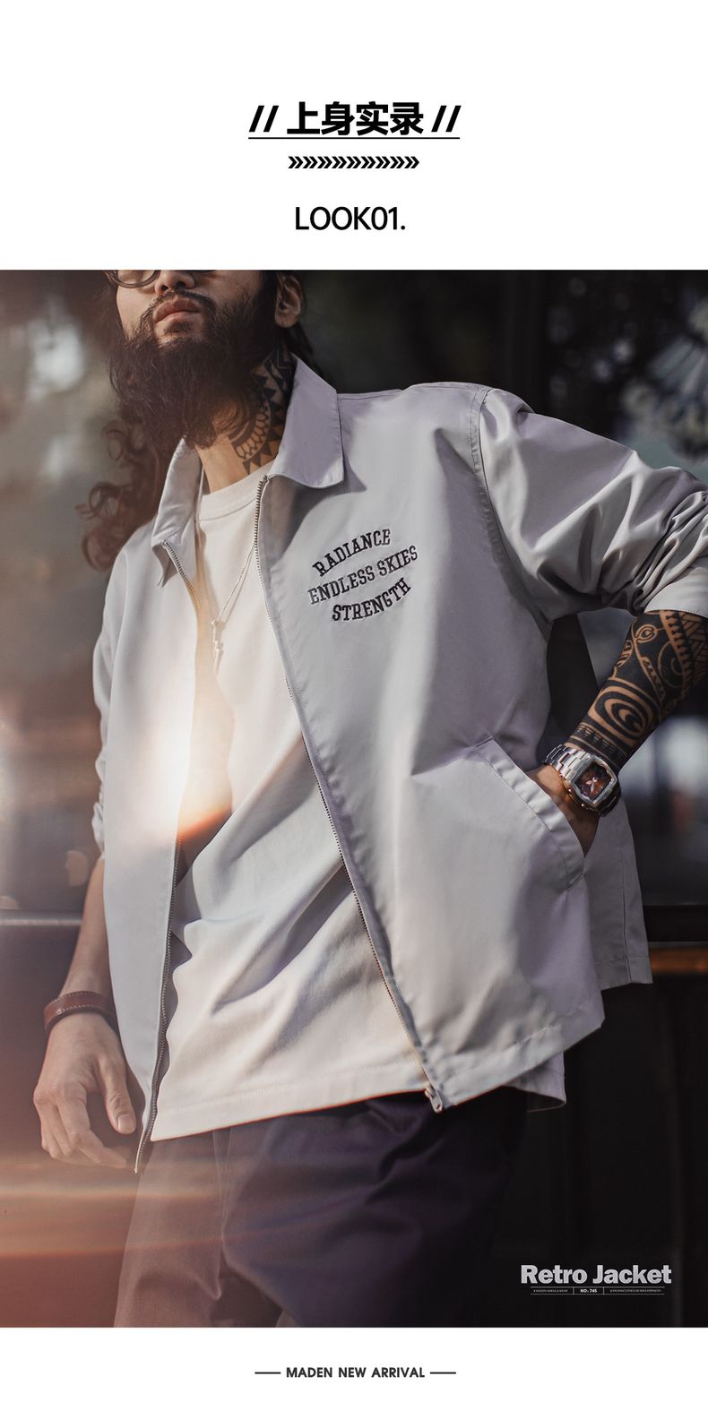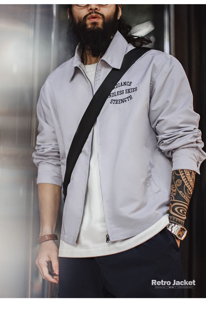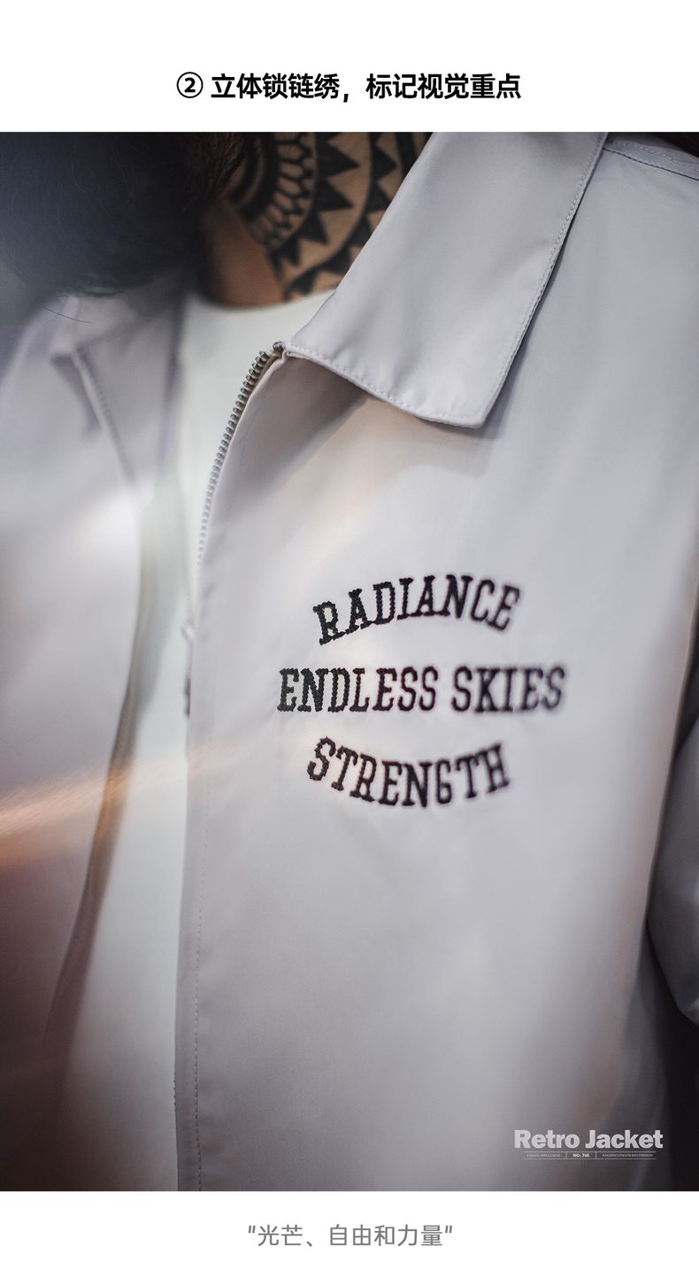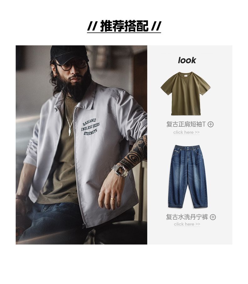 工装优选美式复古字母刺绣教练夹克翻领宽松外套廓形休闲上衣男春