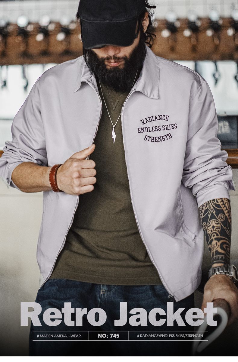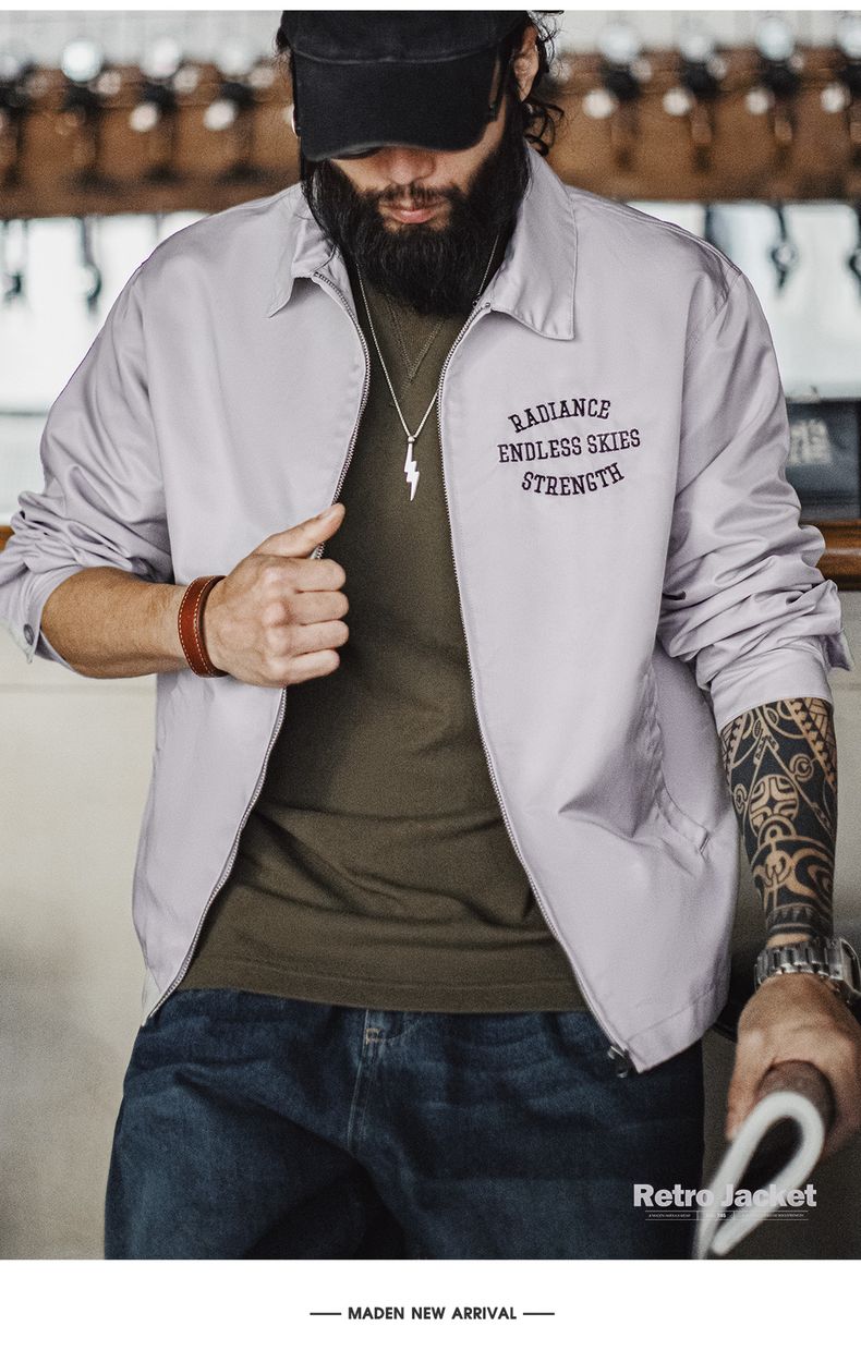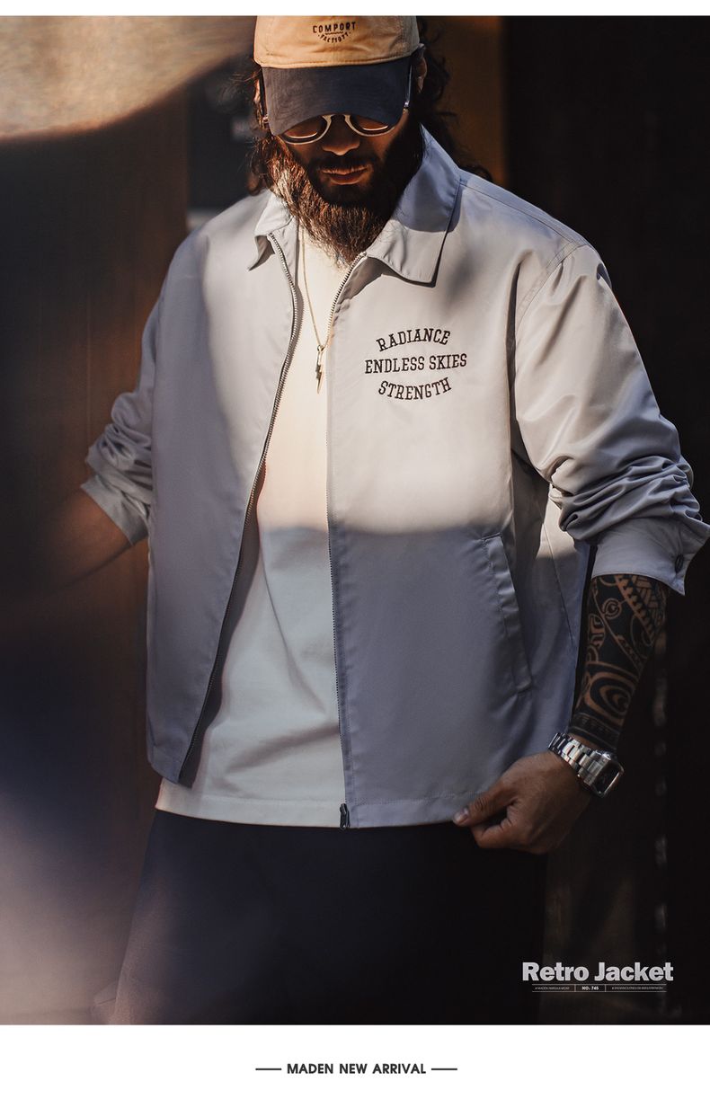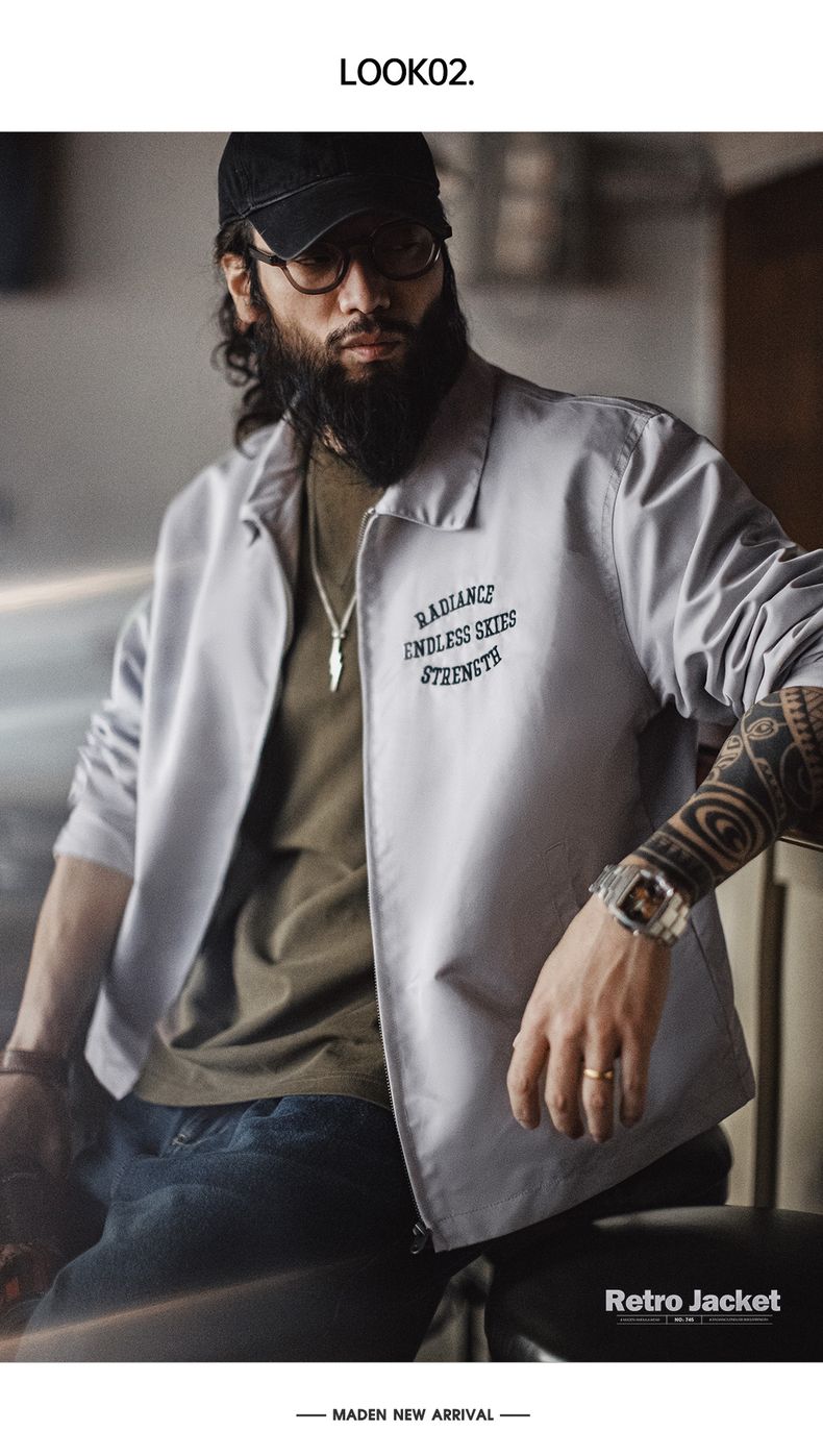 工装优选美式复古字母刺绣教练夹克翻领宽松外套廓形休闲上衣男春