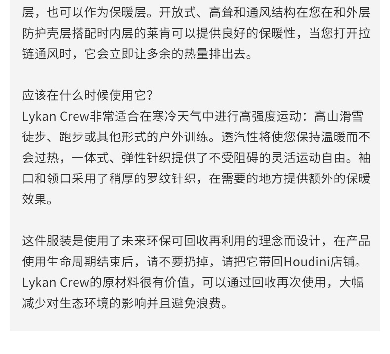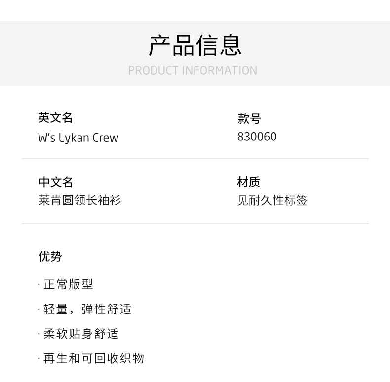 HOUDINI胡丁尼Lykan Crew莱肯户外25秋冬新女套头圆领长袖衫毛衣 830060