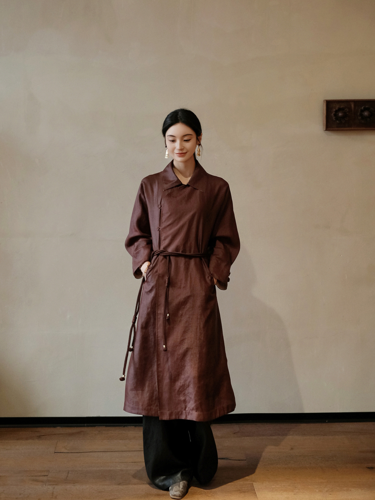 盛唐婧 | 真丝红云纱中式时尚风衣裙