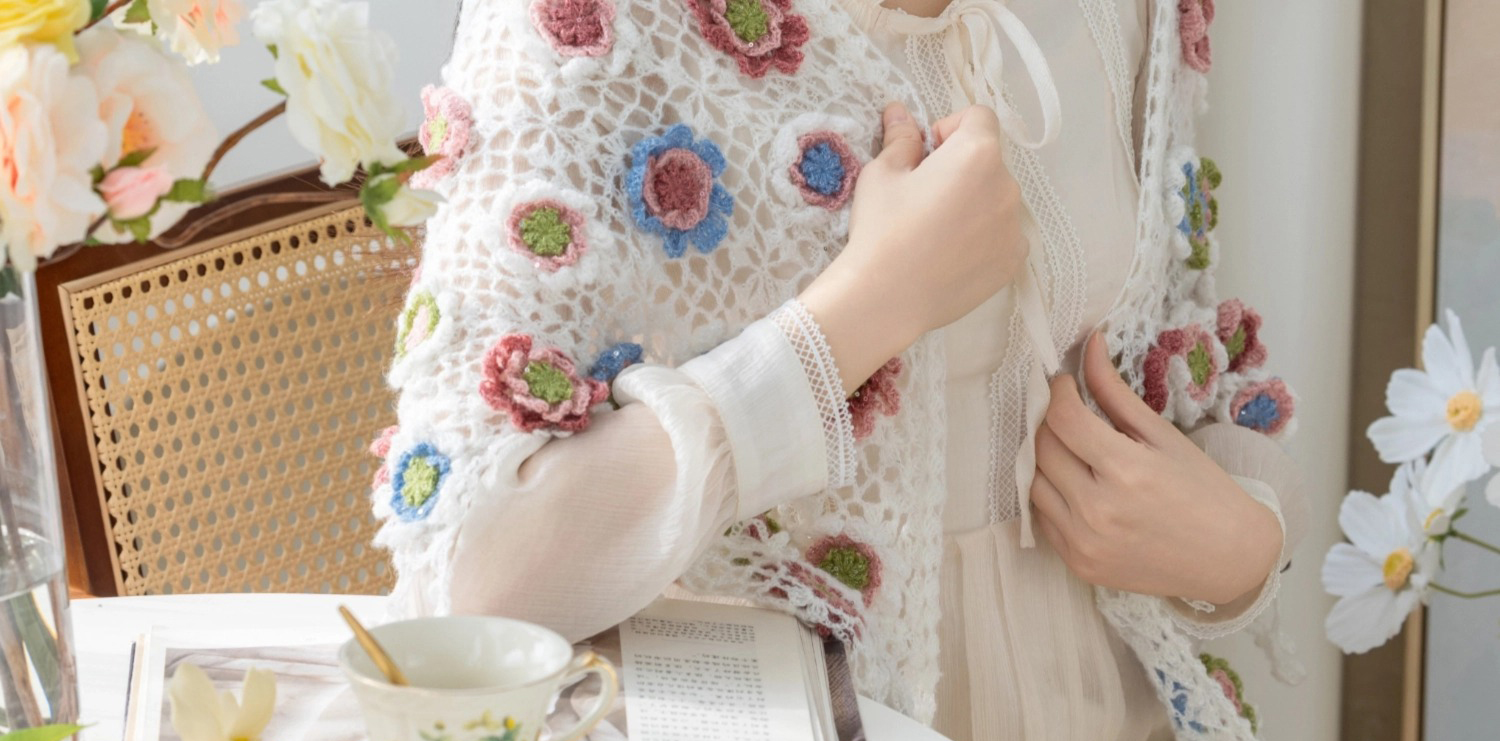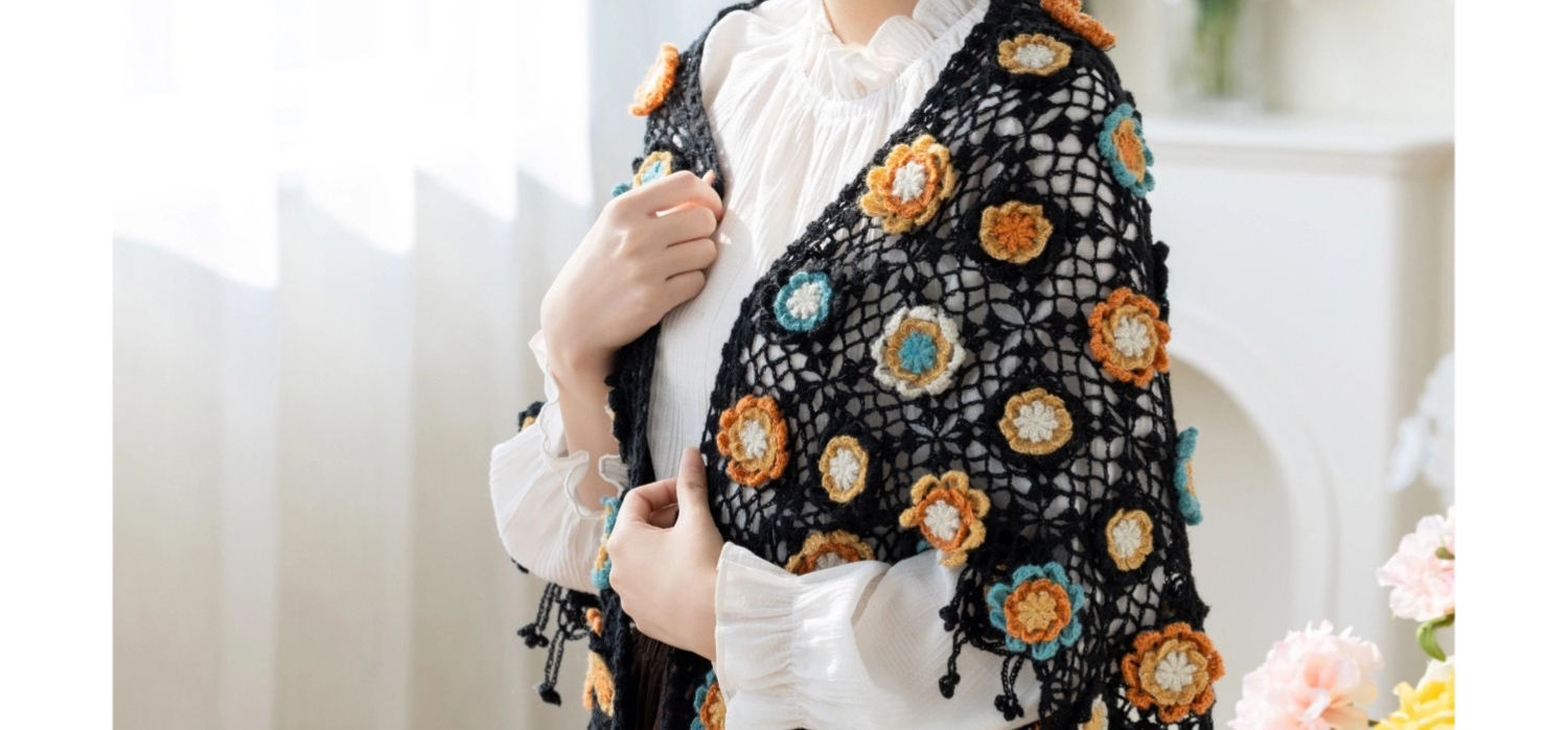 苏苏姐家漫花三角披肩手工DIY编织钩针马海毛线团自制材料包