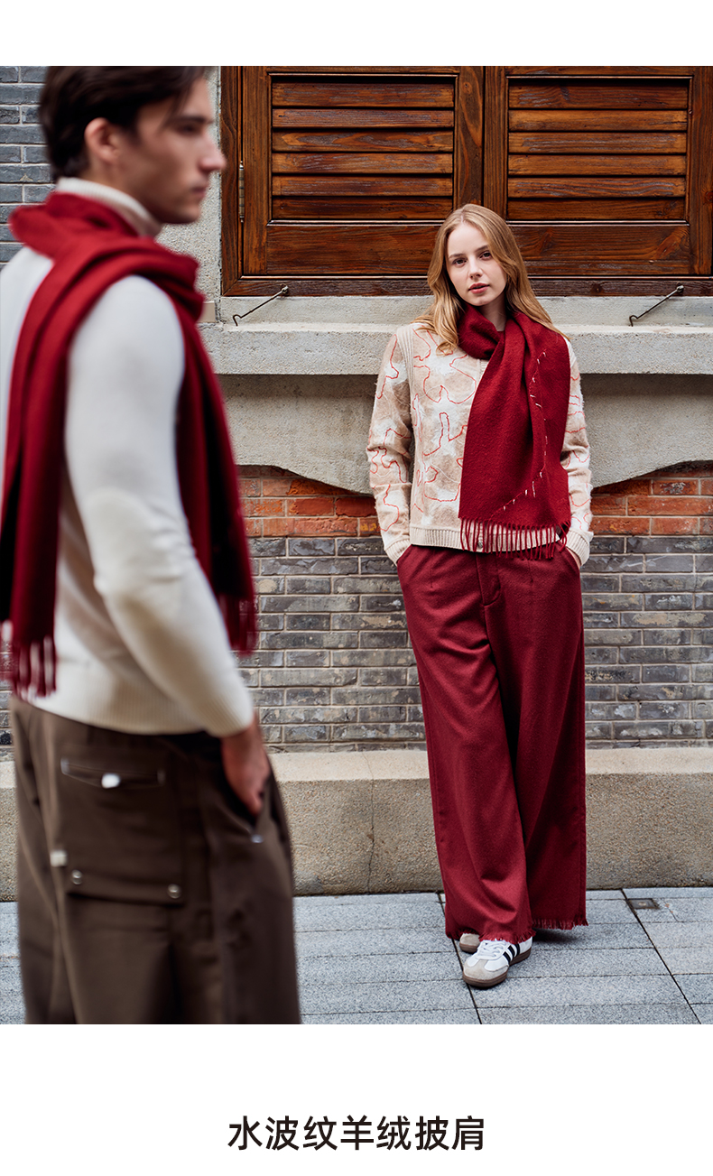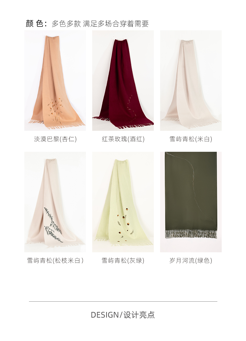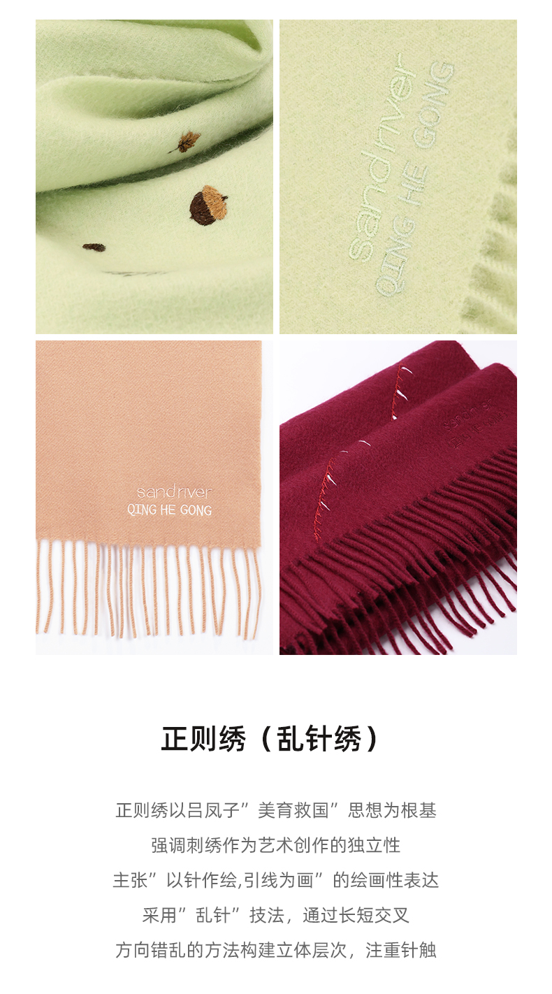 Sandriver X 清禾宫 乱针绣水波纹羊绒围巾 SJF92P800N SJF93P448N