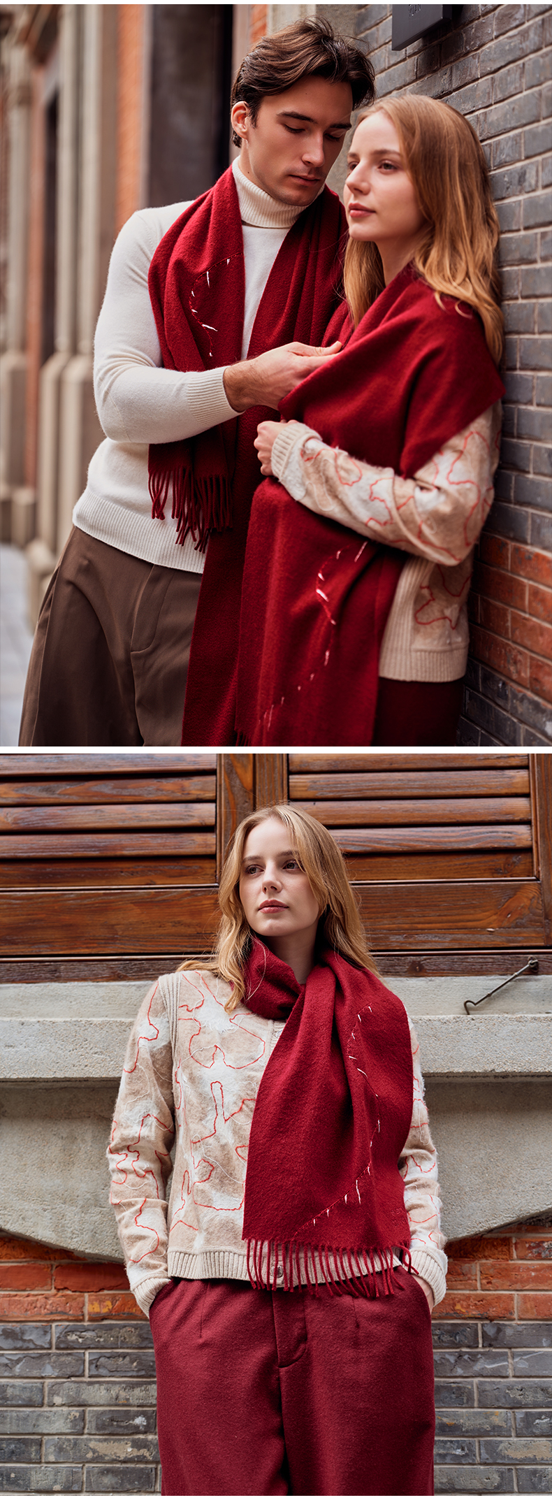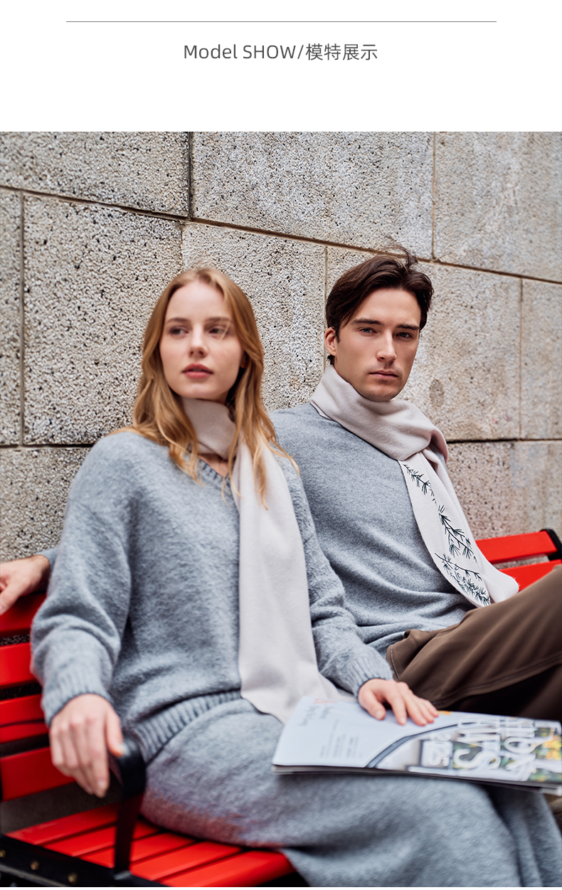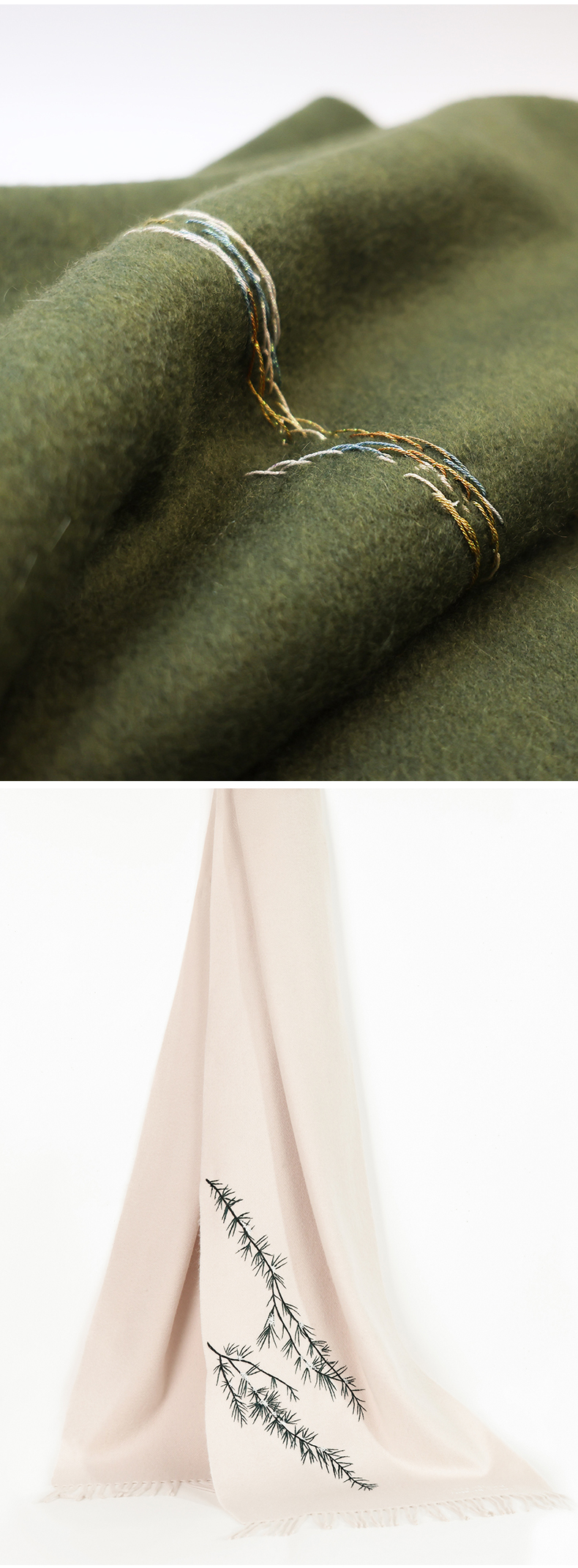 Sandriver X 清禾宫 乱针绣水波纹羊绒围巾 SJF92P800N SJF93P448N