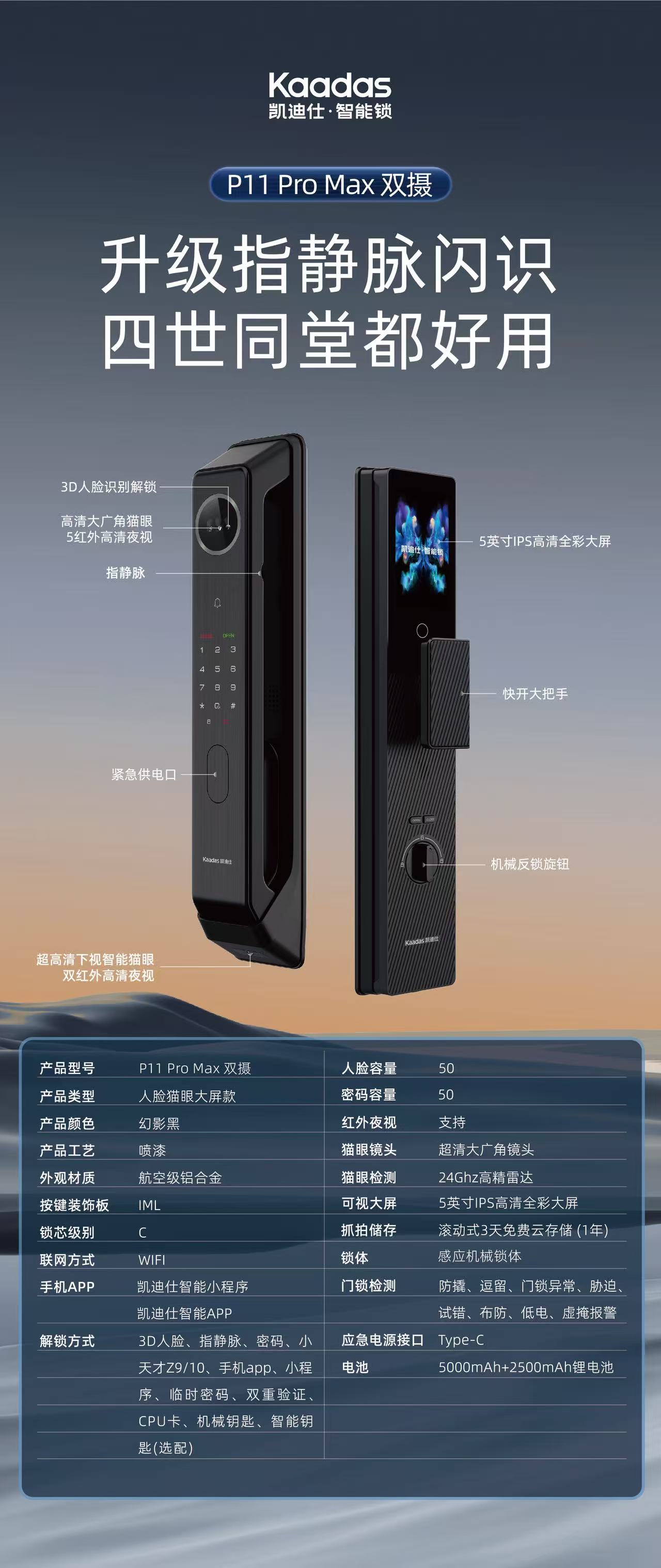 【春上新】10楼 凯迪仕 智能锁 P11Promax千里眼智能锁 吊牌价3999元 活动价2899元