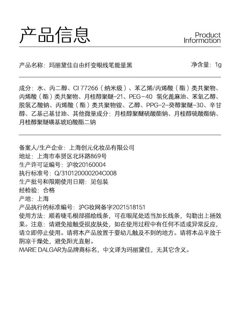 4楼Eubelle欧蓓 玛丽黛佳自由纤变眼线笔 能量黑 速干初学者 吊牌价:99元 活动价:89元