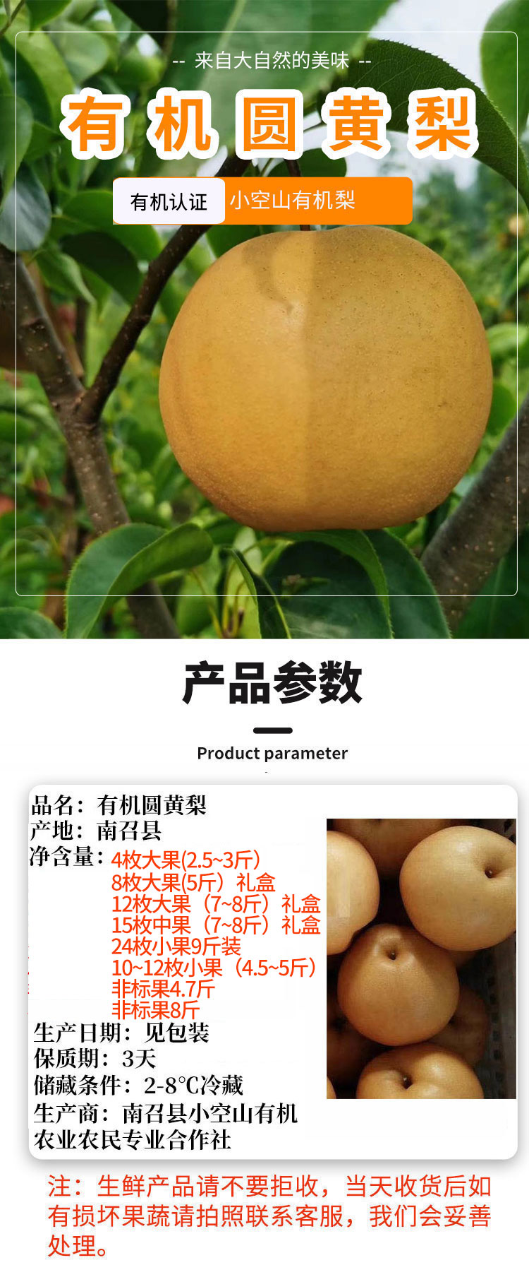 【厂商直发】小空山有机水果圆黄梨清甜多汁多规格可选包邮