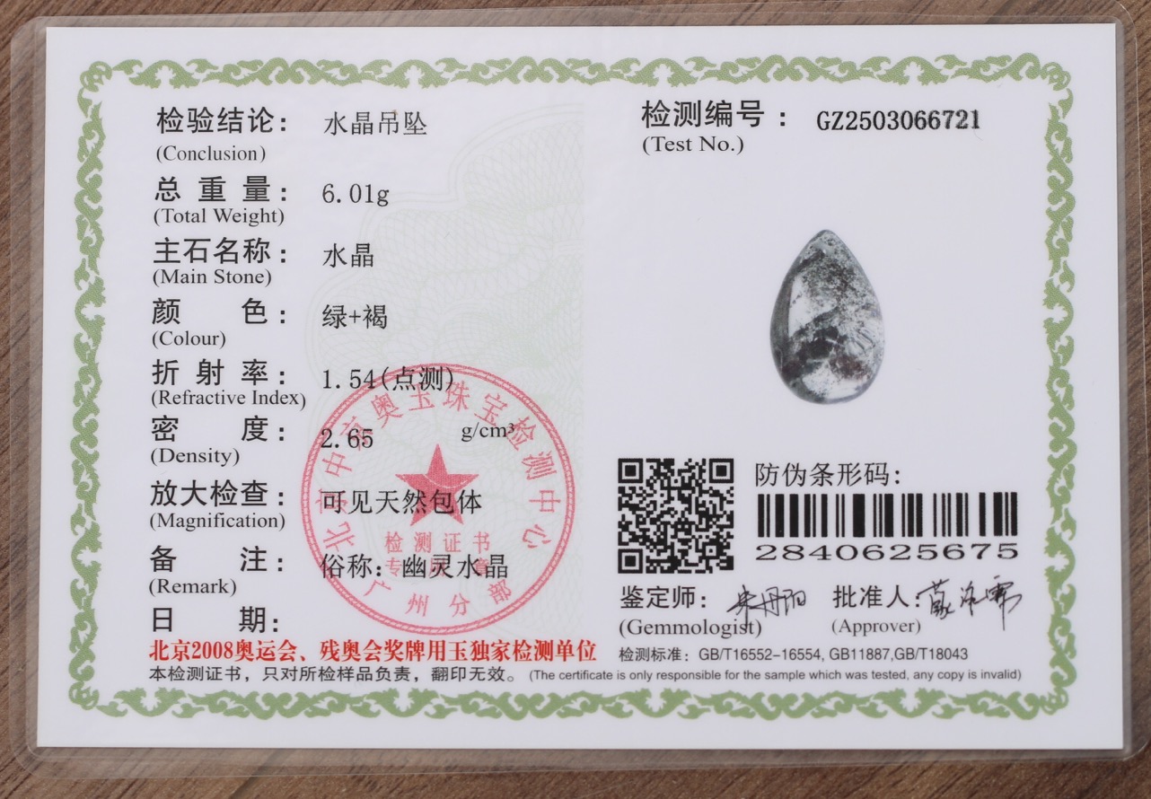 【碧隐】绿幽灵水晶吊坠 配精美挂绳
