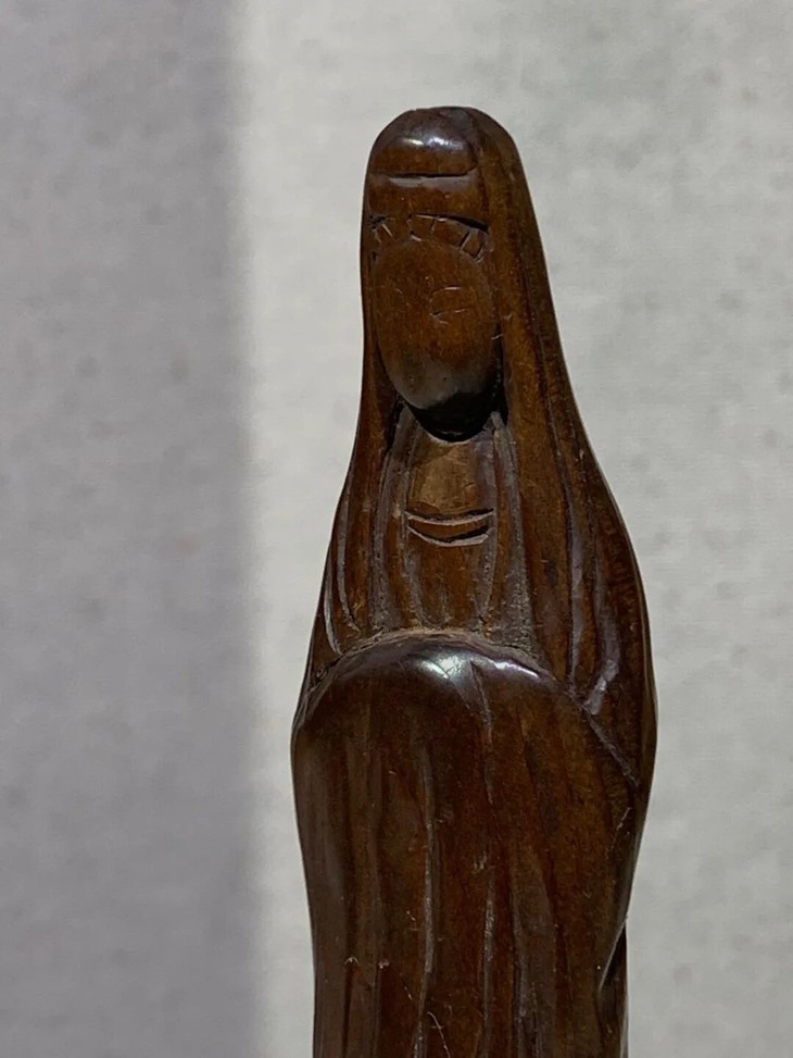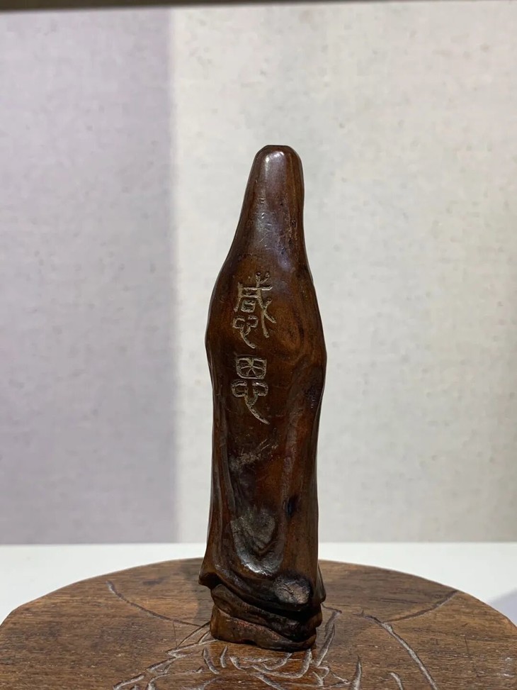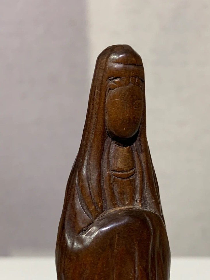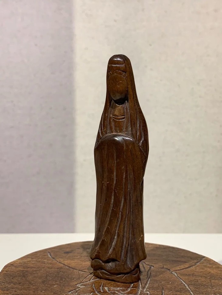 此优雅的黄杨木雕观音立像文人闲章,除边沿、表面细微磨痕与风化纹,没有任何损伤。是一枚可盘玩、可展示之高雅文人闲章。