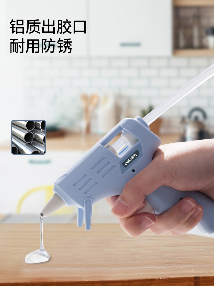 得力DL390021热熔胶枪带10支胶棒(蓝)