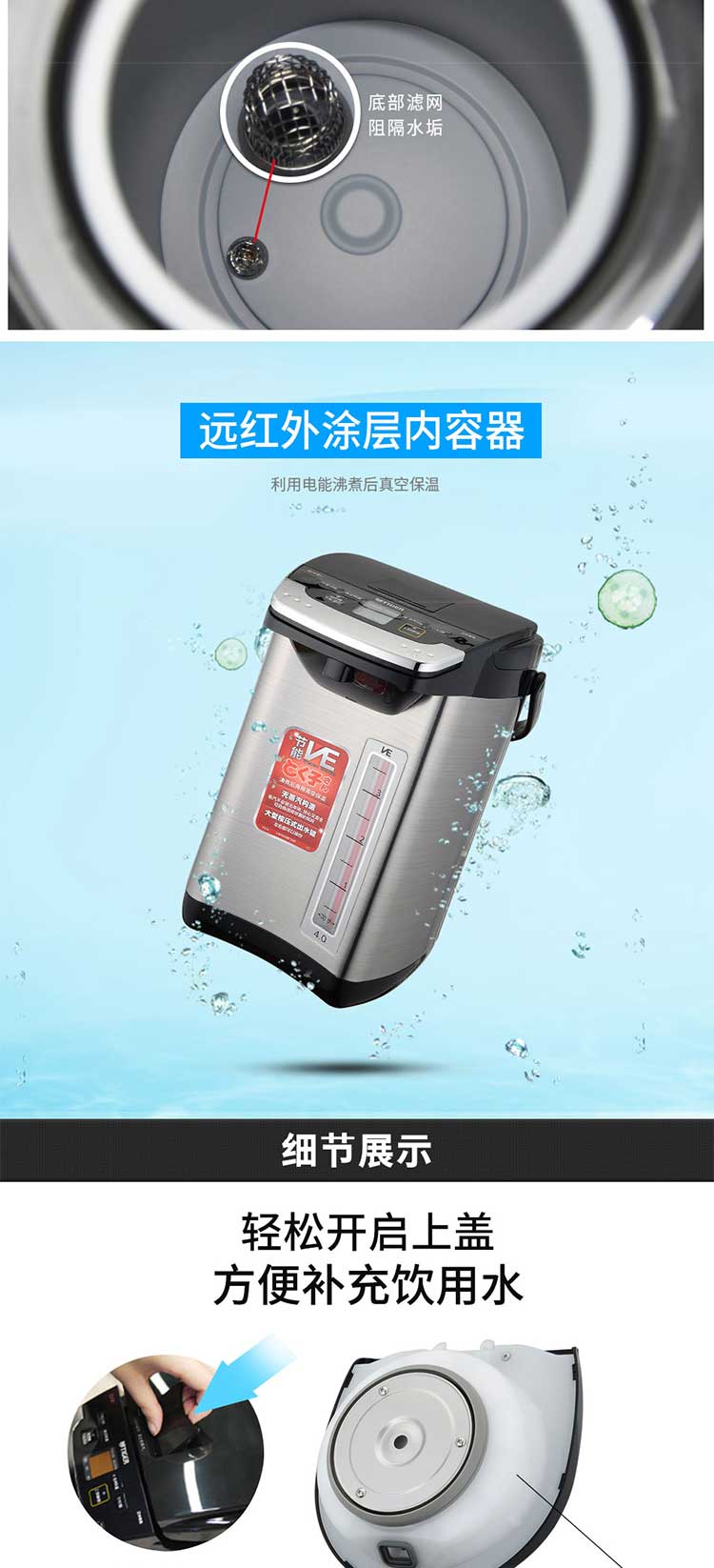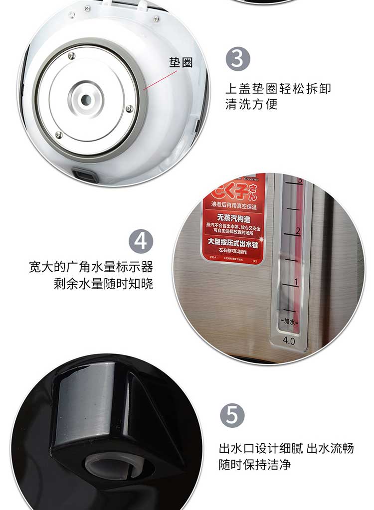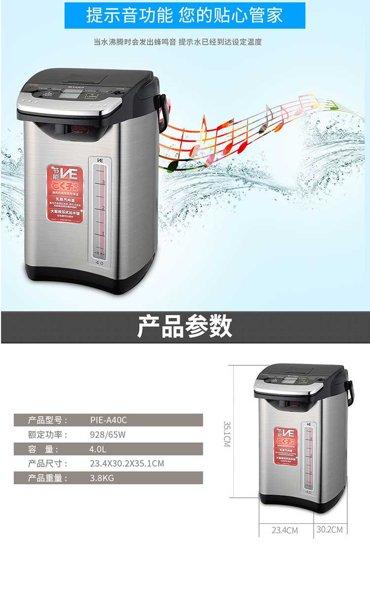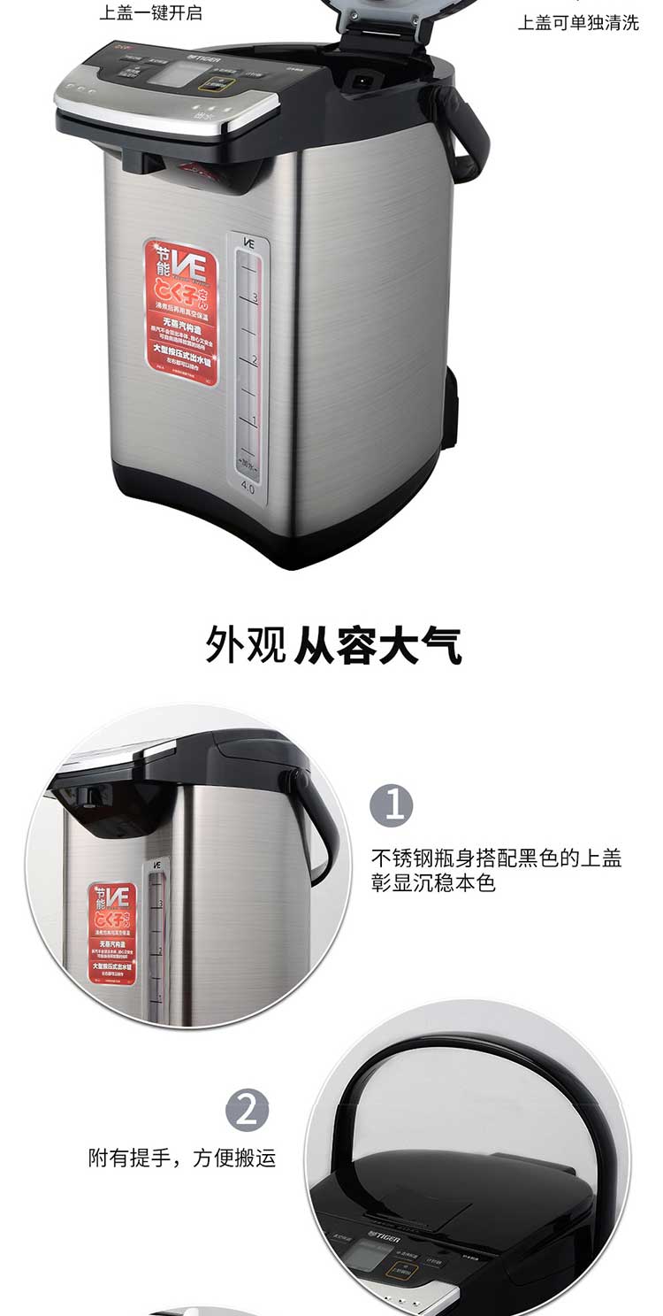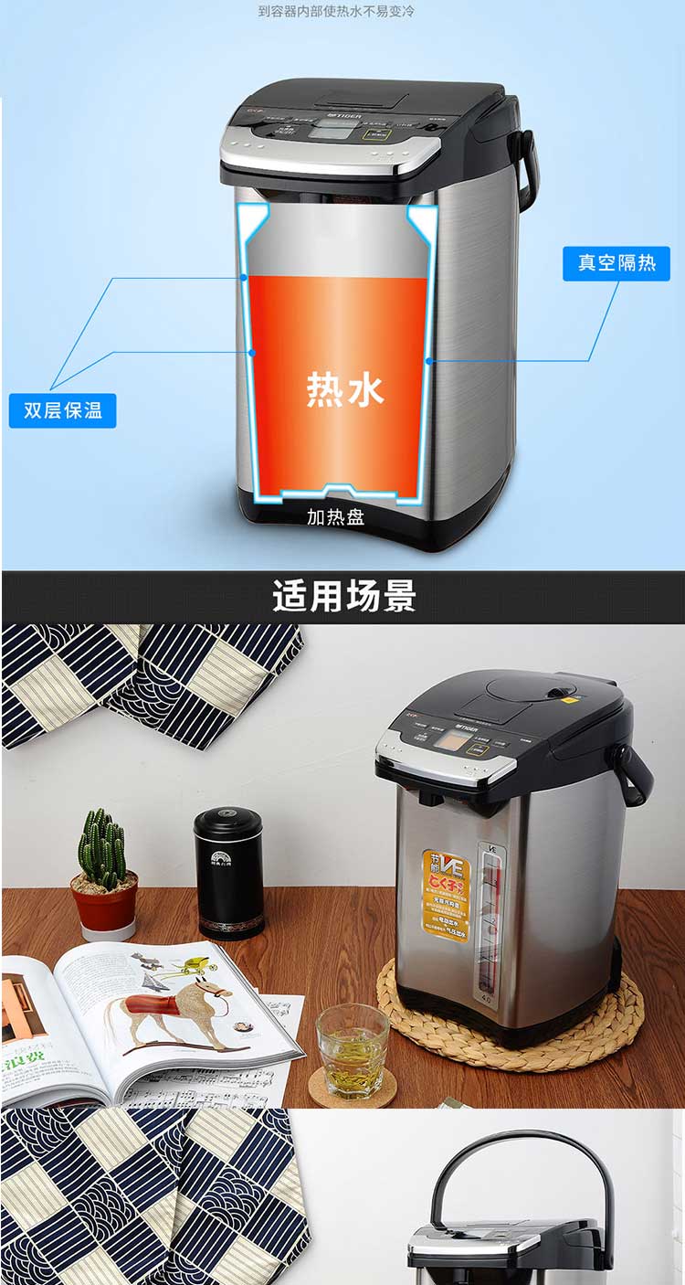 【6F】虎牌(TIGER) 日本原装进口 智能速热 电热水瓶电水壶PIE-A40C 4L