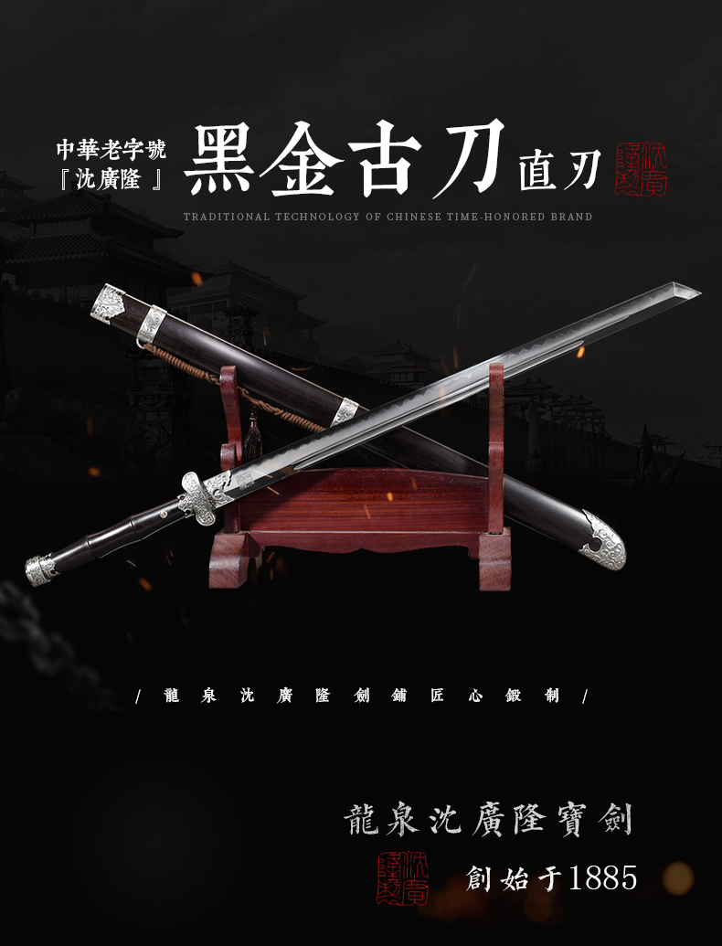 - 龙泉沈广隆剑舖创始于1885年(清光绪)位于浙江省龙泉市,是当地唯一一家“子承父业”一脉相承的中华老字号宝剑生产企业,是国家级非物质文化遗产龙泉宝剑项目保护单位,并以“天下第一剑”闻名于海内外....