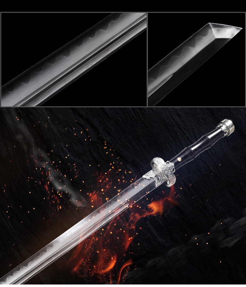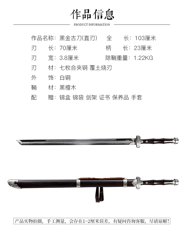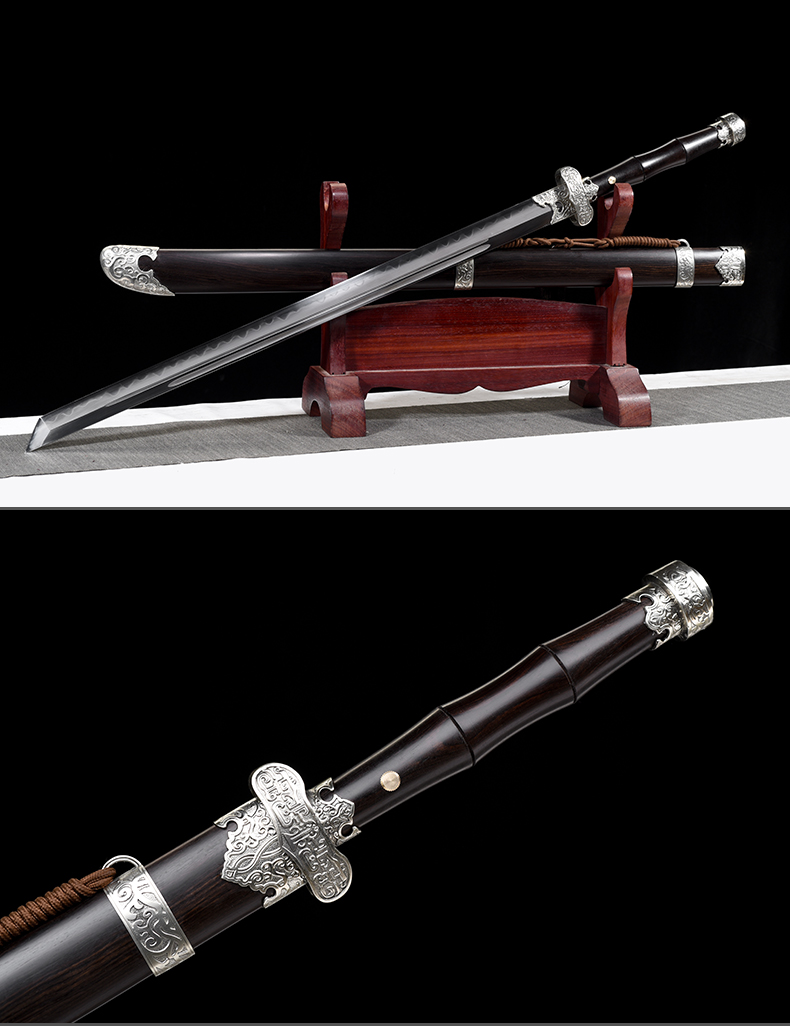 黑金古刀 直刃 汉唐刀剑 花纹钢唐横刀剑 龙泉沈广隆宝剑一体刀剑 收藏传统刀剑 未开刃