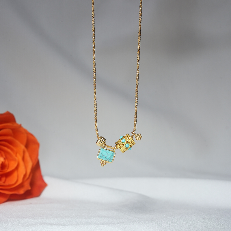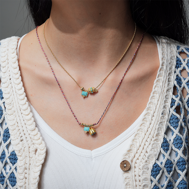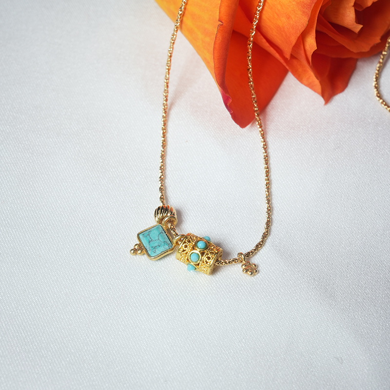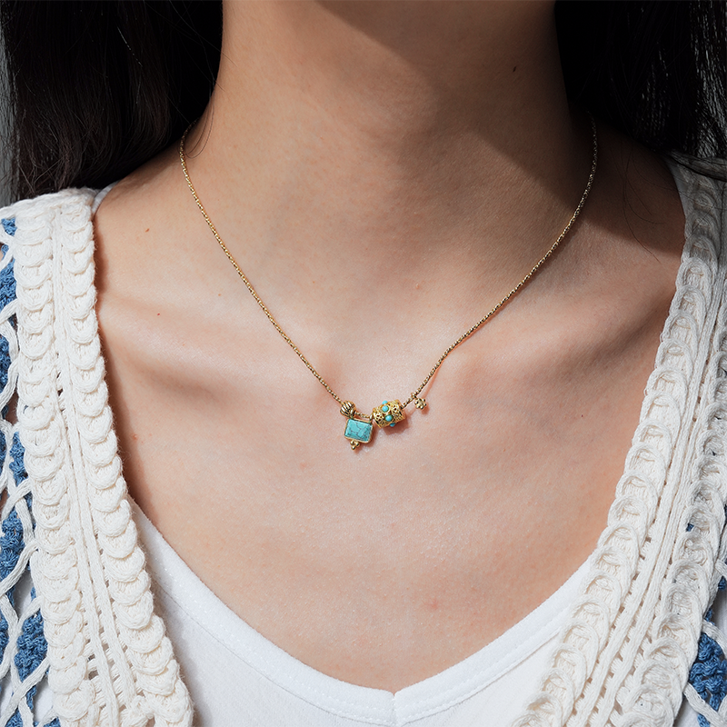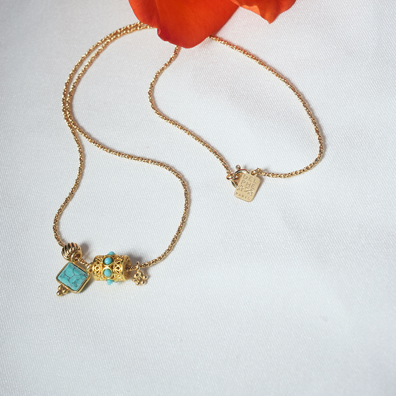 北京仓|DELPHES-CAMELLIA-山茶花 祈祷轮 松石 项链[法国设计师]