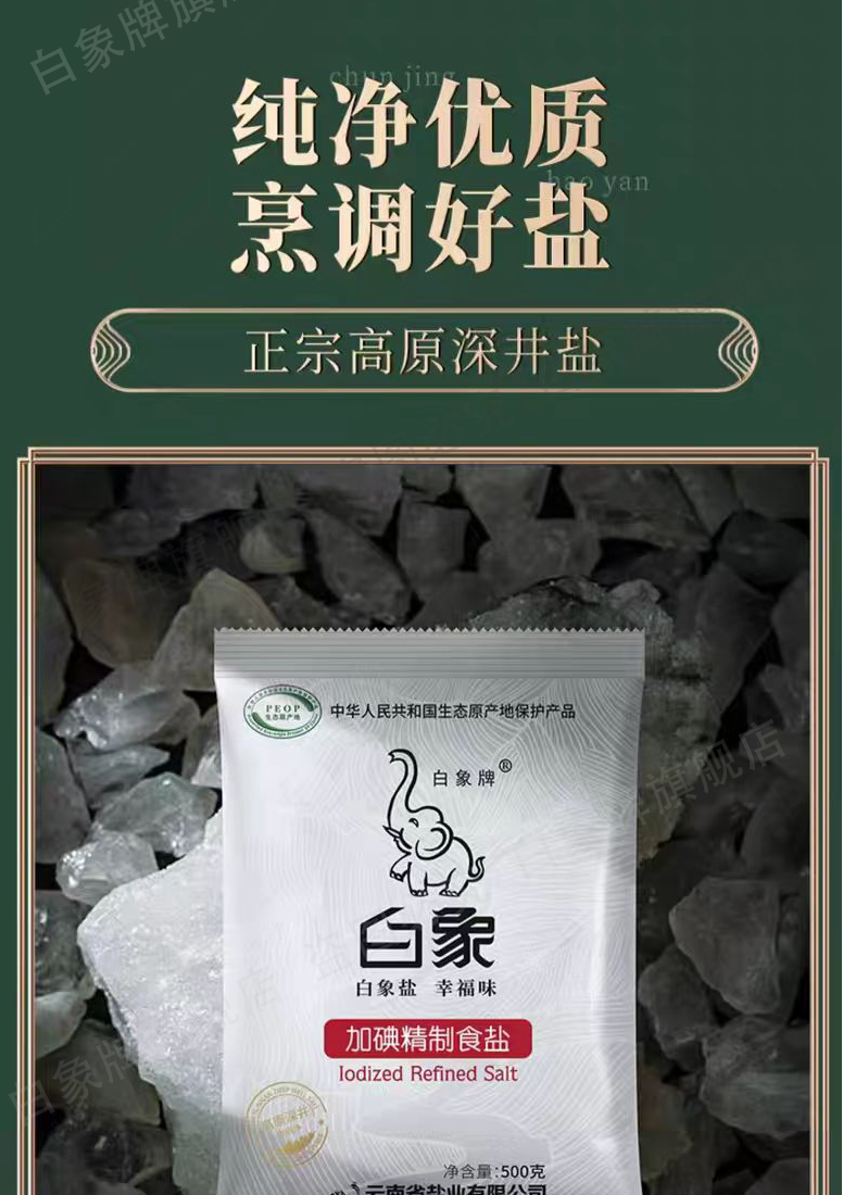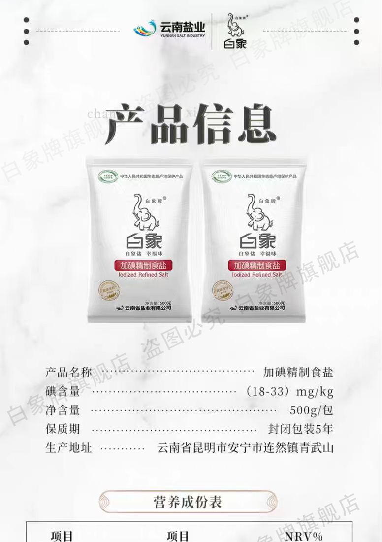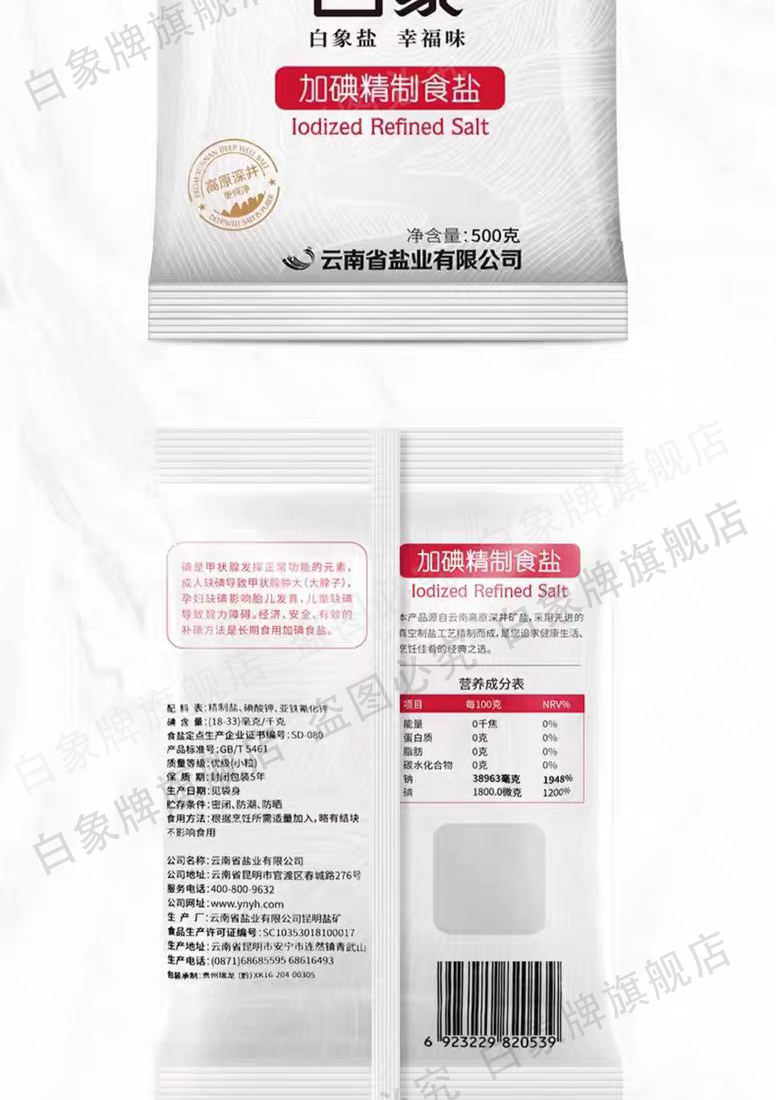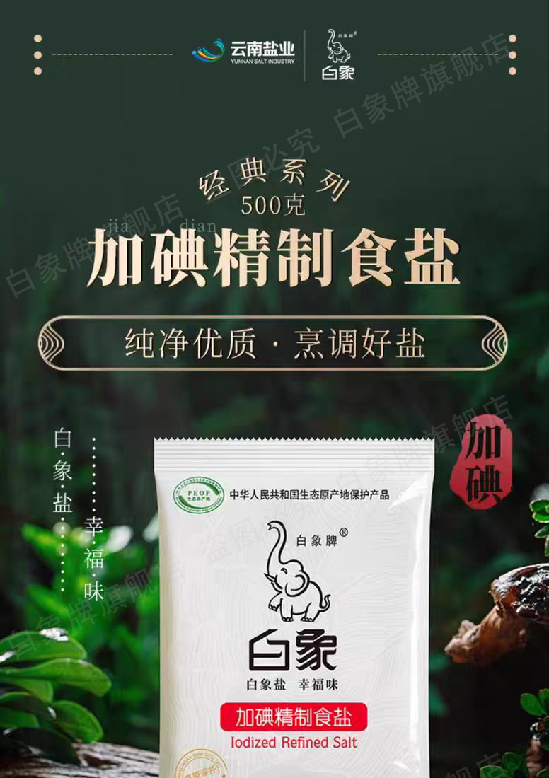 【整件发货】白象牌加碘精制食盐 500g*50袋 线上直销