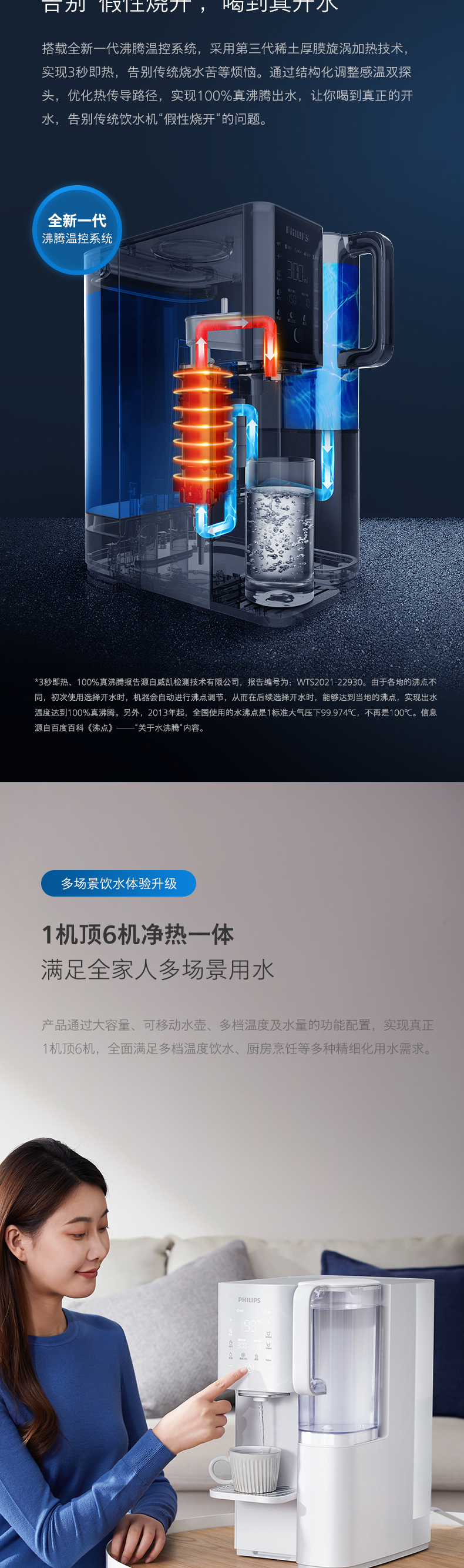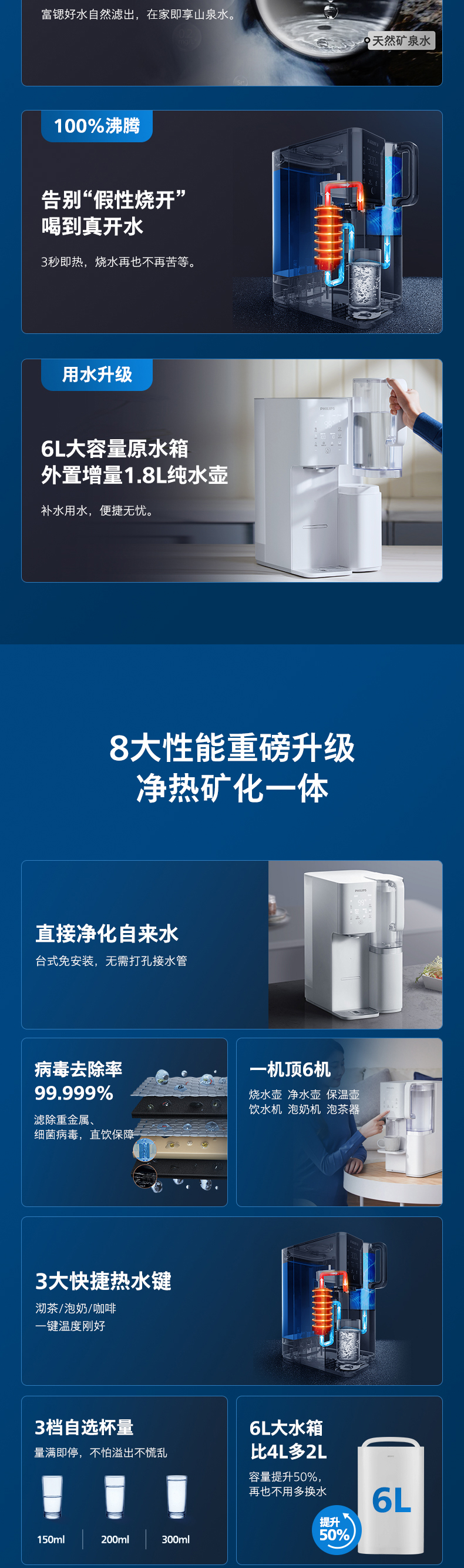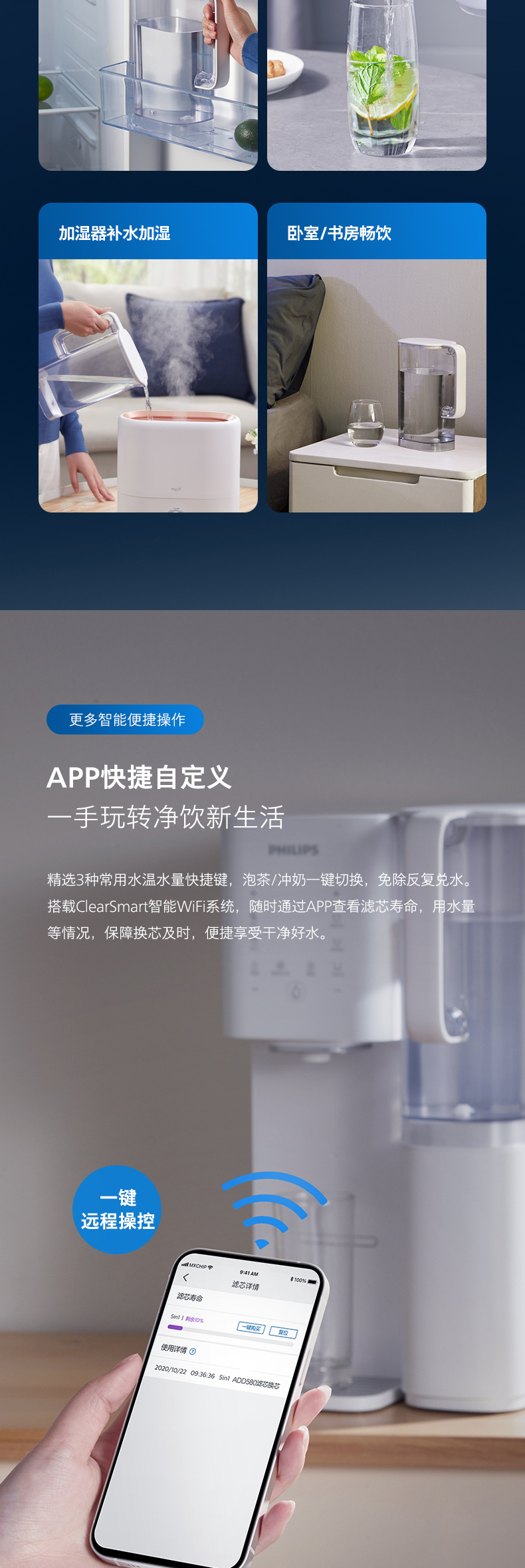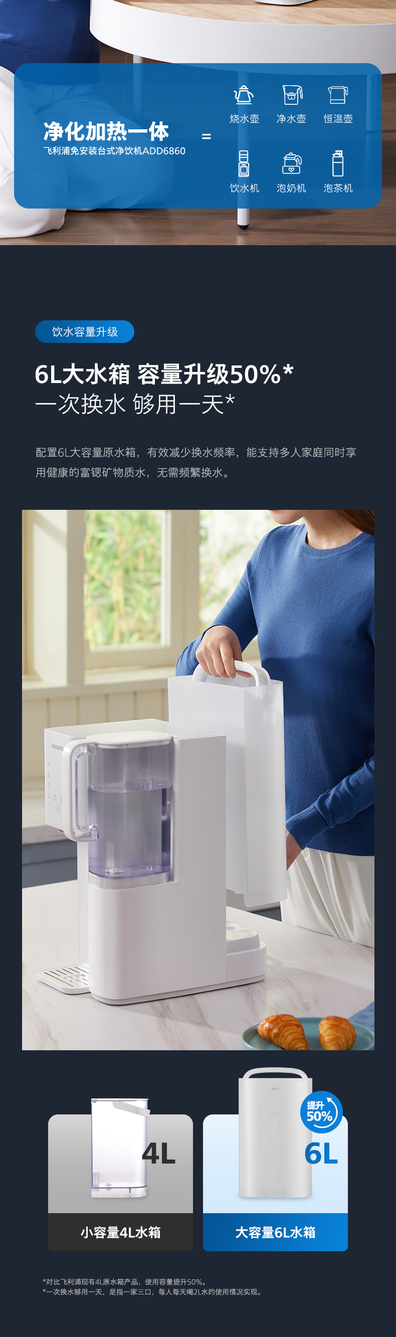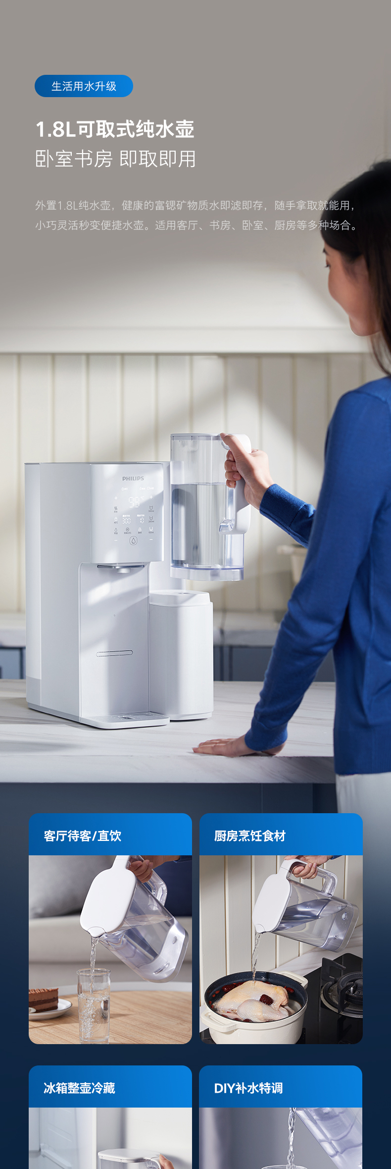 飞利浦(PHILIPS)水通道蛋白富锶免安装净水器家用即热饮水机加热一体净饮机ADD8636/93