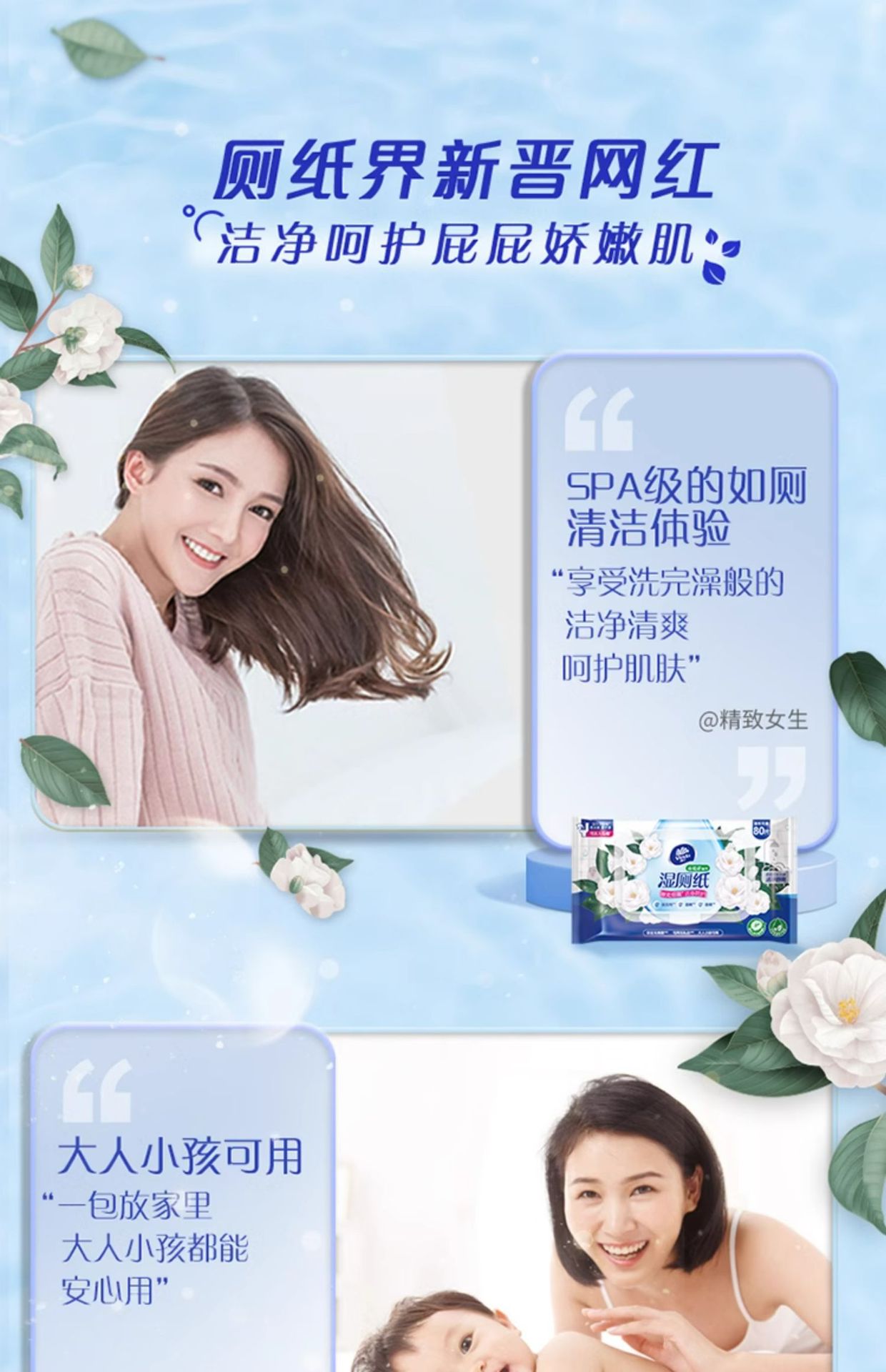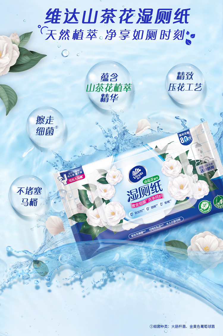 维达旗舰店山茶花芦荟湿厕纸80片厕纸湿纸巾