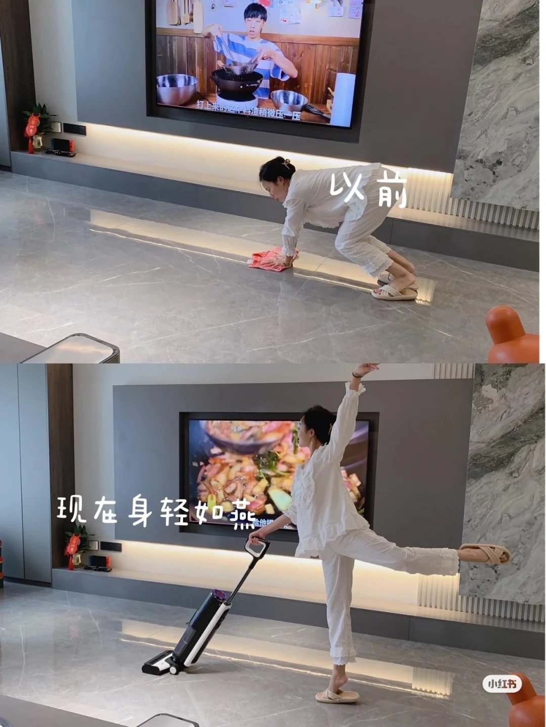 ● 超级方便,对于不太会拖地的我来说,一边拖地一边把头发这些细碎的垃圾一起吸进去,体验感极好。