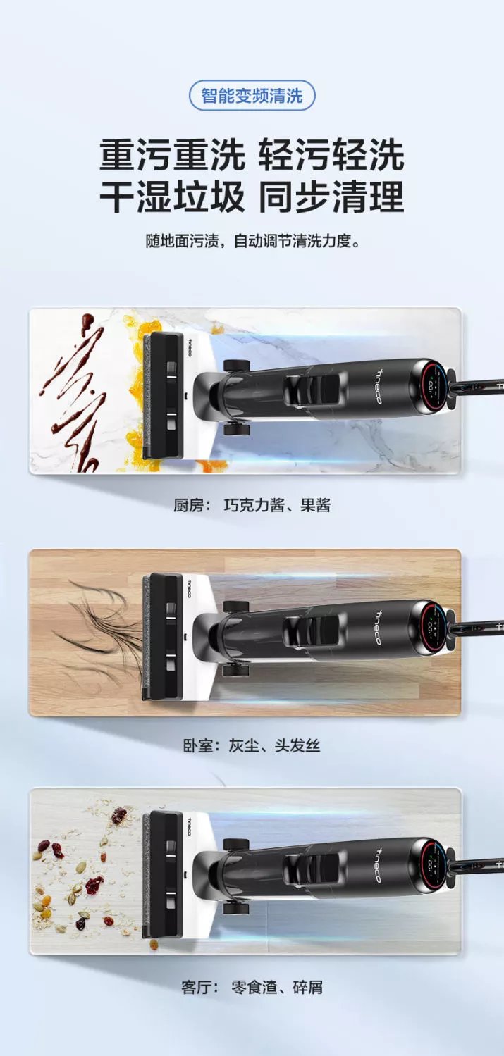 相比吸尘器和扫地机器人来说,洗地机和他们最大的区别在于,它可以清理湿垃圾和潮湿环境,尤其适合收拾厨余垃圾。