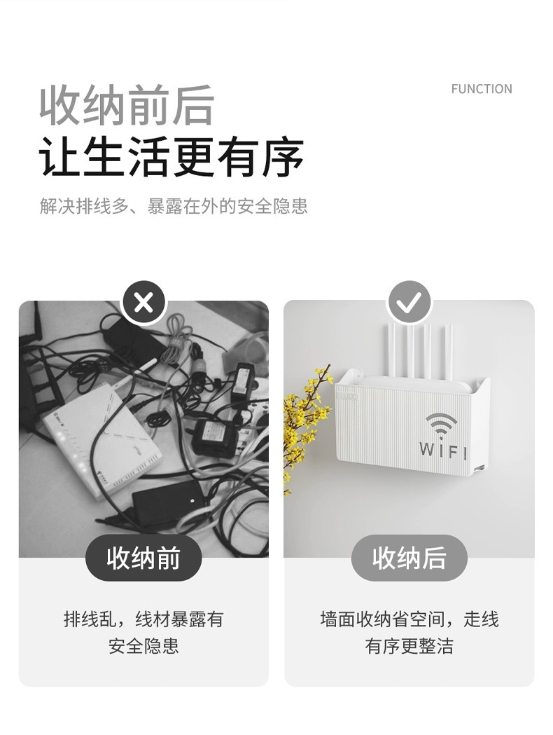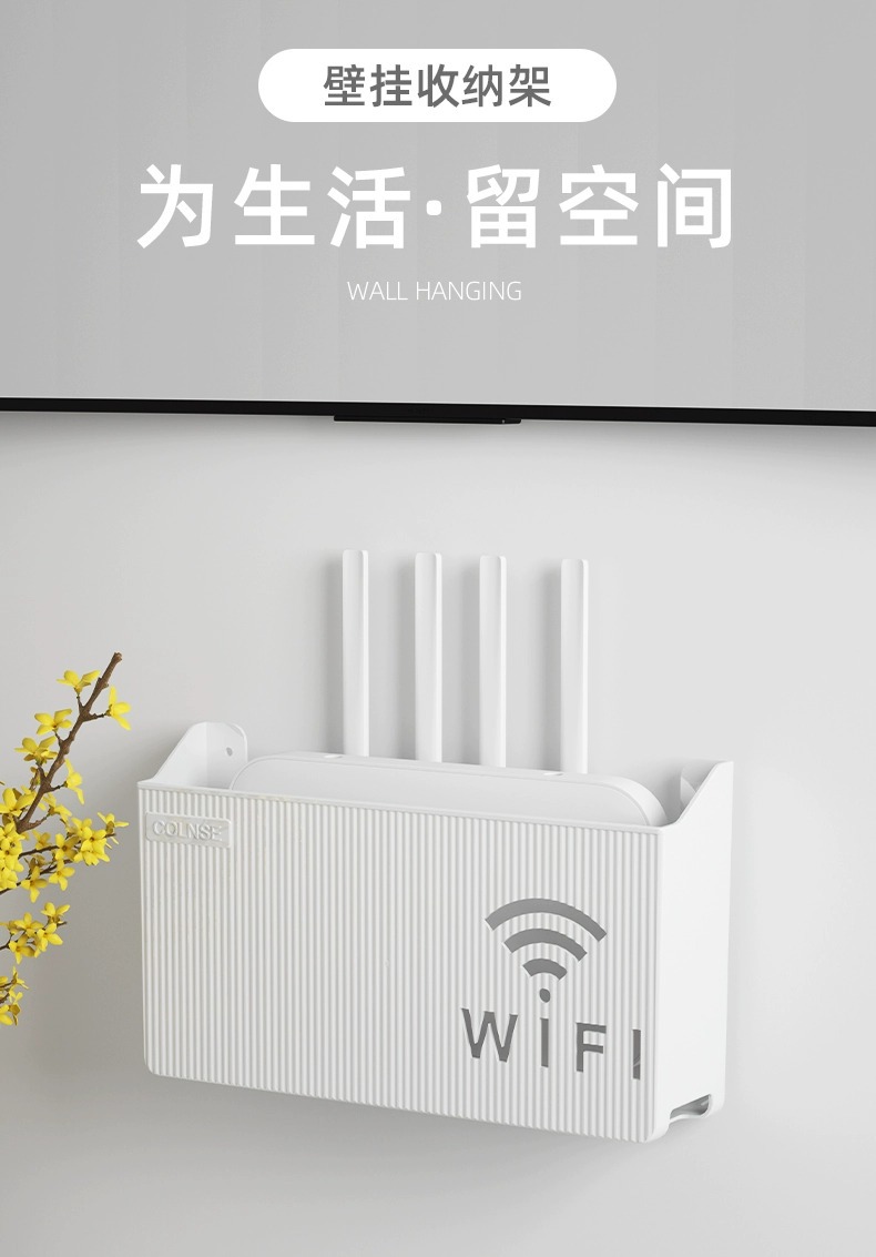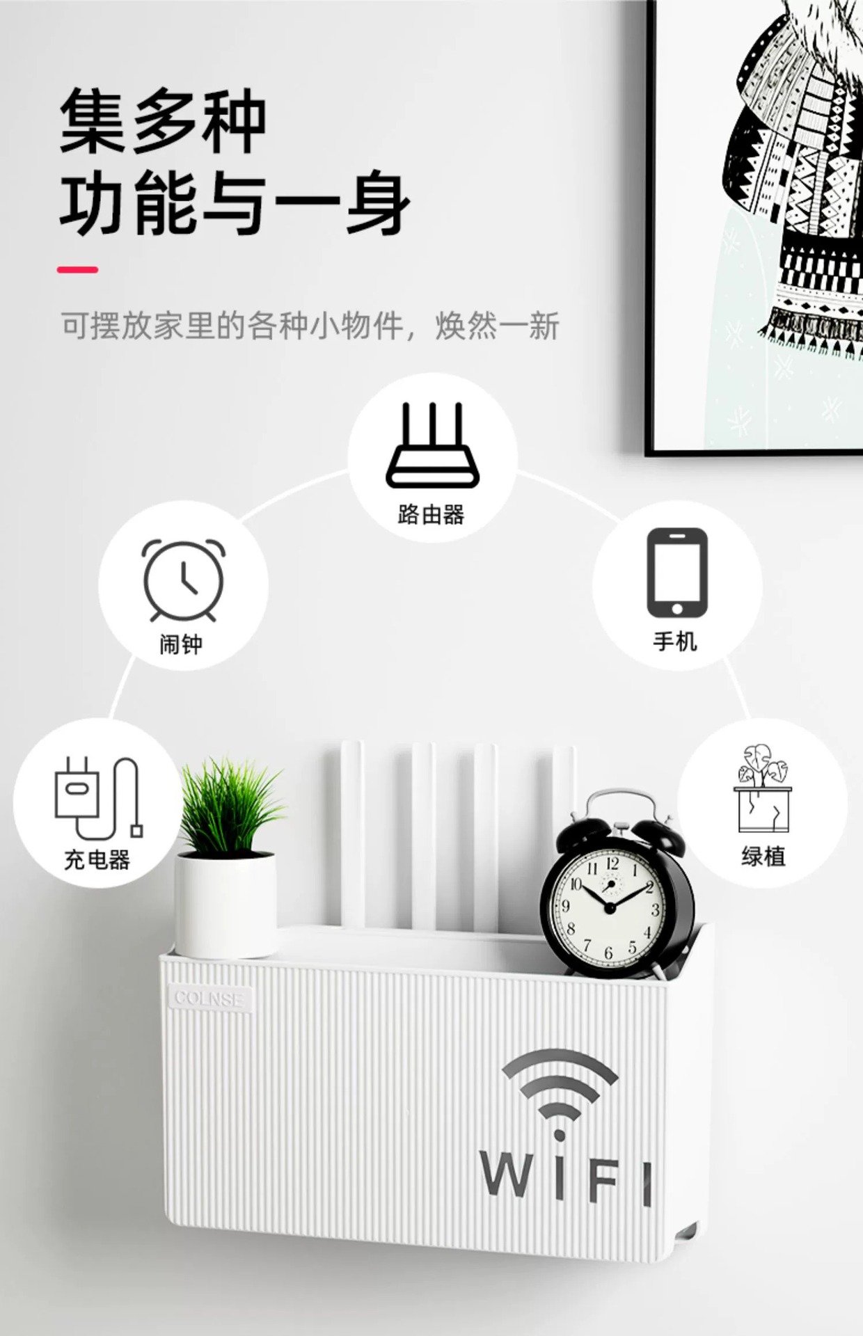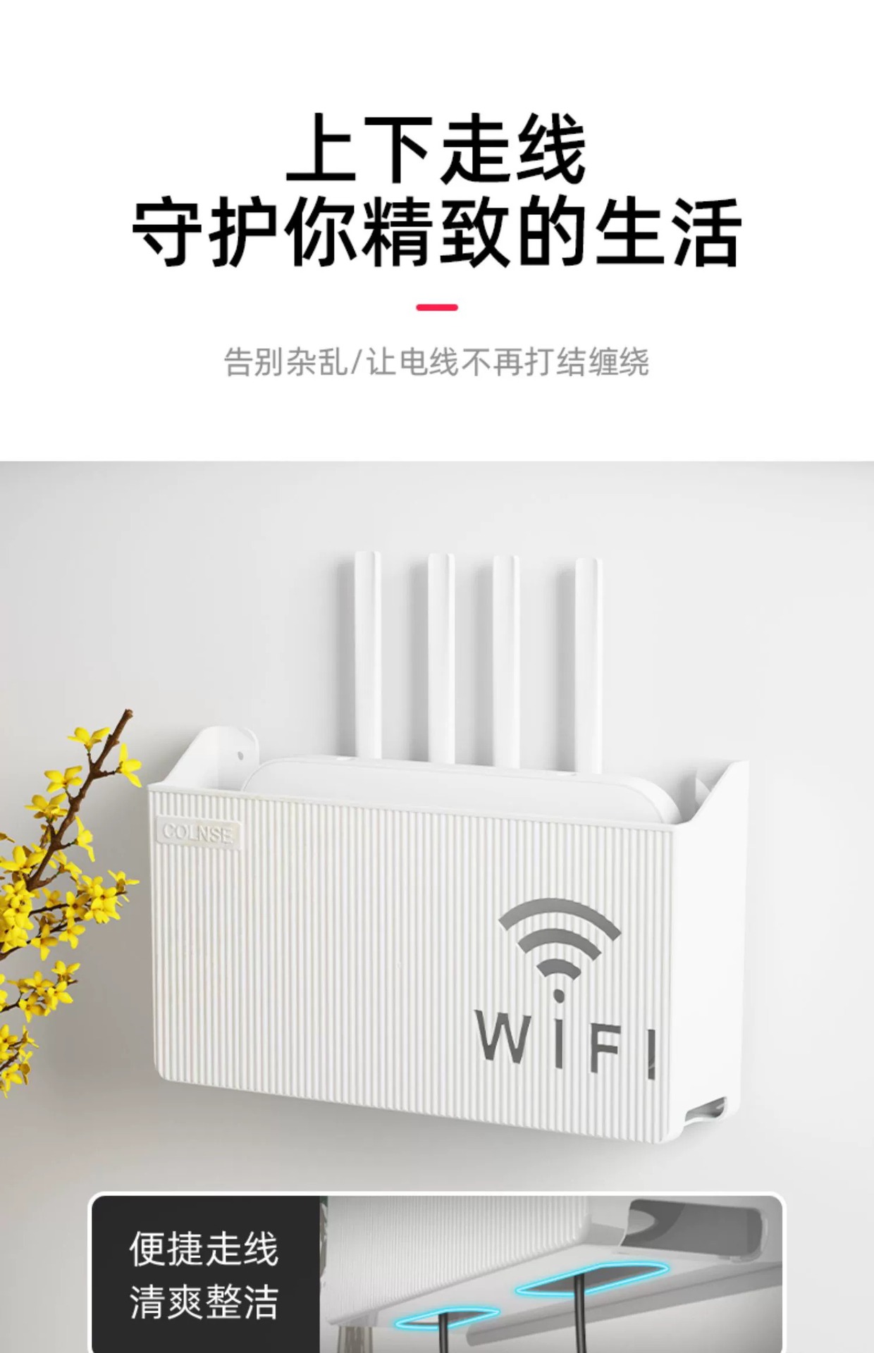 【13.9抢❗路由器WiFi收纳盒】壁挂收纳架,告别杂乱,让电线不再打结缠绕,圆润边角细腻不伤手,电线插座遮挡盒桌面数据线收纳置物盒双层理线盒QQ