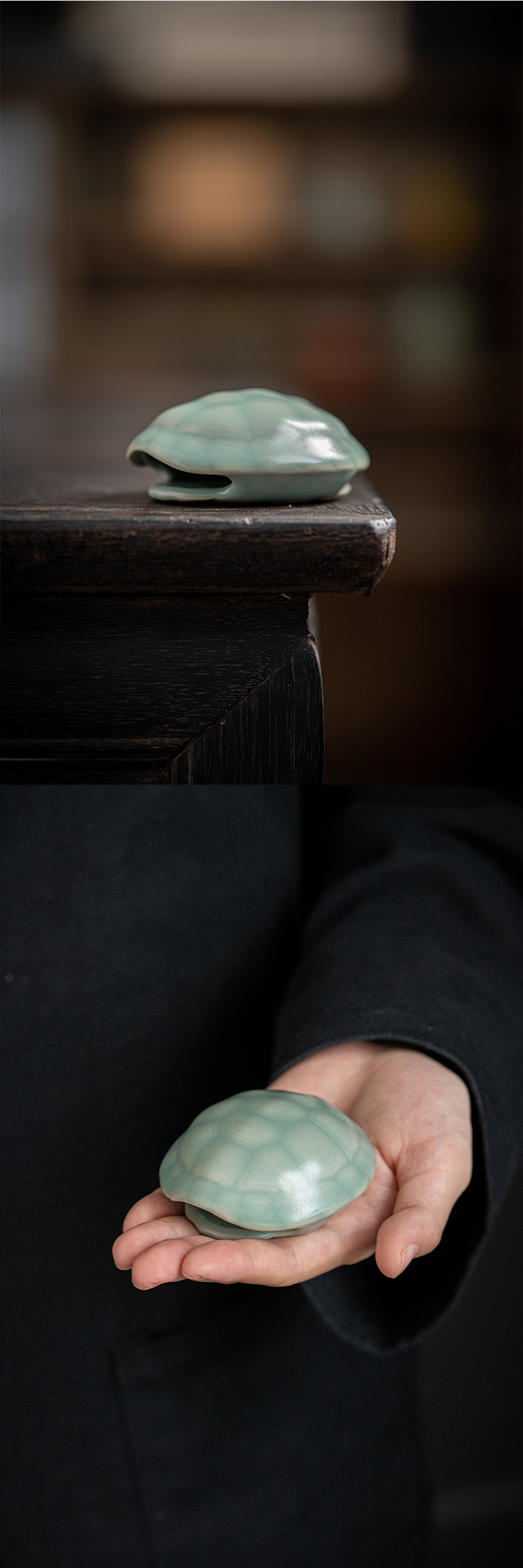 【48小时发货】汝山明汝山明富甲一方把玩件 汝瓷龟壳摆件 仿古豆青釉仿生汝瓷茶具配件