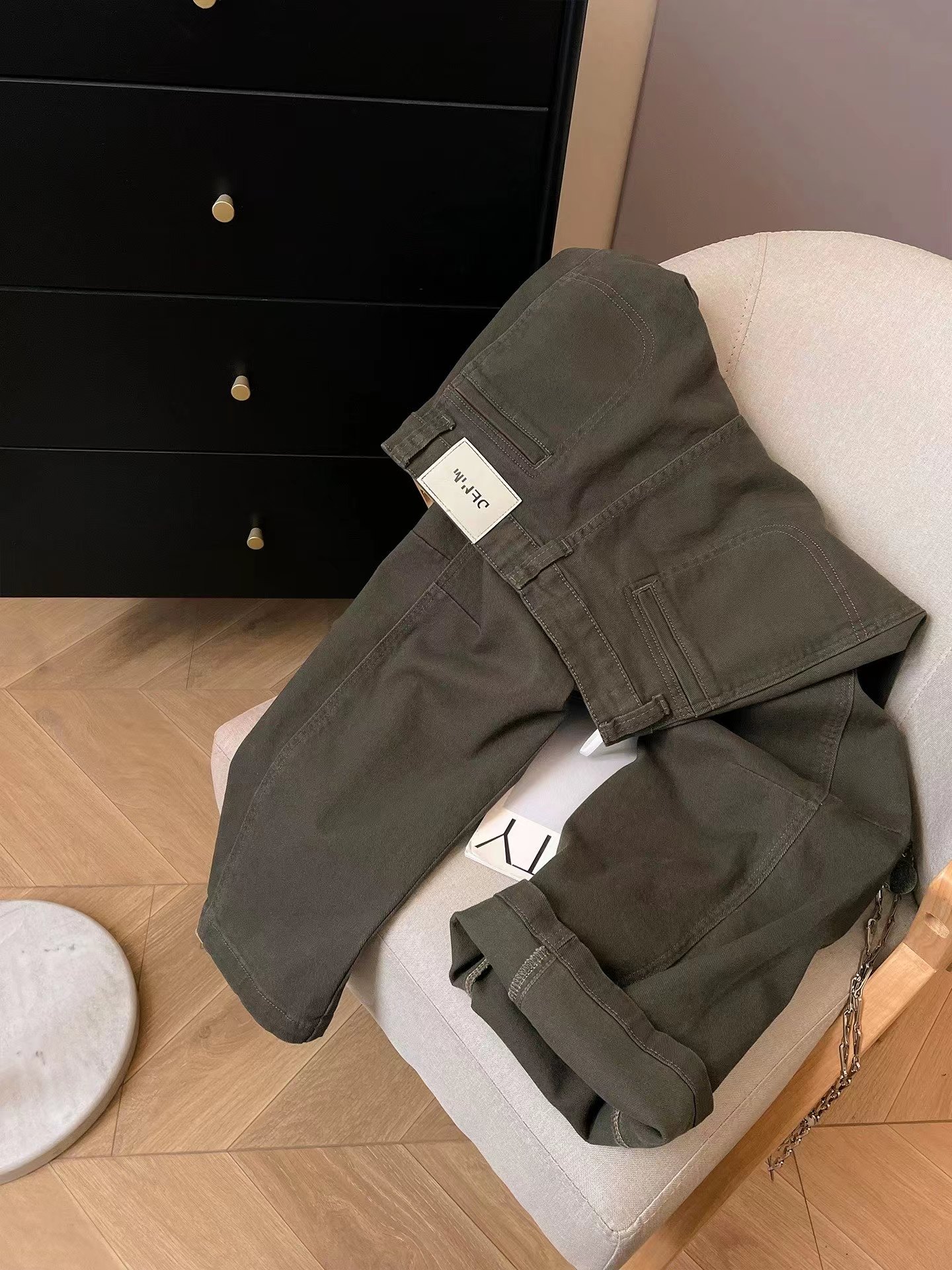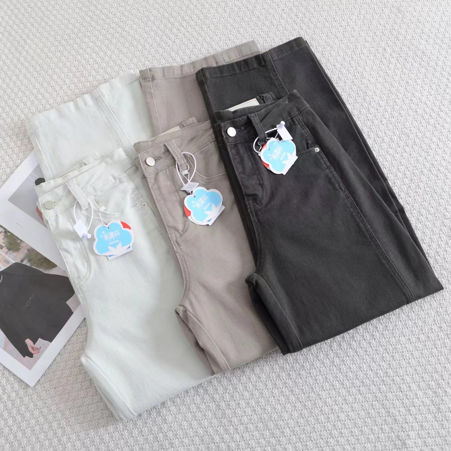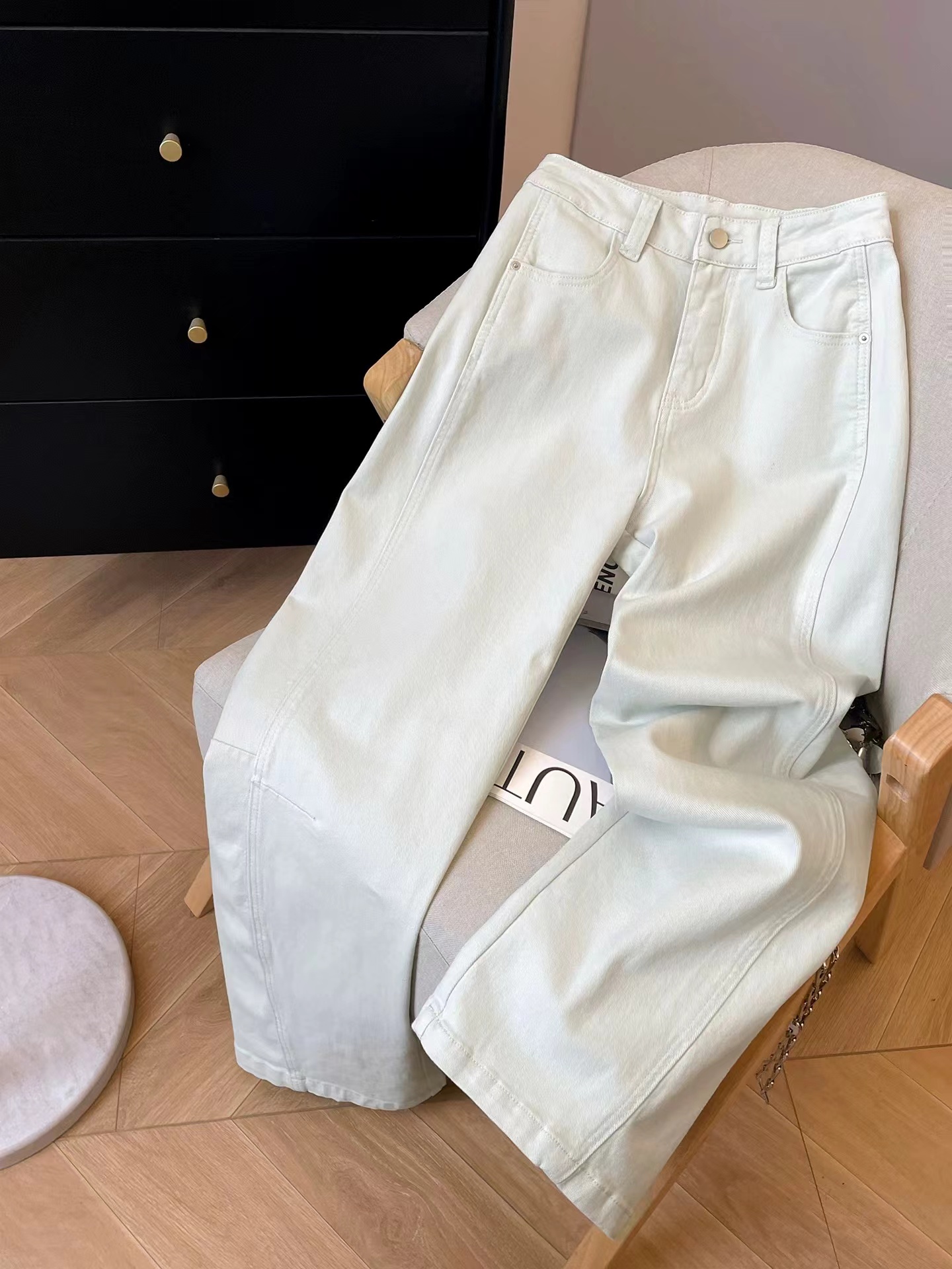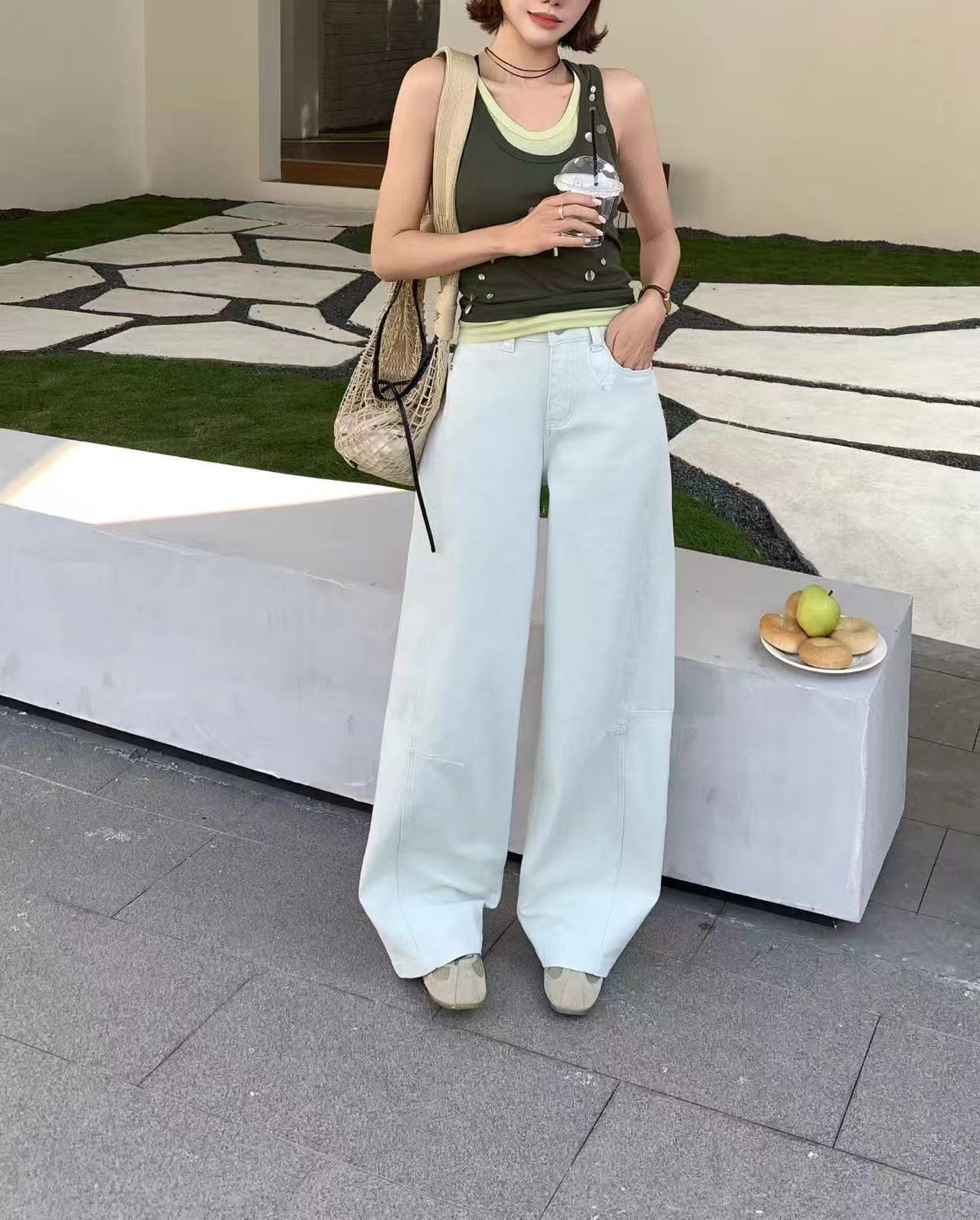 日系工装牛仔裤女2026新款春季显瘦宽松阔腿裤微弯刀休闲裤,#棉氨混纺弹力复古弯刀裤!调性十足水洗棉氨立裁弯刀裤!#私信被好多人问的弯刀裤来咯!上身菲常修饰腿型!有腔调。棉氨弹力牛仔面料,成衣经过二次软洗后手感柔软有弹力,表面斜纹肌理,纹理清晰休闲弯刀裤型,是梨形,腿型bug的终/结者,两侧破骨茧型侧缝走前后分割设计,视觉上黄显瘦,打破常规,YKK金属闭尾拉链搭配做旧工纽扣,拉齿顺滑,穿脱便捷自如。后腰质感皮牌加持,后对称贴袋,增加辨识度搭配衬衫/针织/打底衫T恤都可~,推荐人手一件!