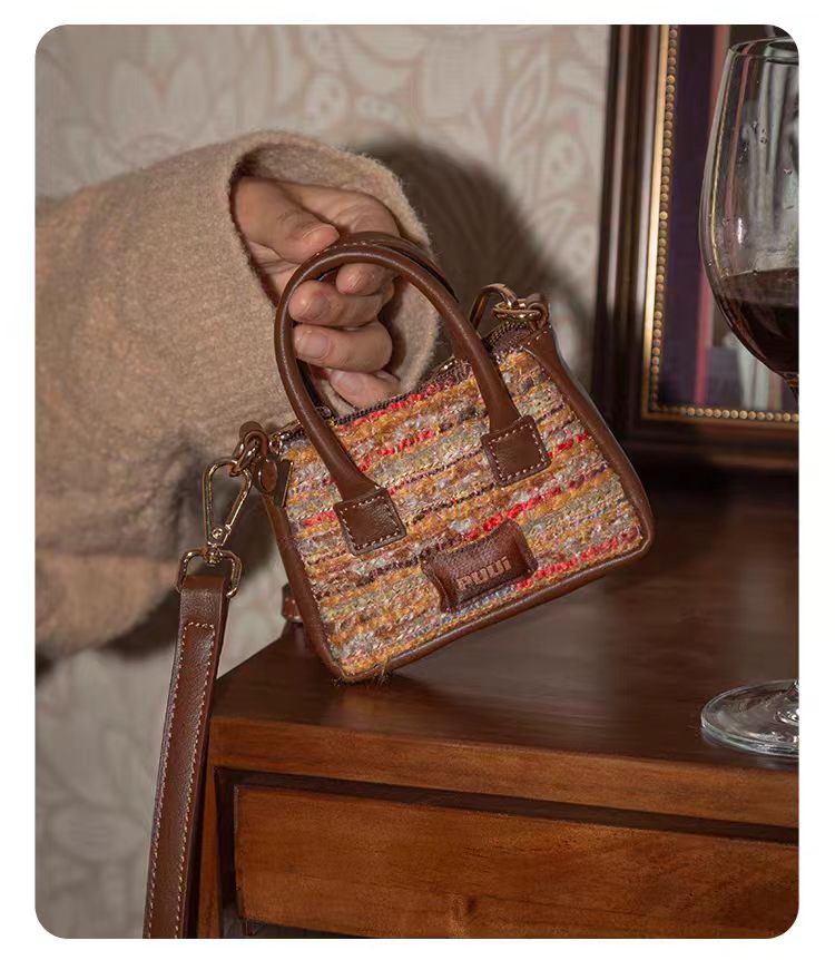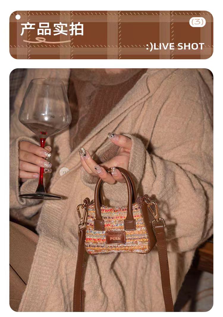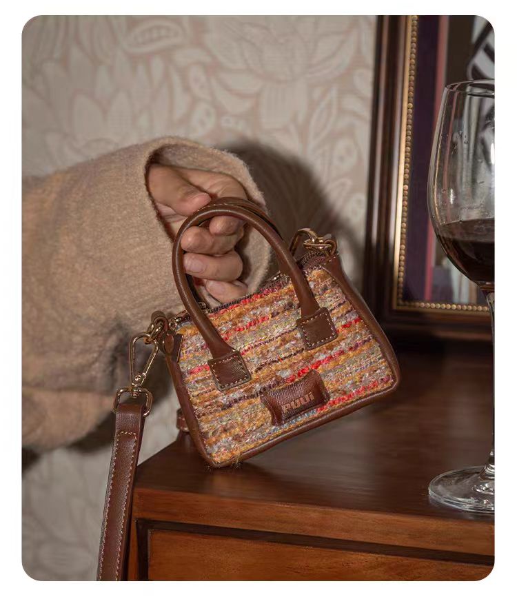 4楼Eubelle欧蓓 puui原创设计秋冬耳机包 女生草编复古可斜挎包 活动价:189元