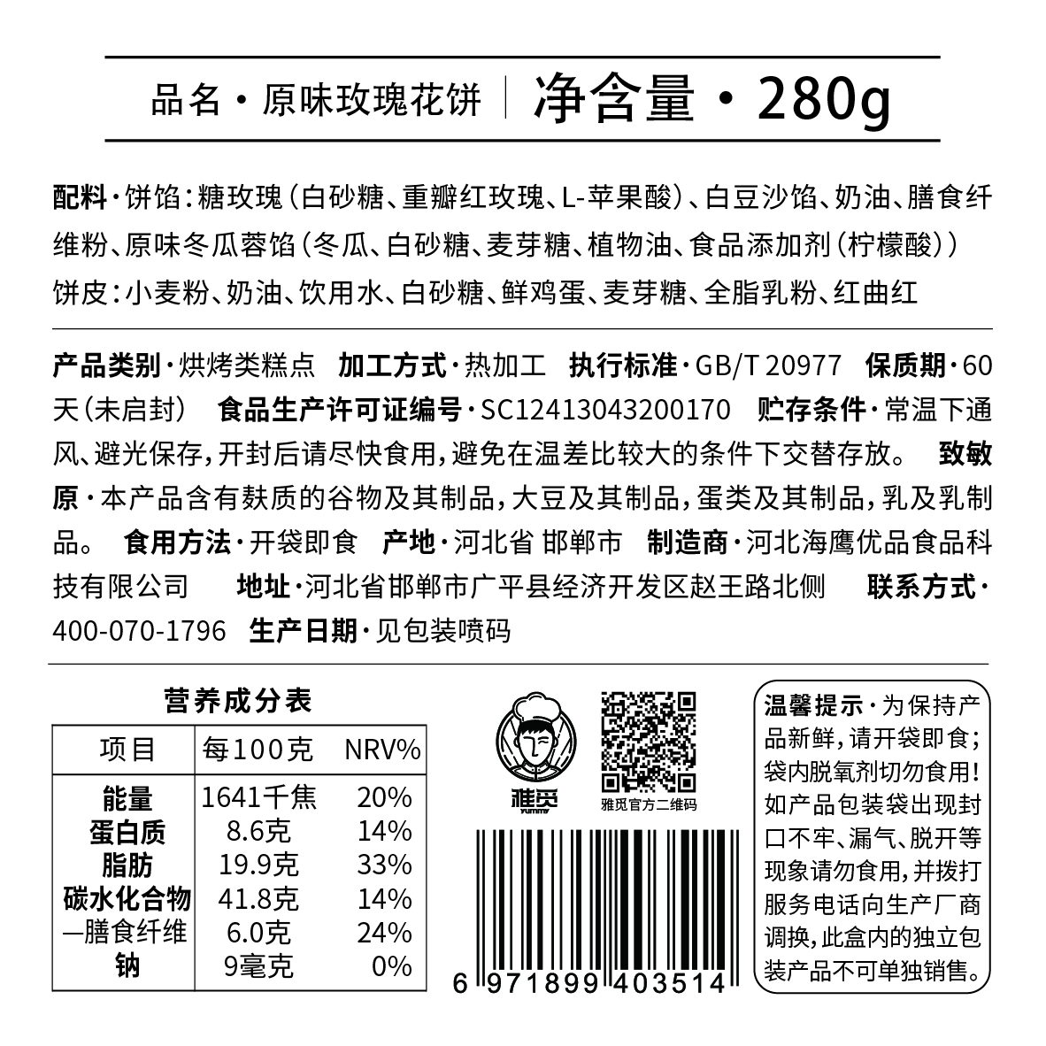 雅觅 玫瑰鲜花饼280g 原味特产糕点馅饼 休闲食品零食点心