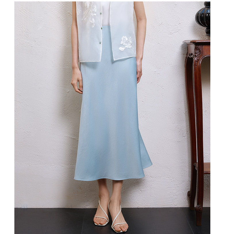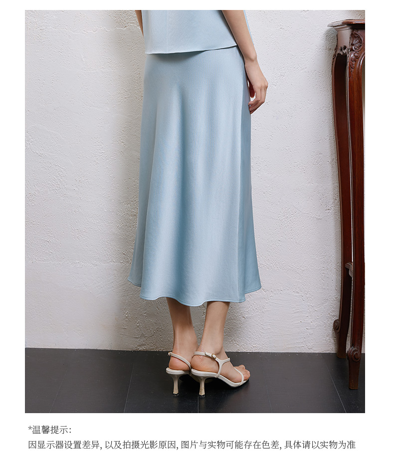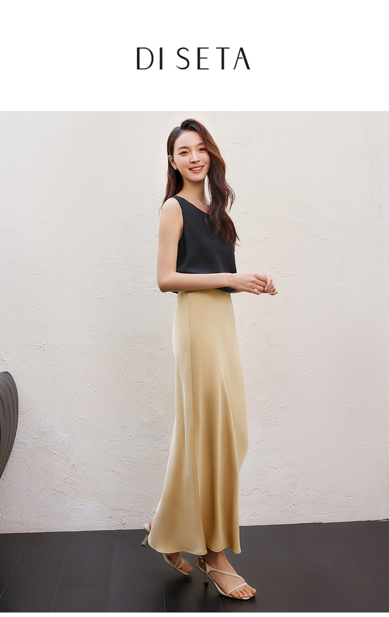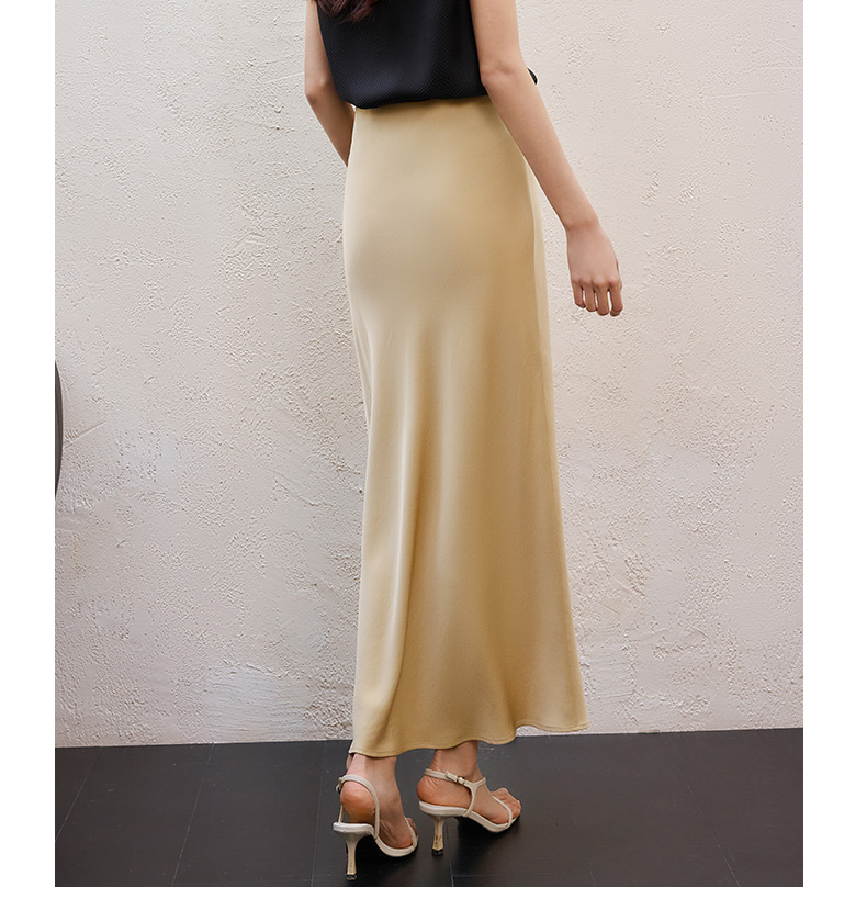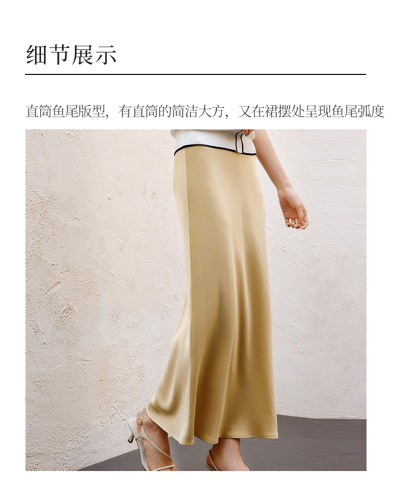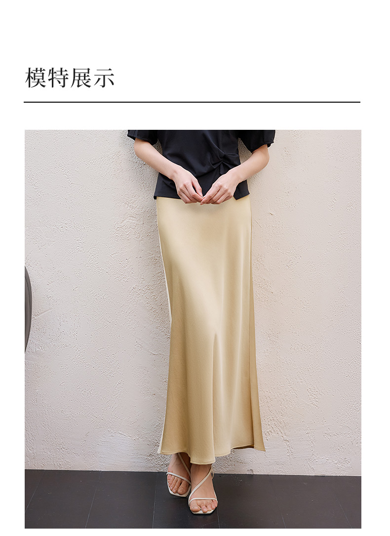 玳莎醋酸缎面半身裙女2025年夏季新款垂顺显瘦松紧腰中长款鱼尾裙 FB34301
