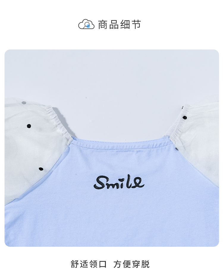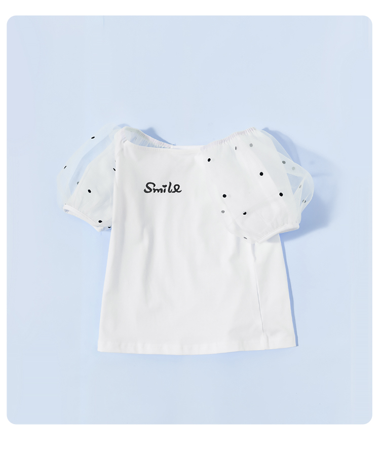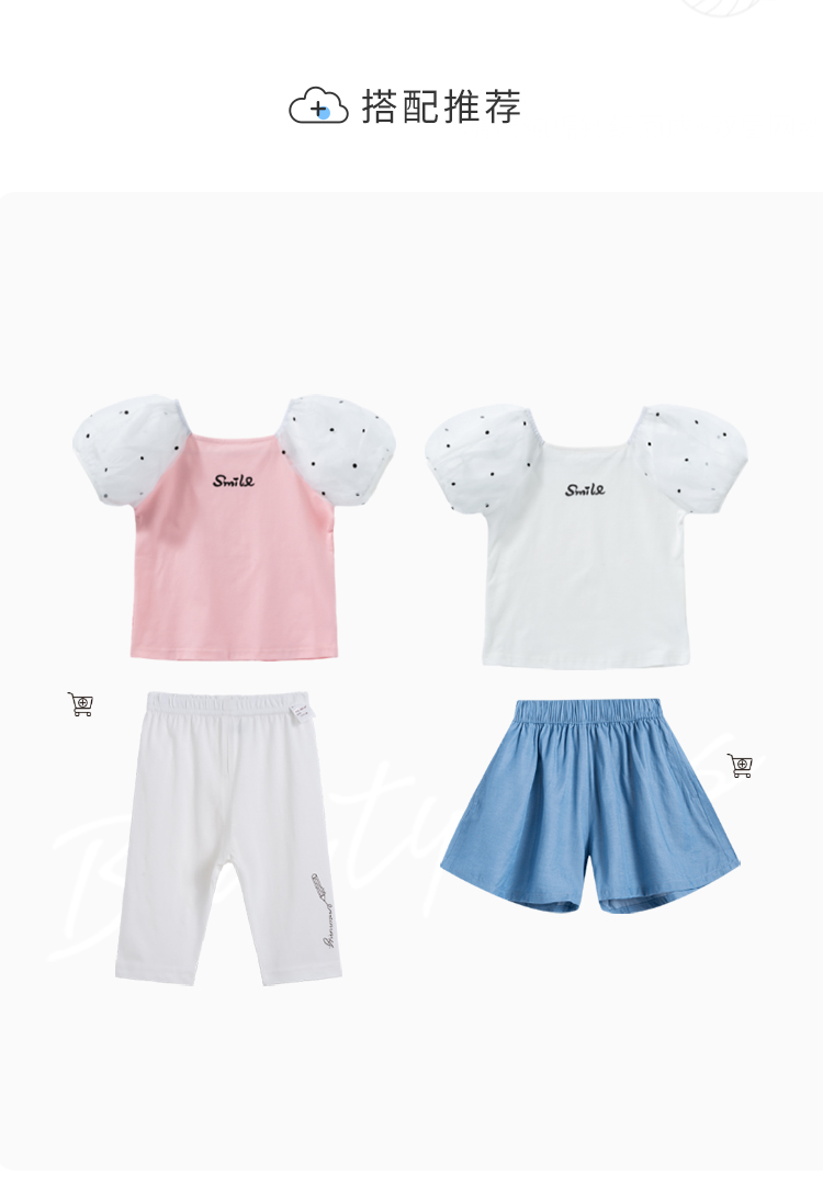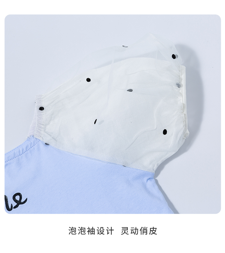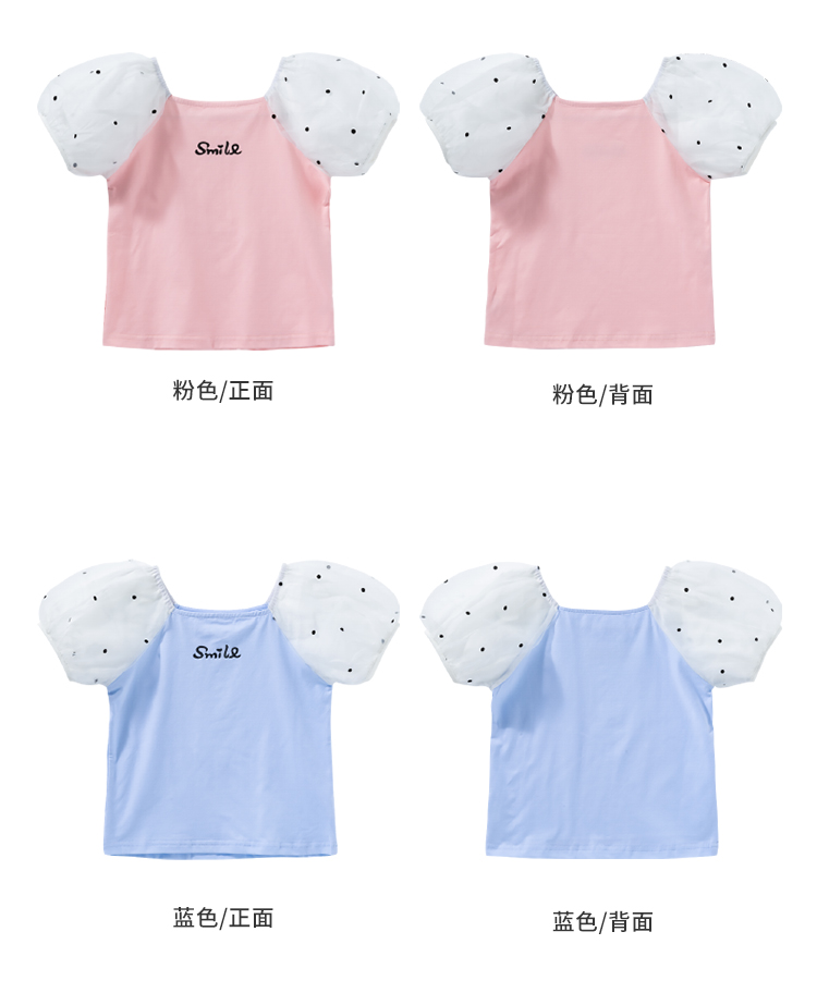 贝贝怡夏季新款女童上衣甜美时尚泡泡袖短袖T恤