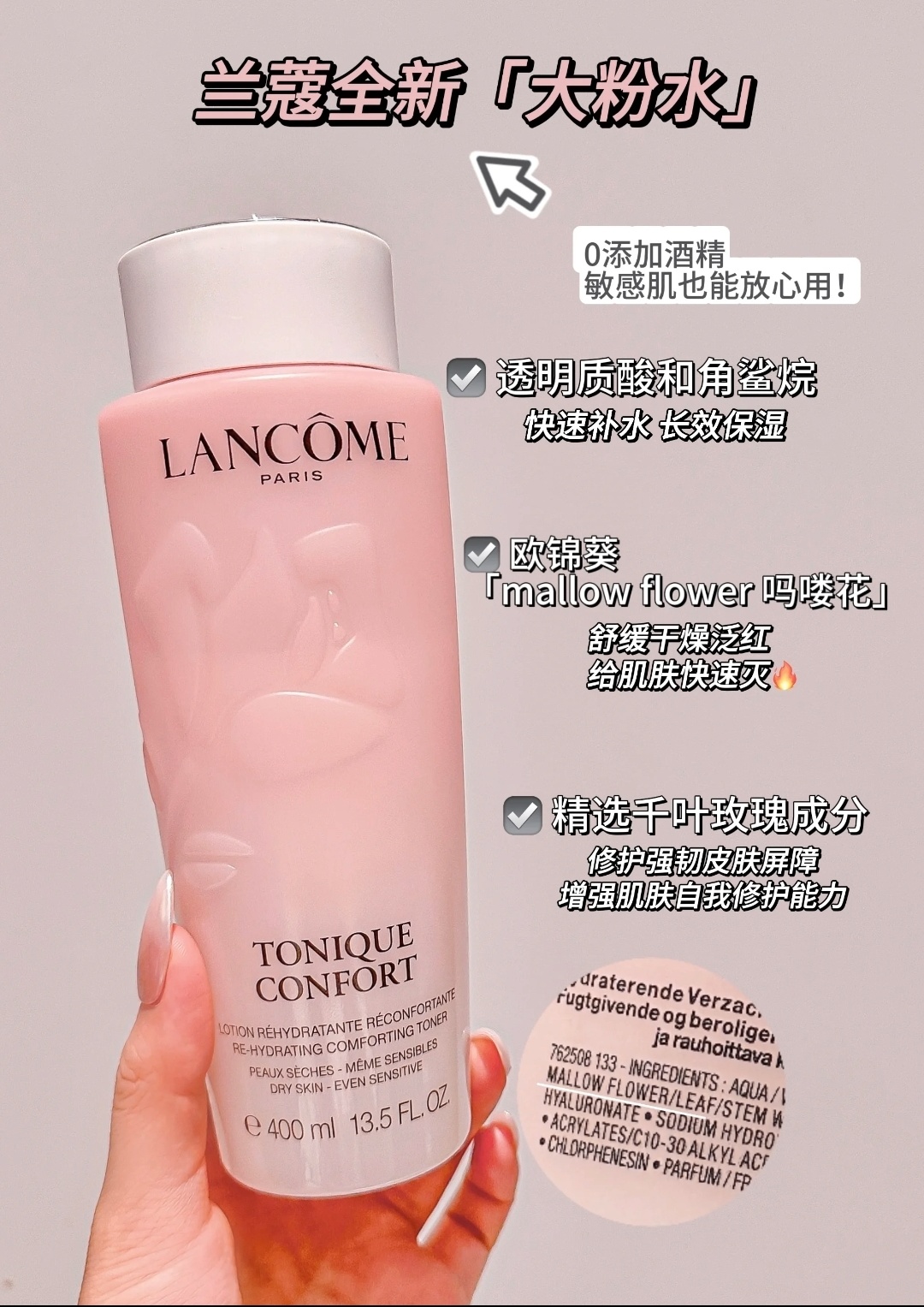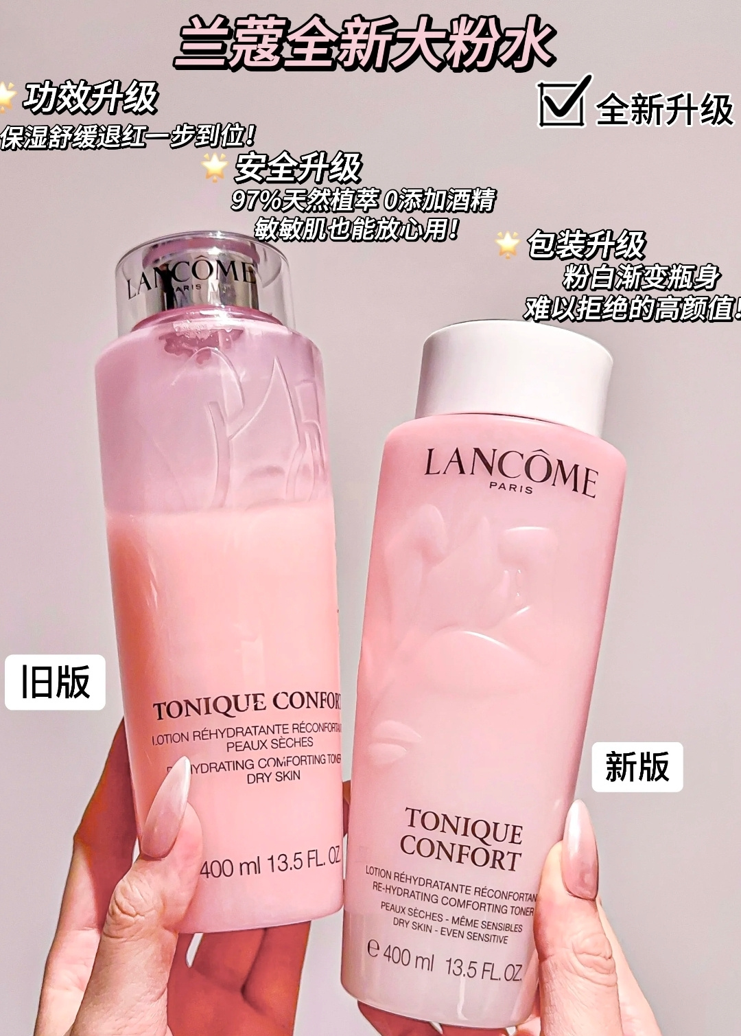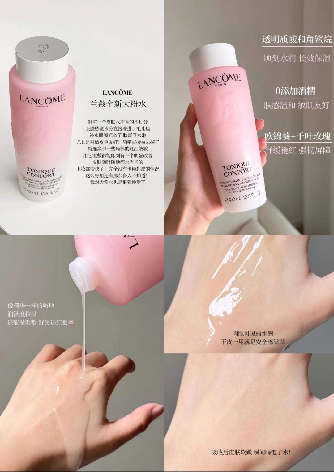 【全新兰蔻粉水400ml】新升级颜值绝了,这次完完全全变成了一支香香润润的快乐保湿水!很清新的花果香,千金大小姐的香味!质地水润轻盈,流动性很强