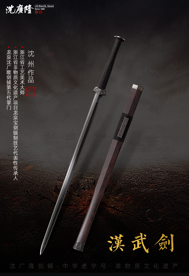 - 龙泉沈广隆剑舖创始于1885年(清光绪)位于浙江省龙泉市,是当地唯一一家“子承父业”一脉相承的中华老字号宝剑生产企业,是国家级非物质文化遗产龙泉宝剑项目保护单位,并以“天下第一剑”闻名于海内外....