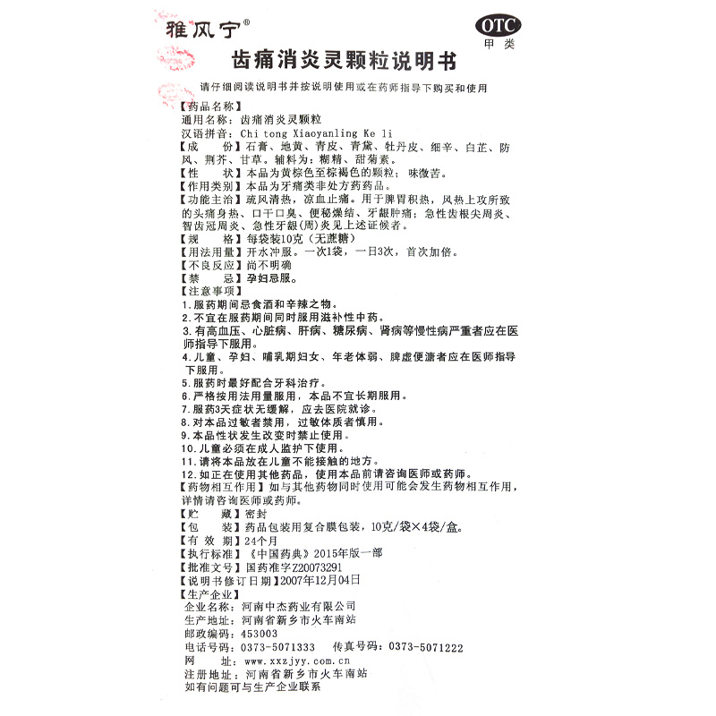 雅风宁齿痛消炎灵颗粒10g*4袋/盒口干口臭便秘燥结凉血止痛牙龈炎