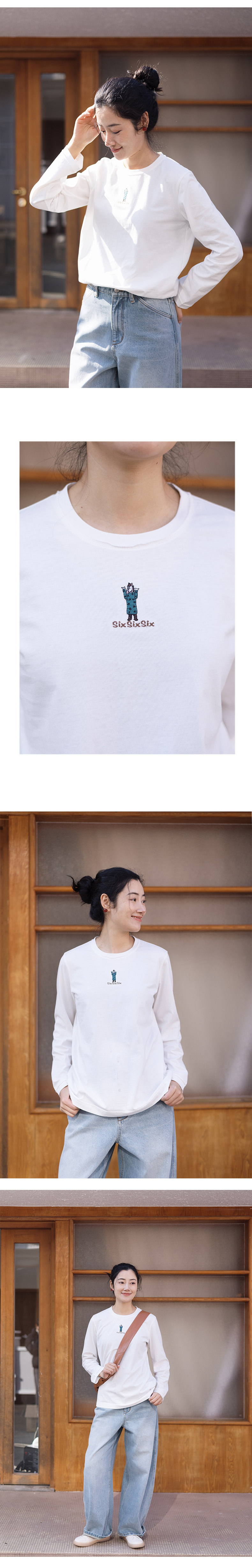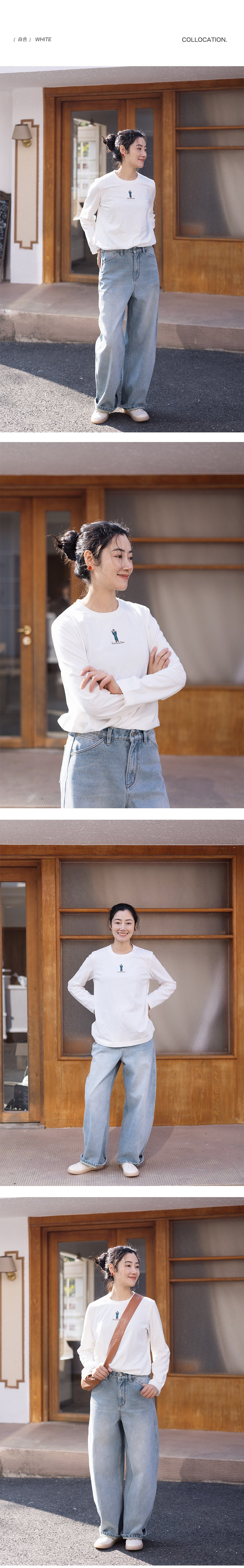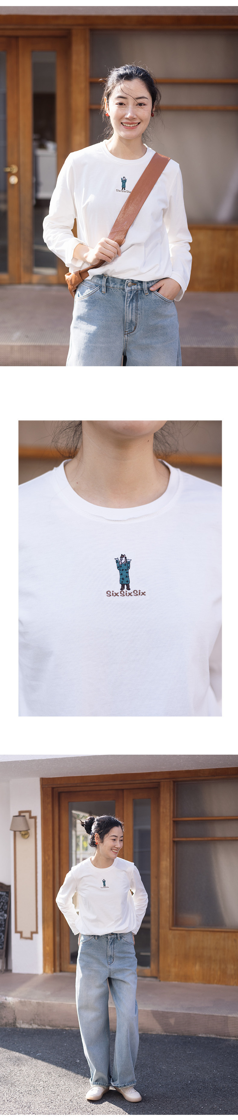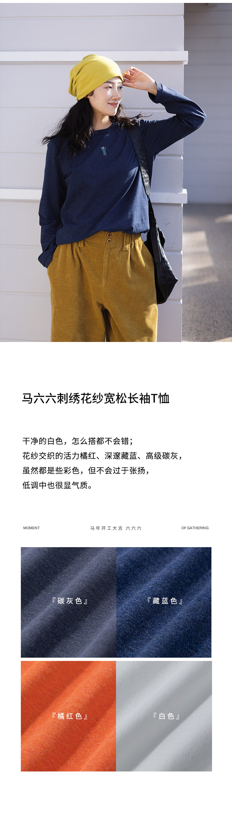 特绽放046朵/"马六六"长袖T恤·刺绣花纱T恤女春季新款松弛感上衣