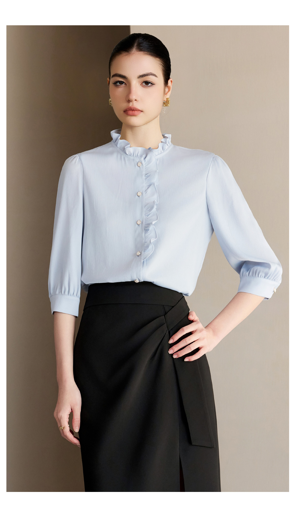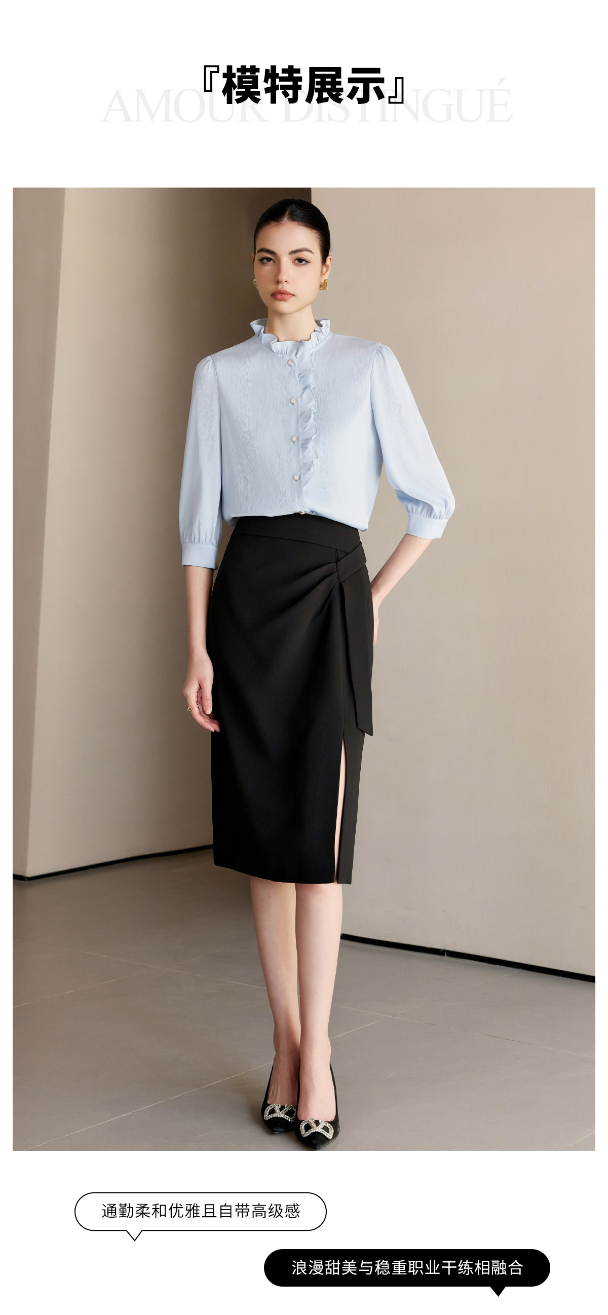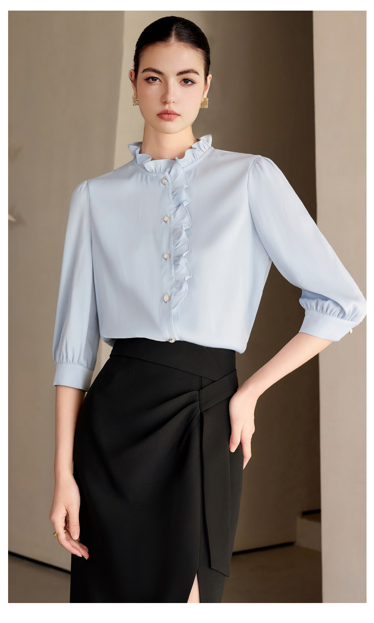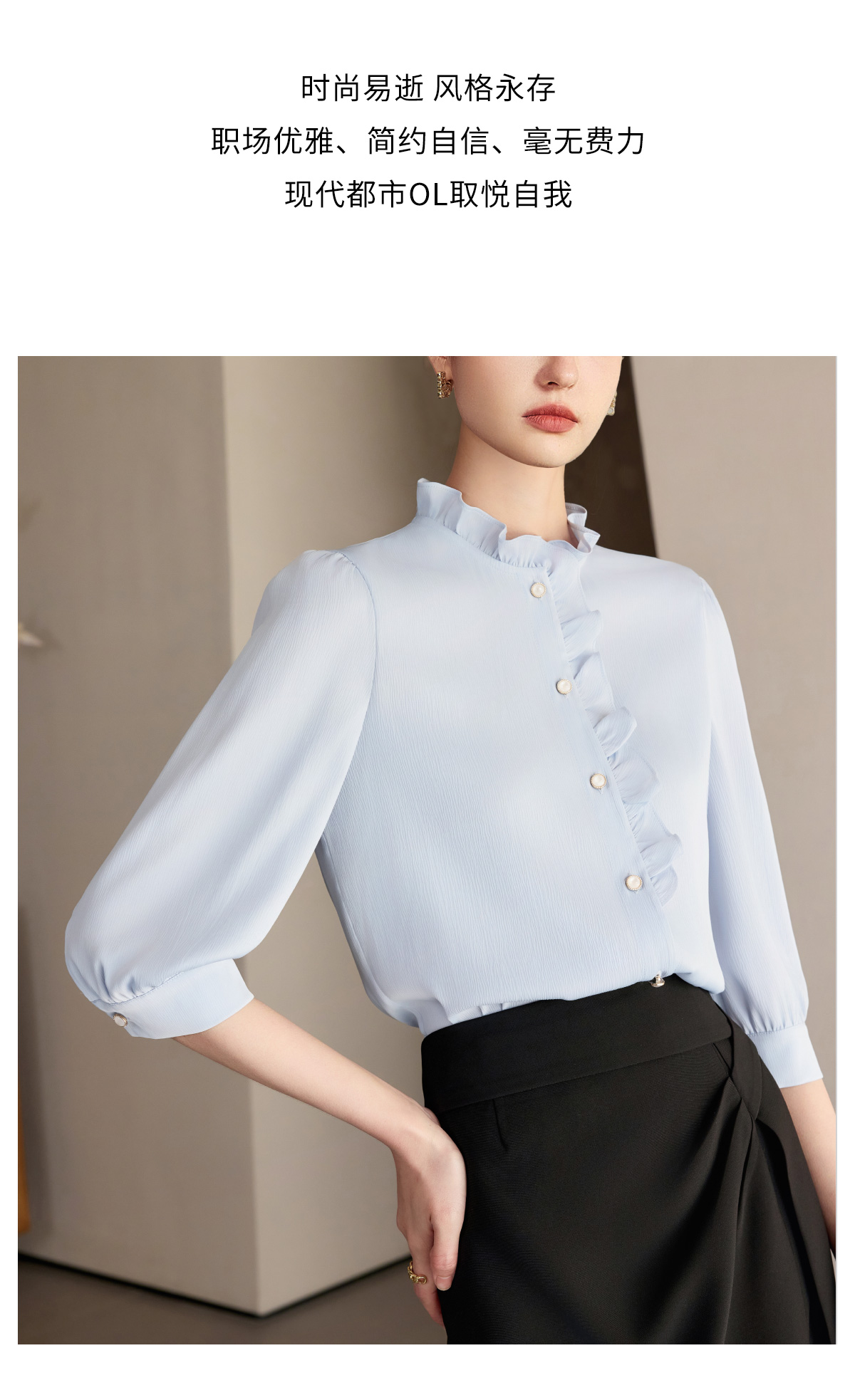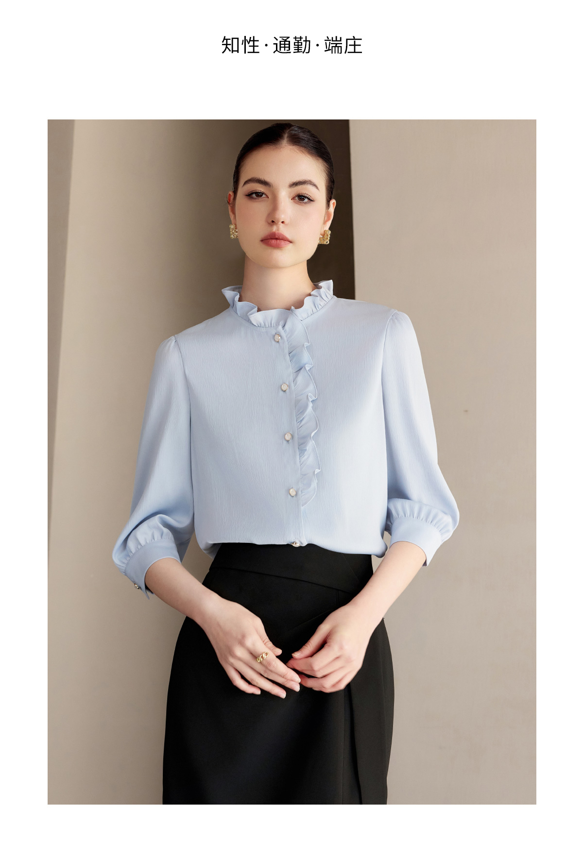 AD木耳边衬衫女2025夏季新款七分袖纯色上衣高级感减龄洋气衬衣