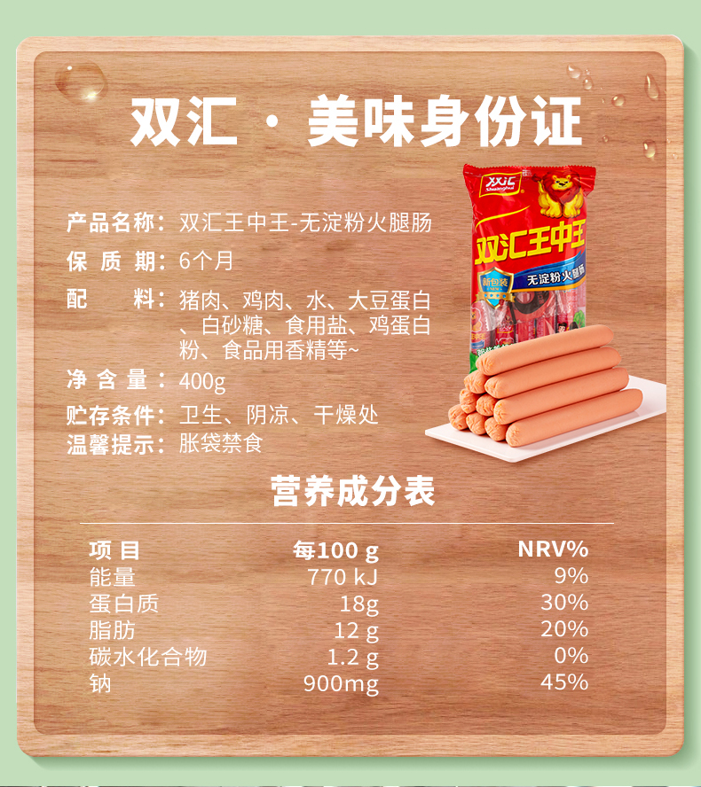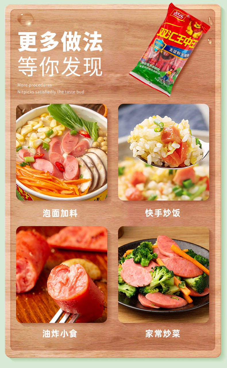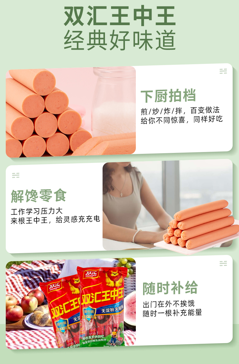 双汇王中王优级火腿肠50g*10支即食香肠速食泡面拍档500g/袋