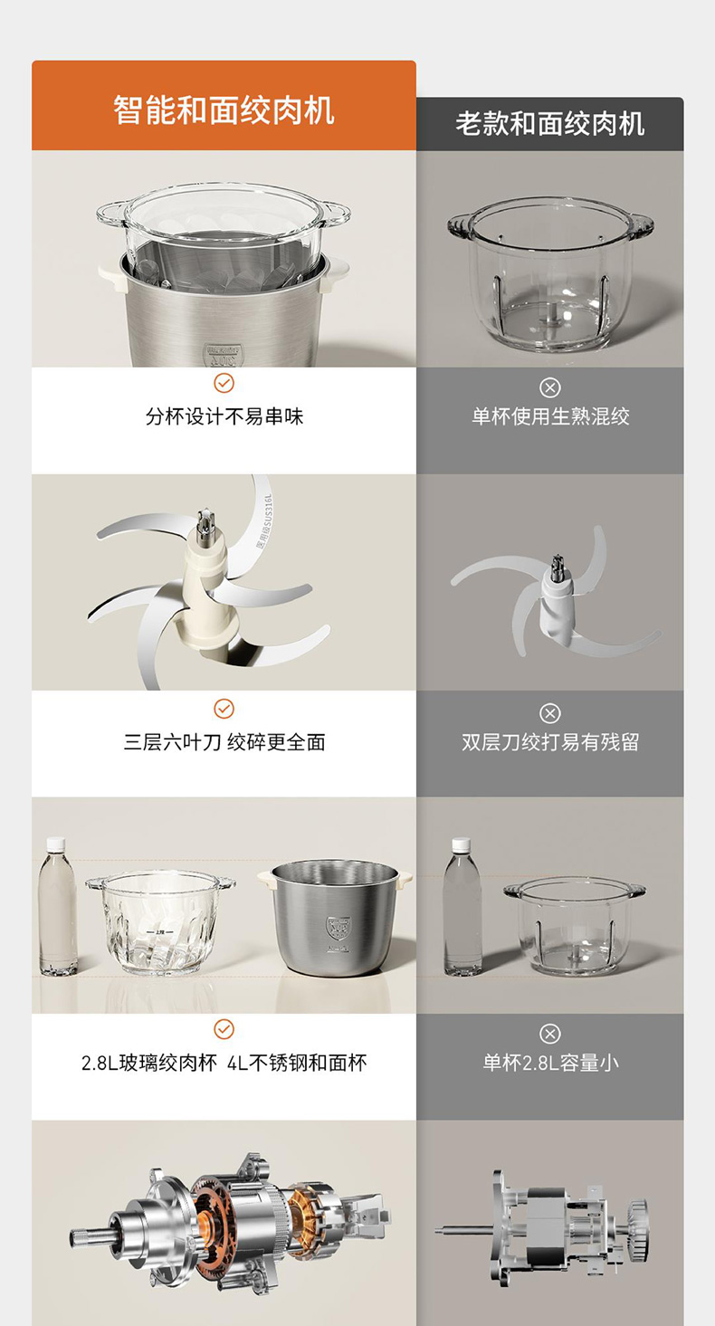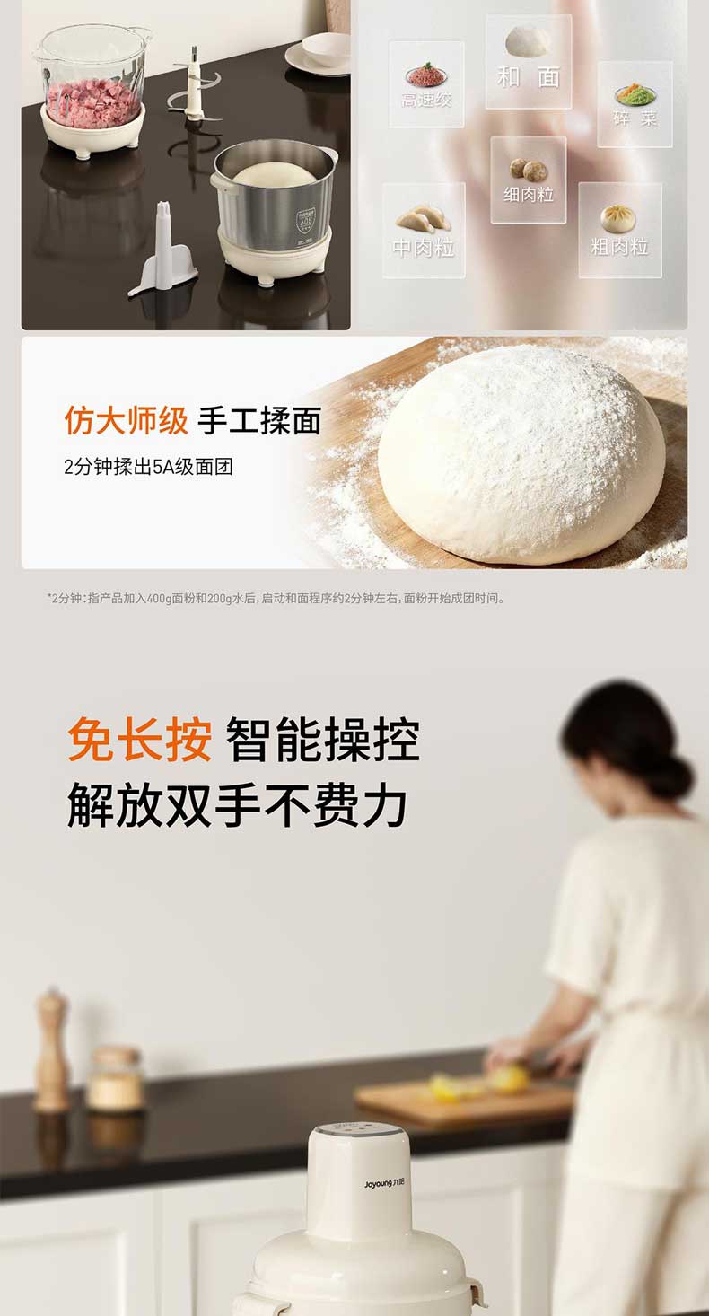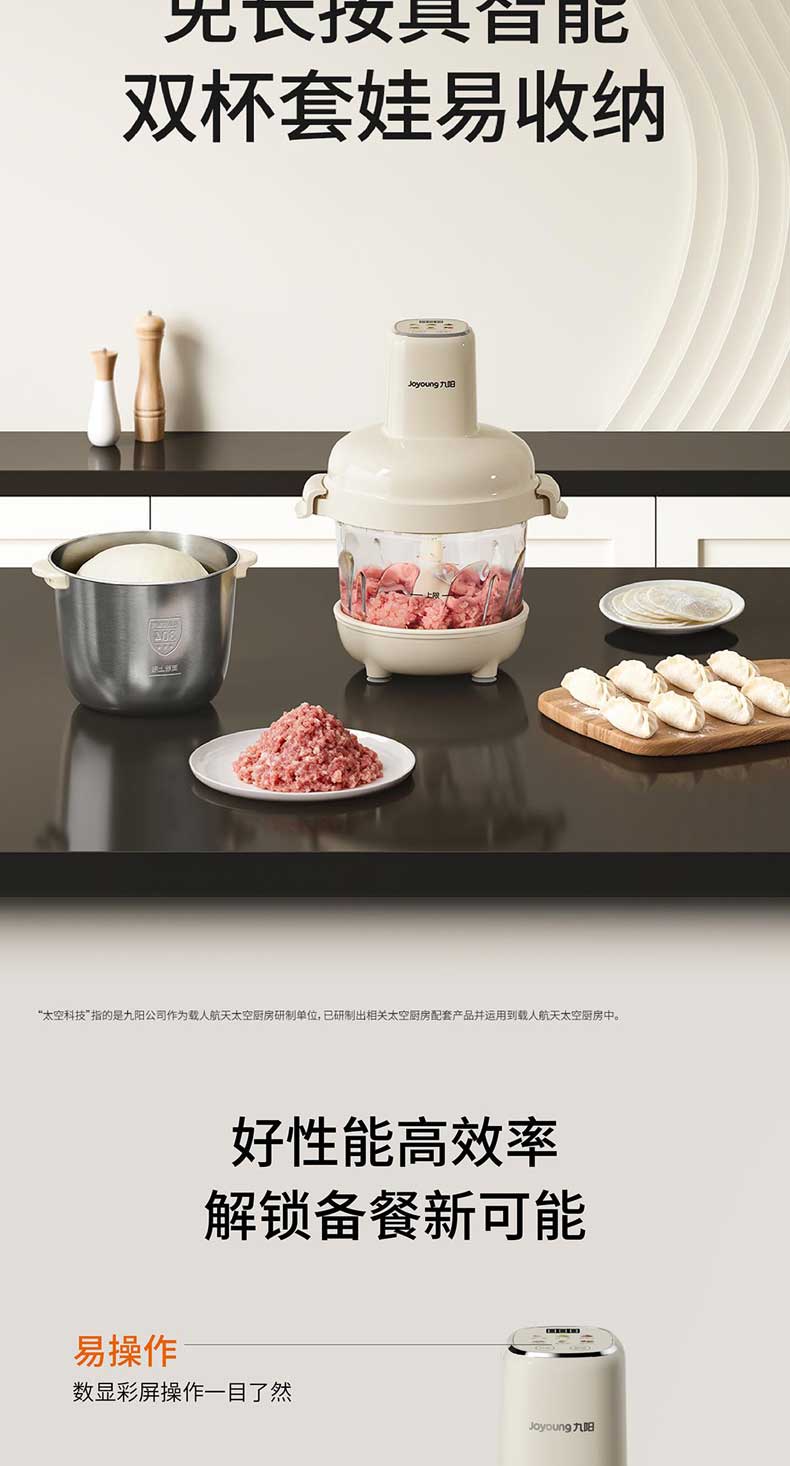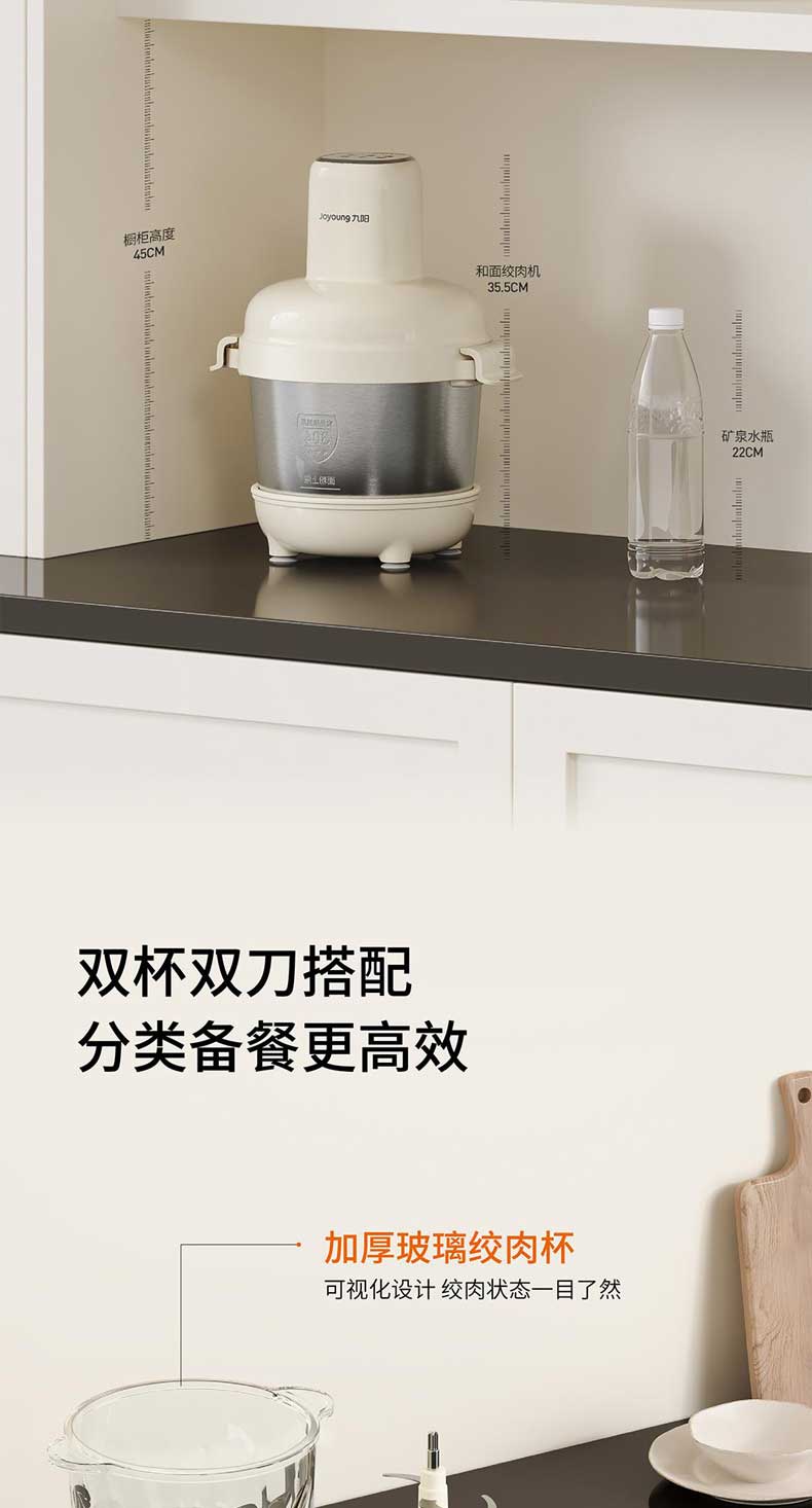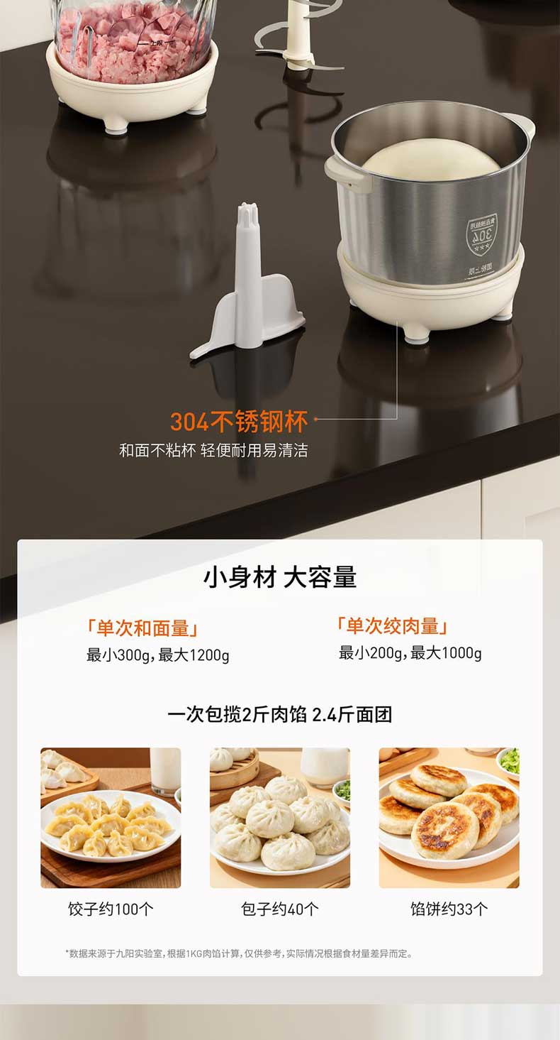 九阳和面绞肉机2.8L+4L双杯套娃绞菜绞馅机饺子肉馅机搅拌料理机