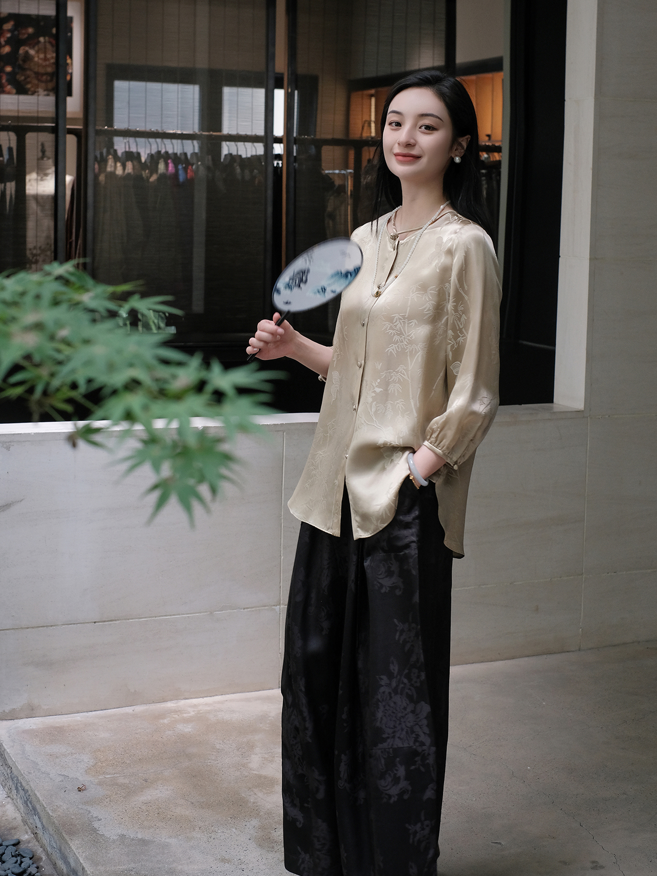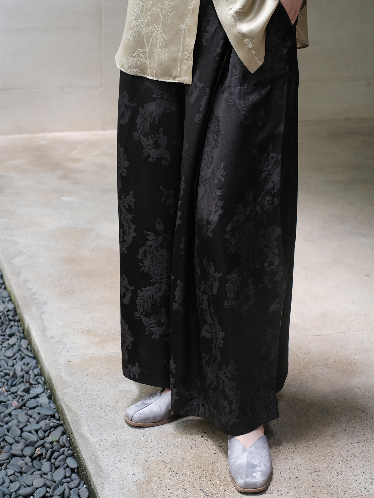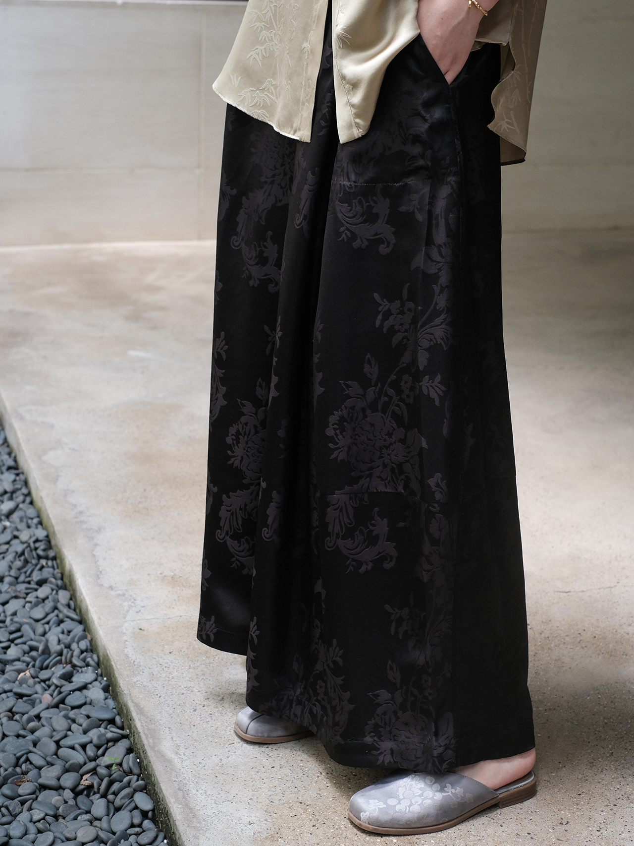 盛唐婧 |真丝香云纱凤尾花阔腿裙裤