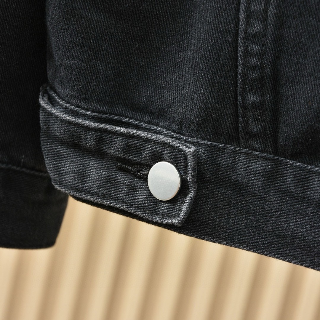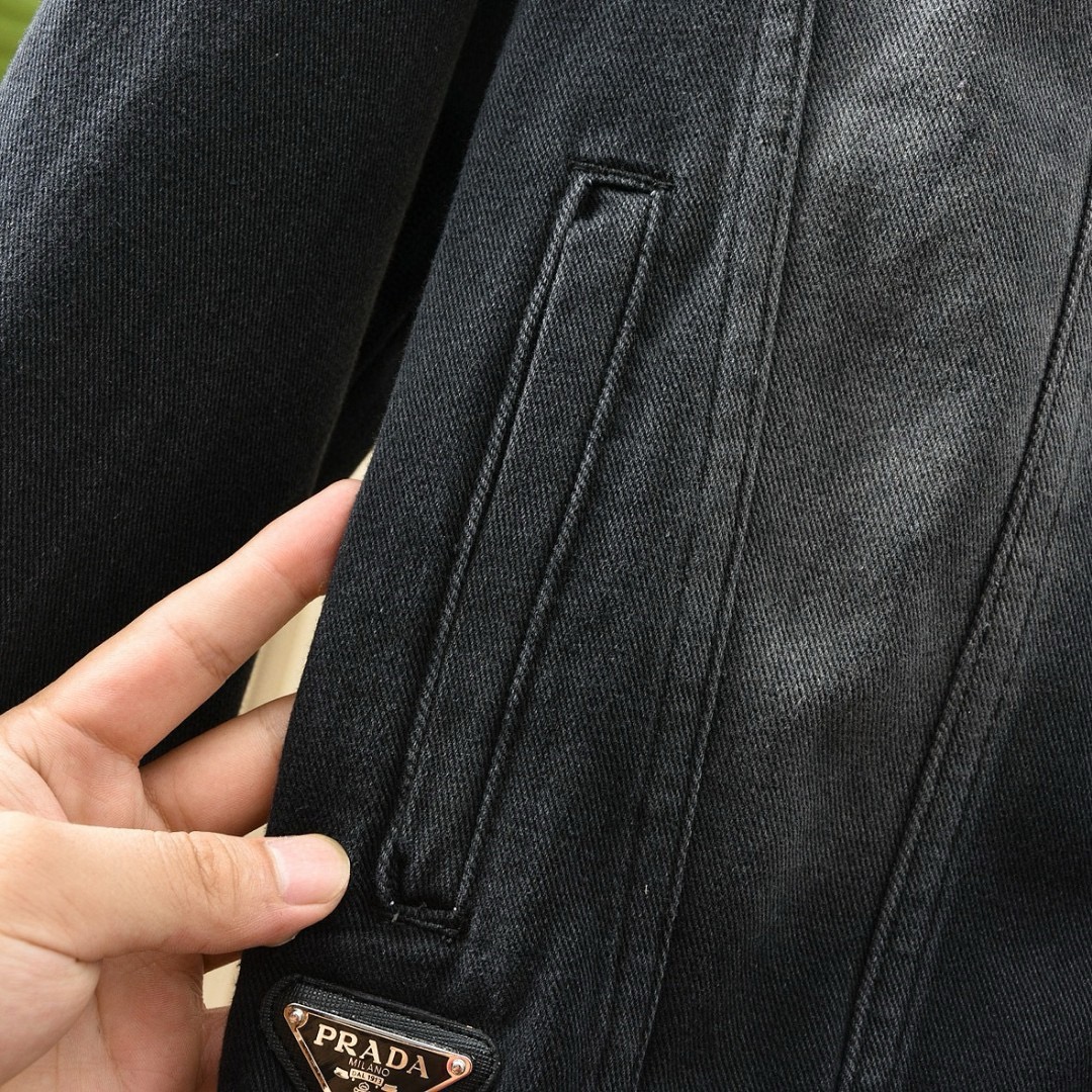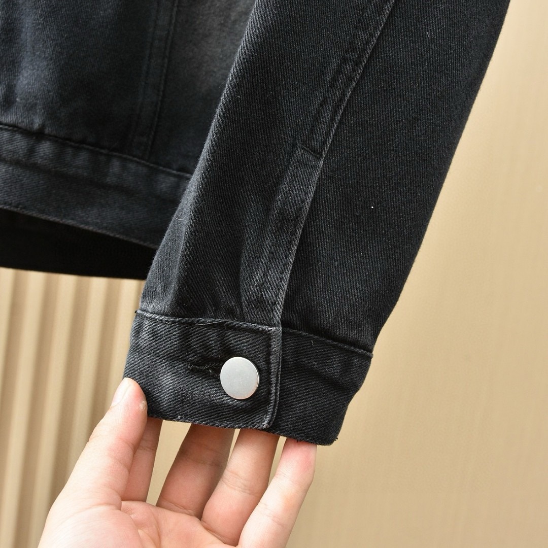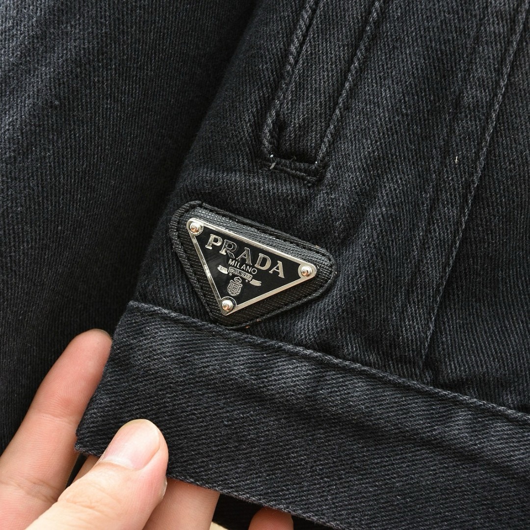 优质的牛仔全棉过水洗两次处理,面料,辅料一级-11111111好!!P家经典黑色定制三角铭牌五金,搭配定制皮标!!胸口有插袋,简约好看!!全套辅料原版顶级品质,男女都可上身凸显质感品味✔️