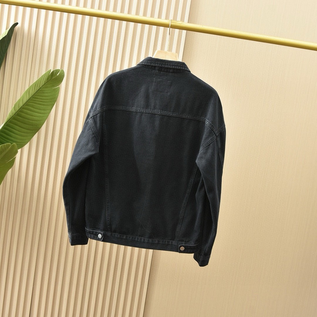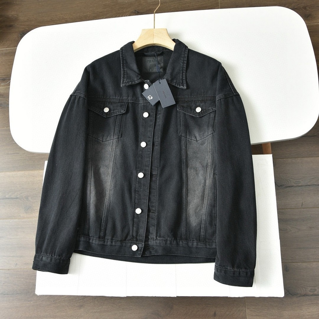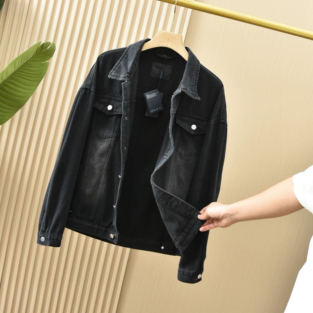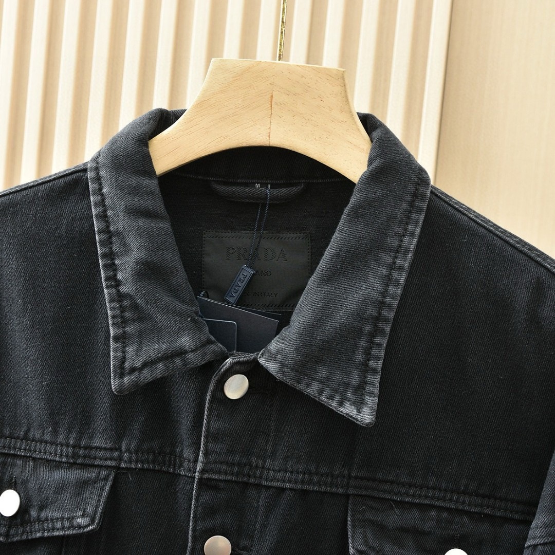 优质的牛仔全棉过水洗两次处理,面料,辅料一级-11111111好!!P家经典黑色定制三角铭牌五金,搭配定制皮标!!胸口有插袋,简约好看!!全套辅料原版顶级品质,男女都可上身凸显质感品味✔️