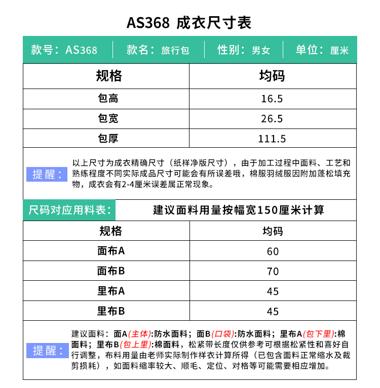 裁缝学苑AS368户外单肩摄影包斜挎包纸样背包防水旅行邮差包样板