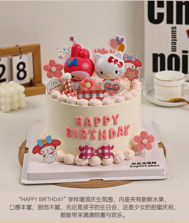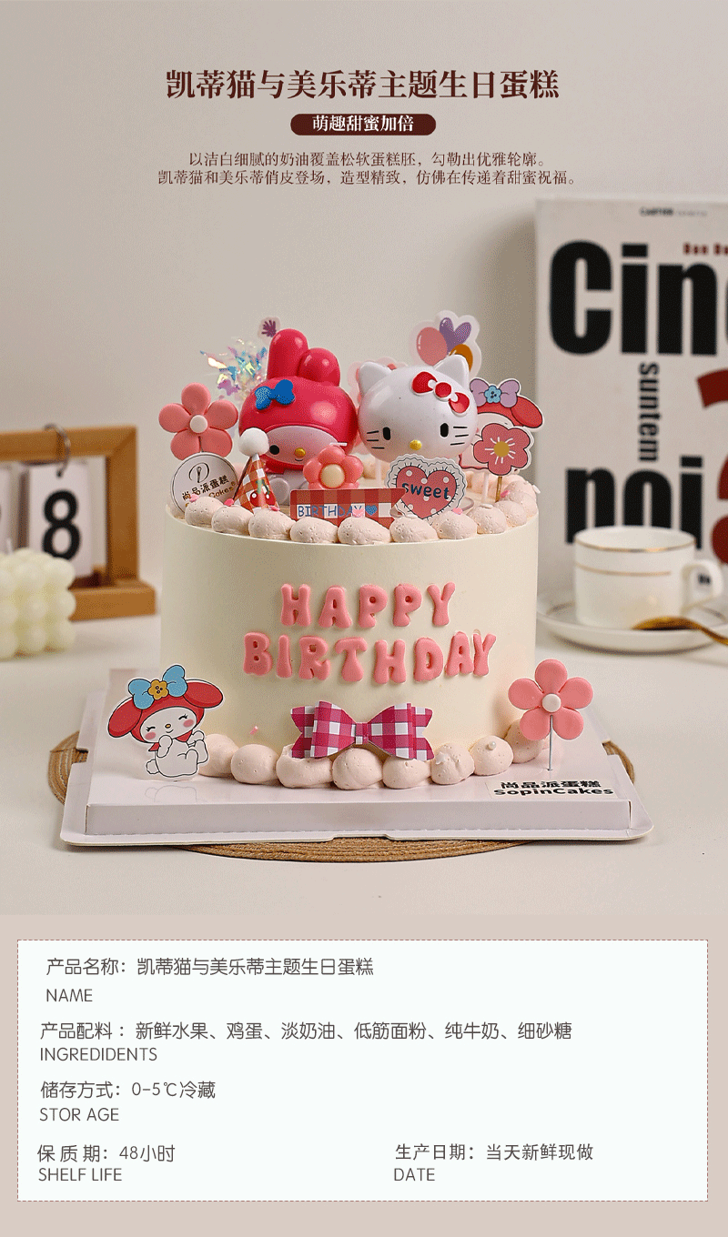 凯蒂猫与美乐蒂主题生日蛋糕,萌趣甜蜜加倍~【惠州】