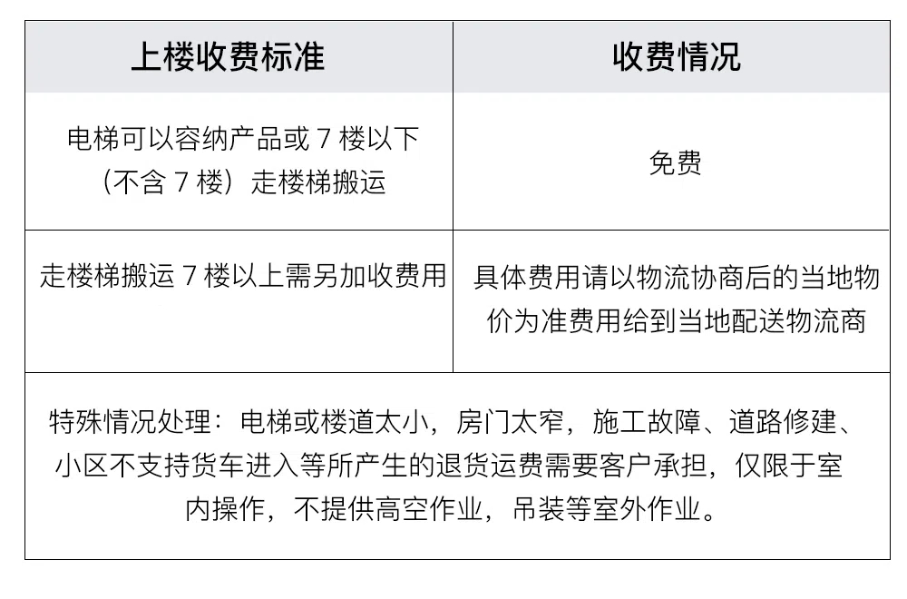 默认发跨越速运,发货地在广东省东莞市桥头镇,电梯房默认可送货入户。如果因买方原因(电梯尺寸过小、复式二楼)等情况需要人工搬运的,产生的费用由买家承担。
