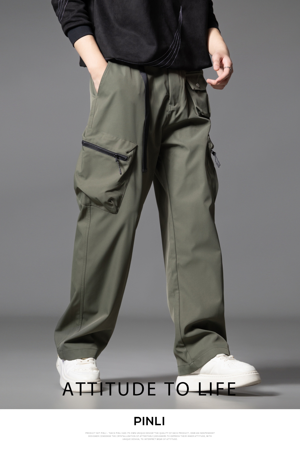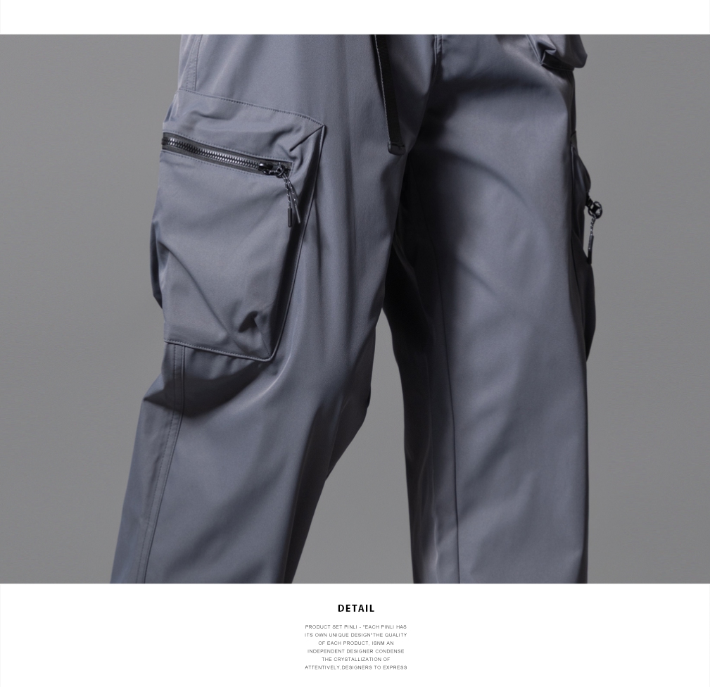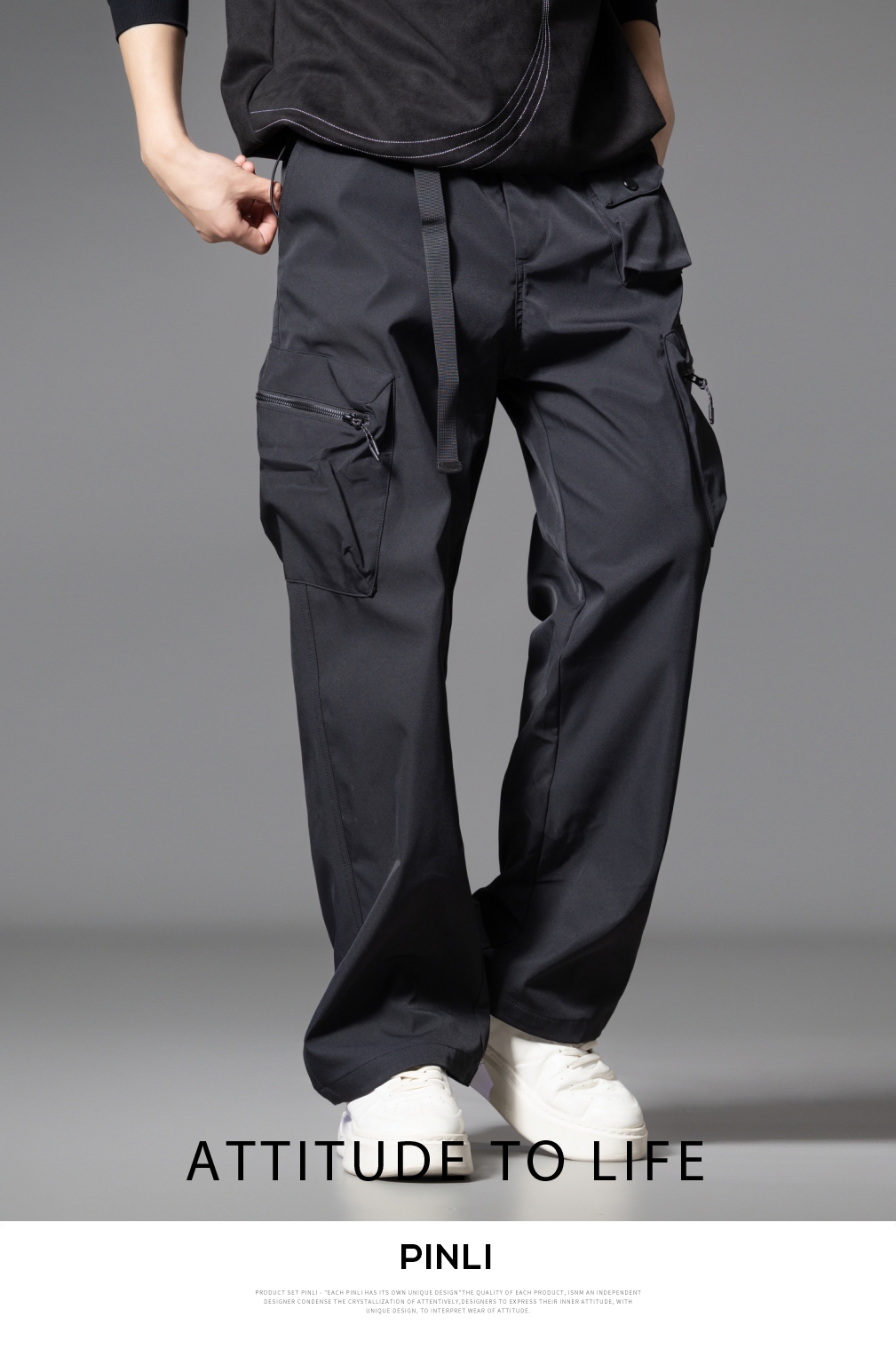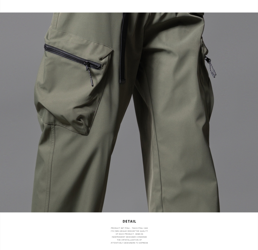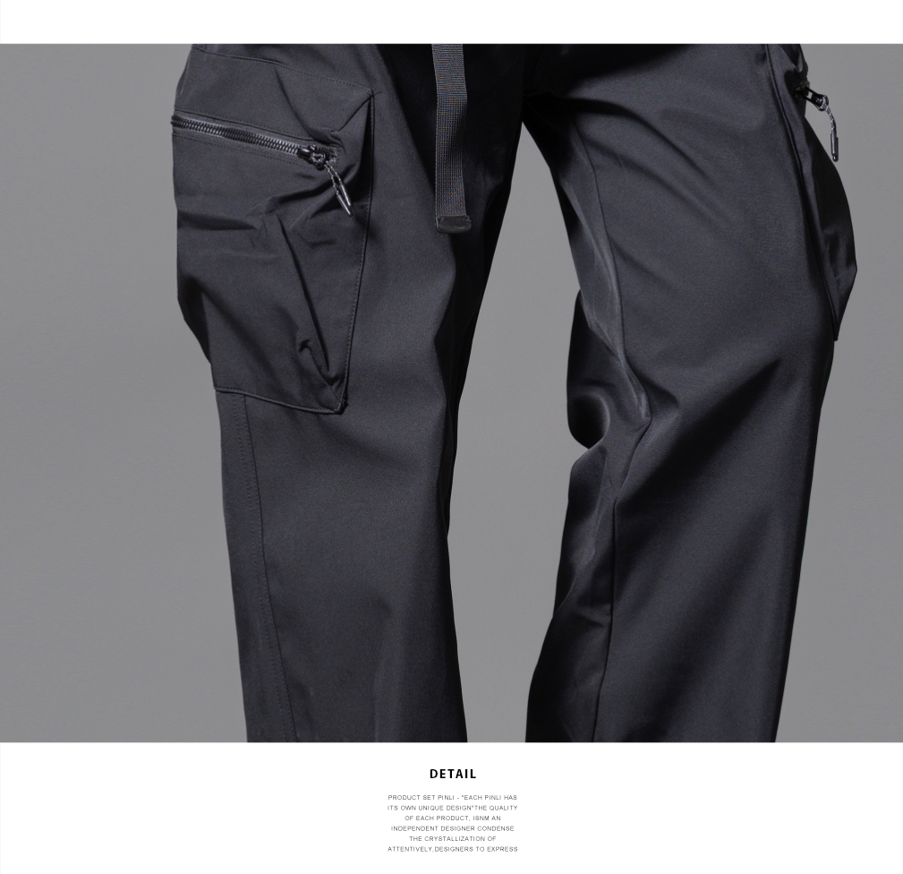 PINLI品立2025秋季新款男士系皮带宽松直筒工装裤多口袋休闲长裤GD253117026