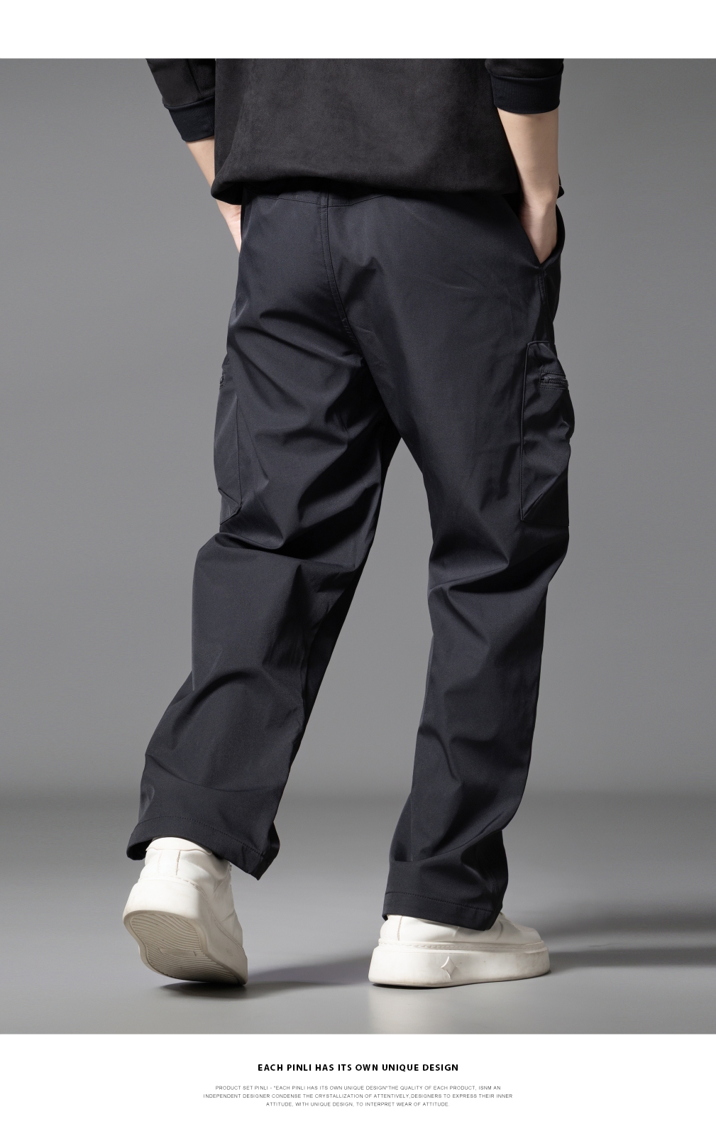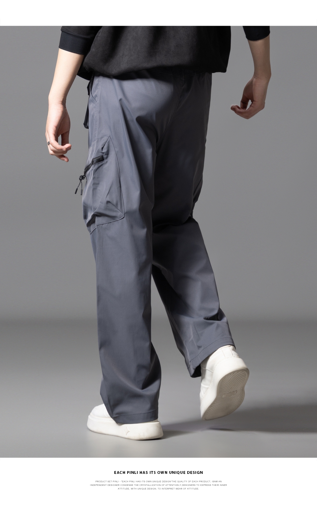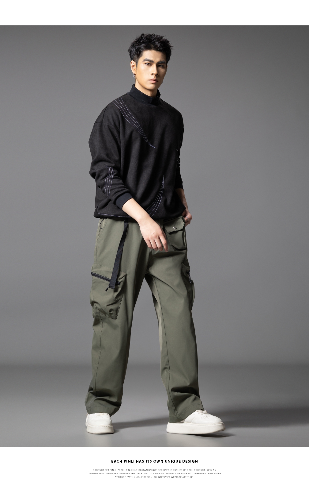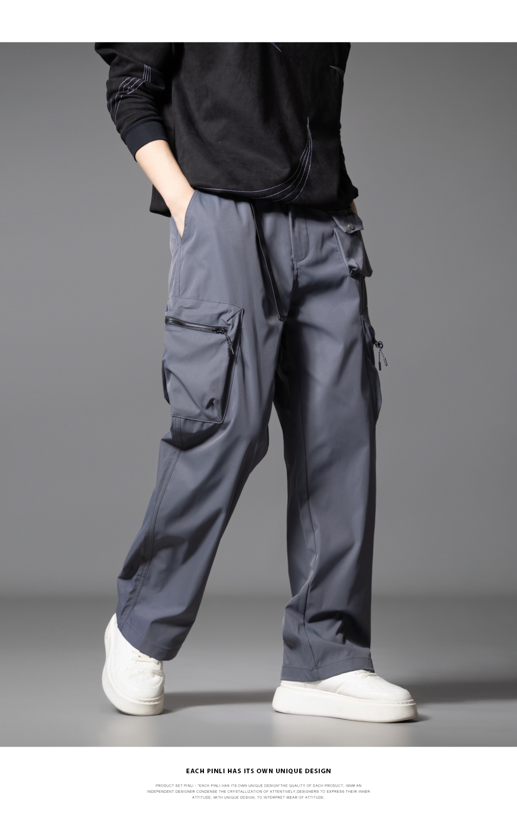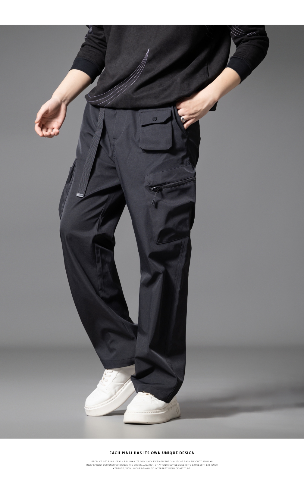 PINLI品立2025秋季新款男士系皮带宽松直筒工装裤多口袋休闲长裤GD253117026