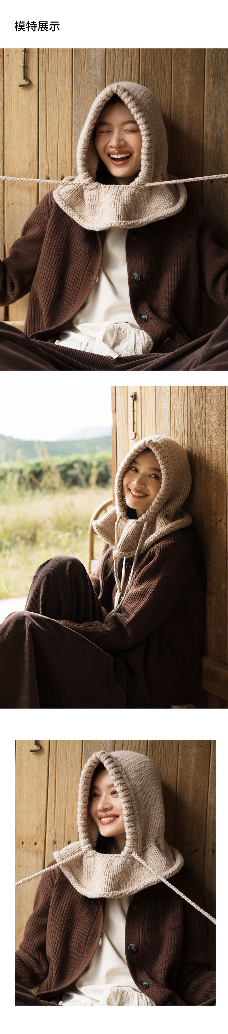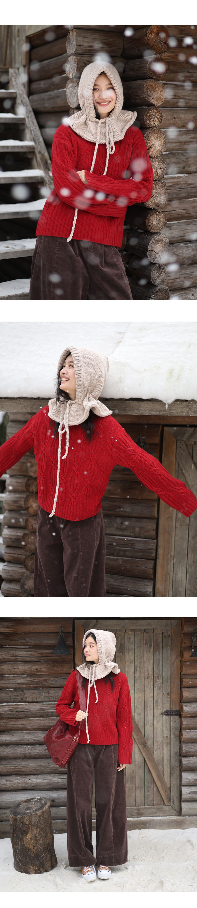 绽放/KSX016朵纯羊毛手工粗针针织抽绳软糯立体巴拉克拉法帽秋冬