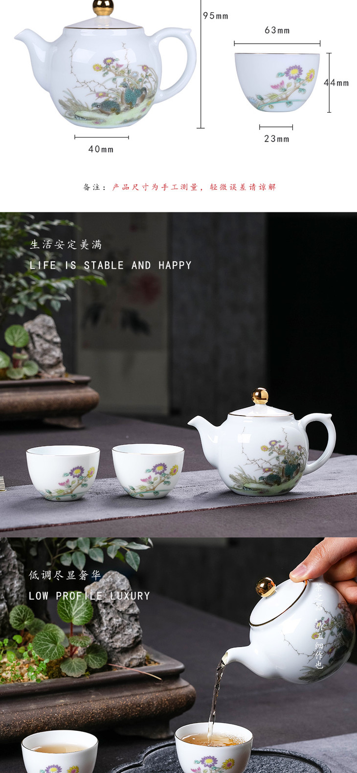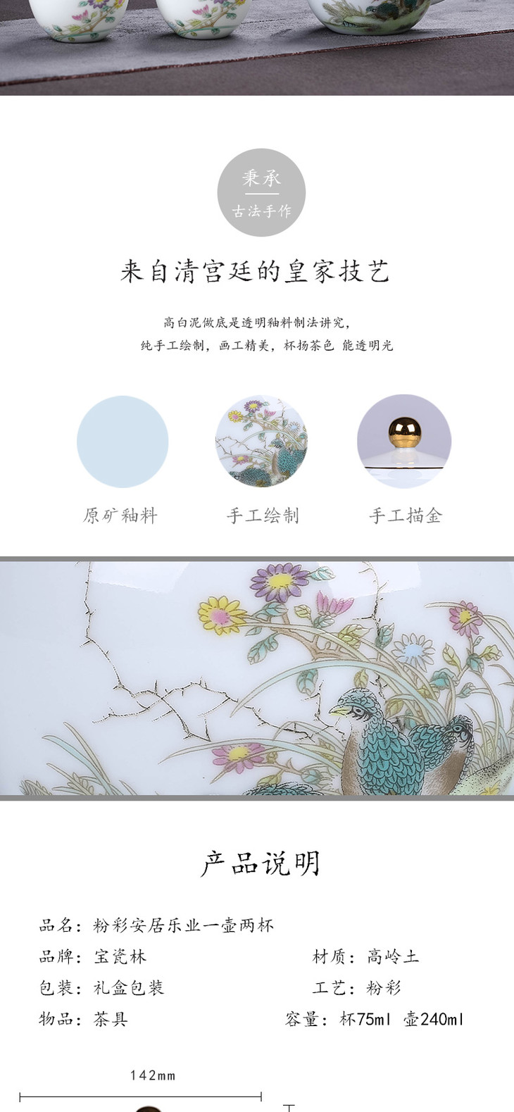 宝瓷林粉彩安居乐业一壶两杯