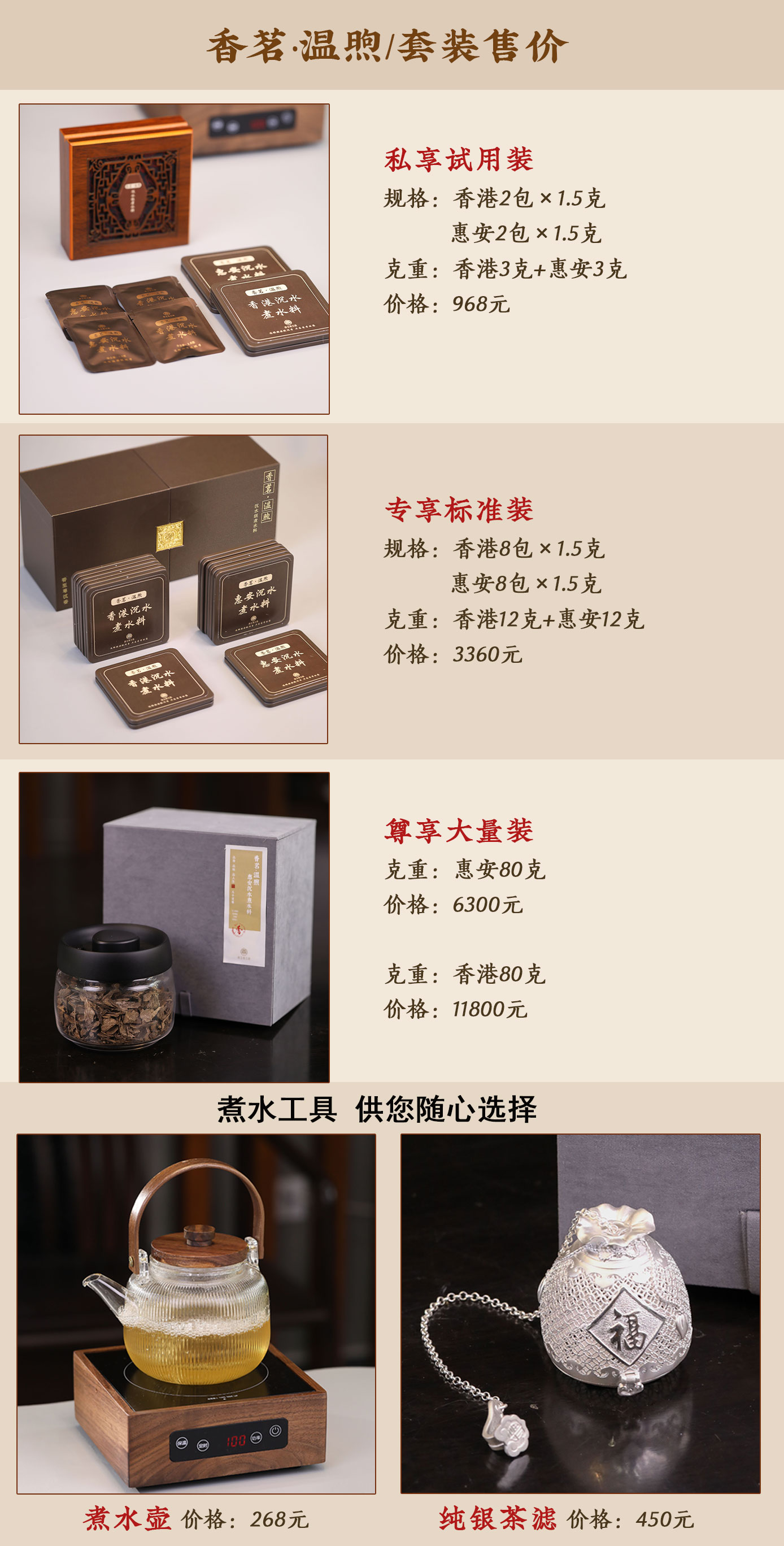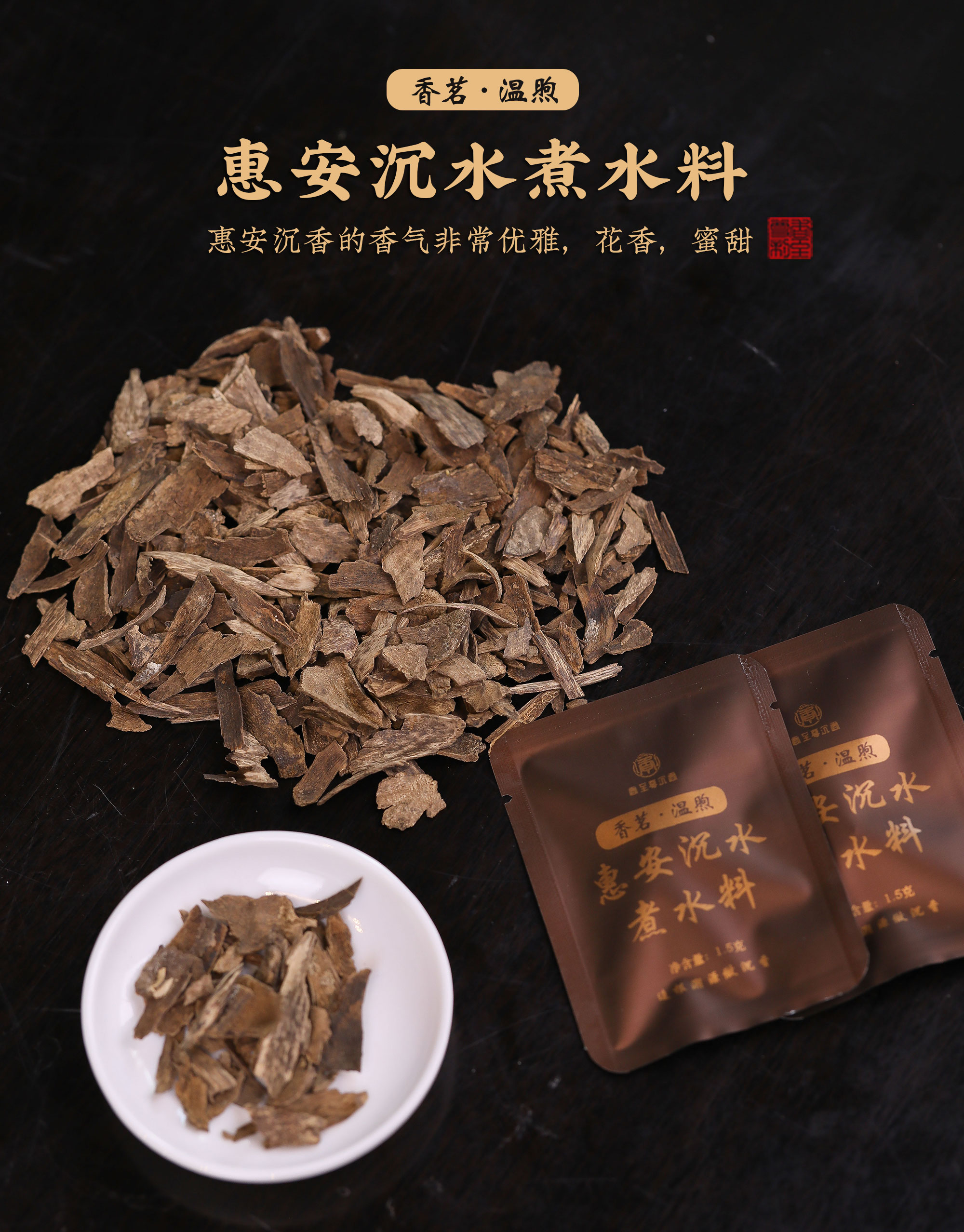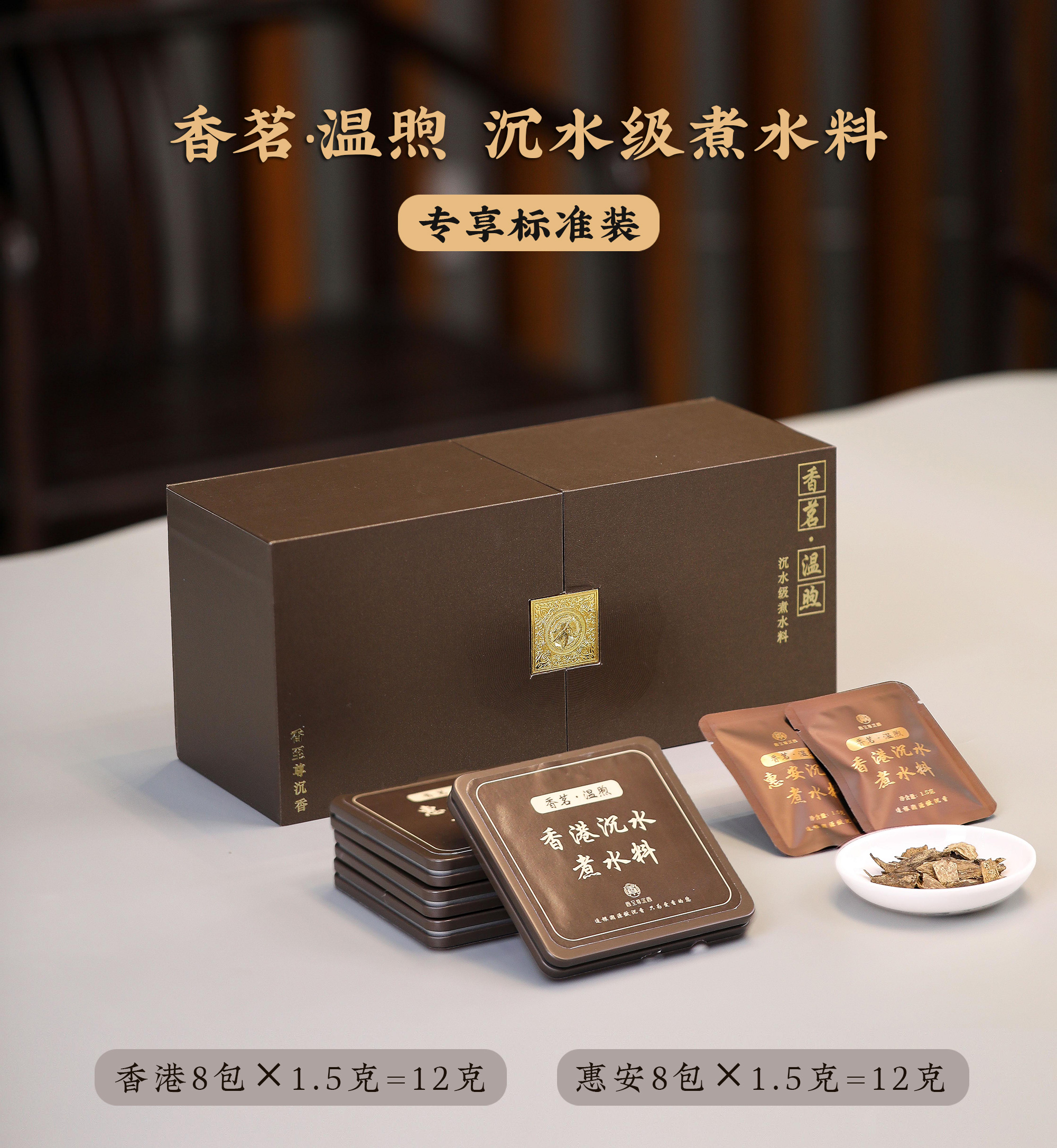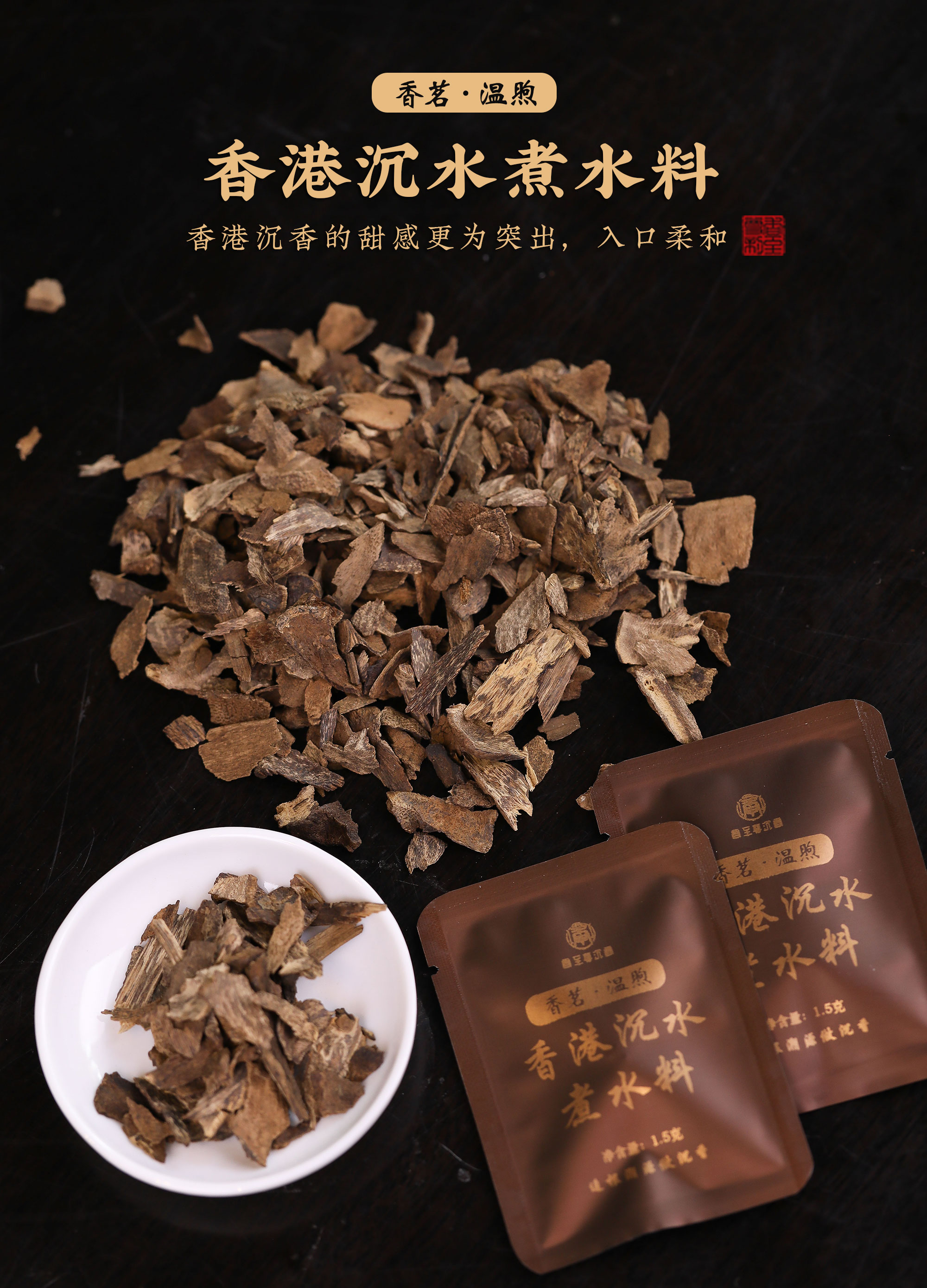 “香茗·温煦”的核心元素,就是两款沉香的煮水料:香港沉香煮水料以及惠安沉香煮水料。